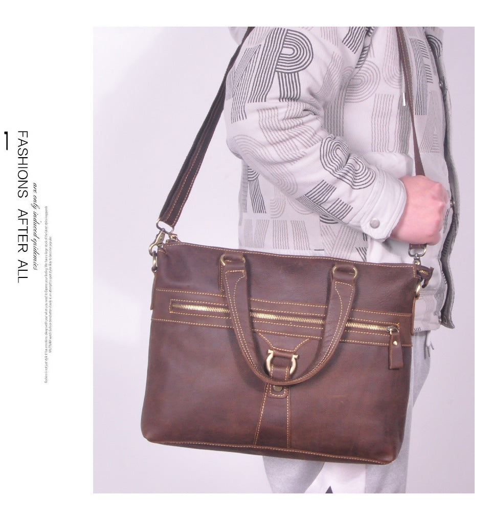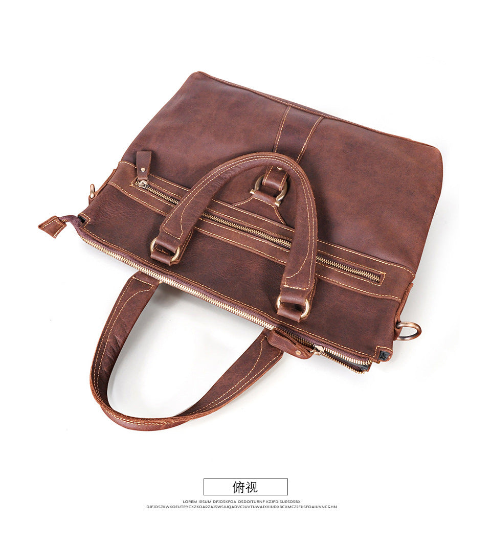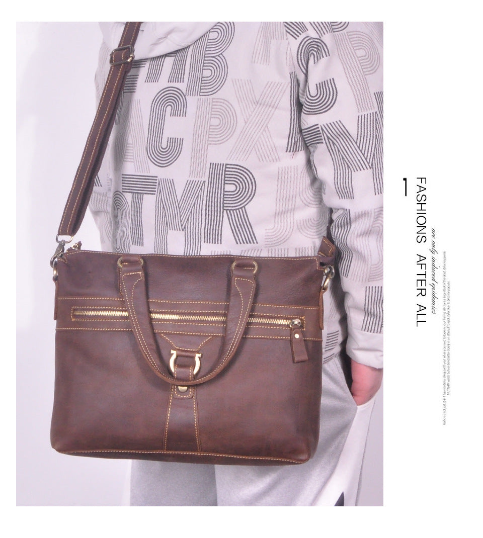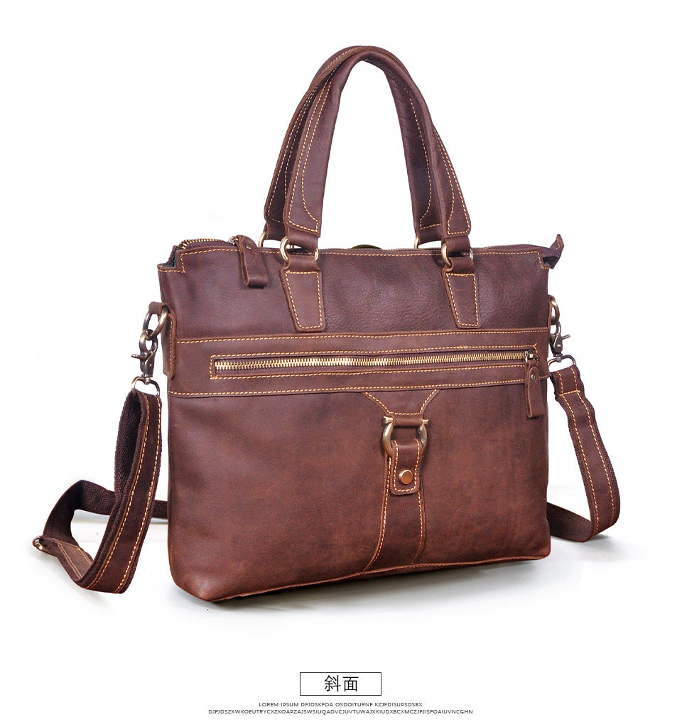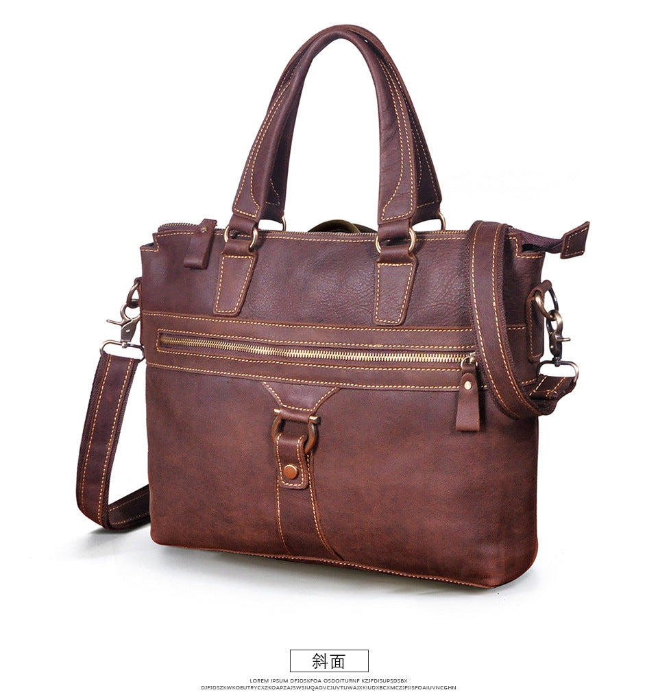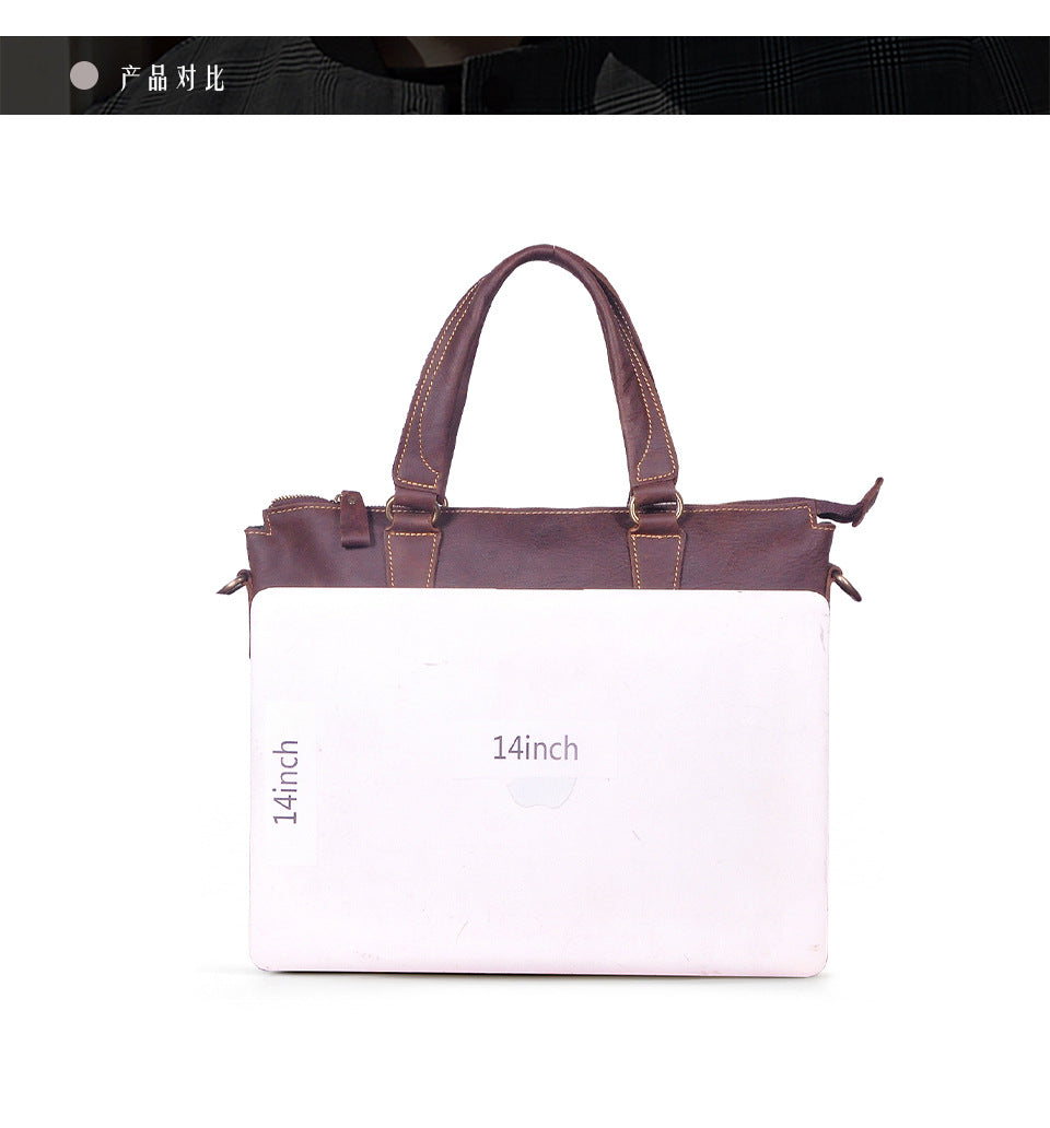 メンズブリーフケース斜めがけバッグ牛革本革製レトロ男性用ショルダーバッグハンドバッグ