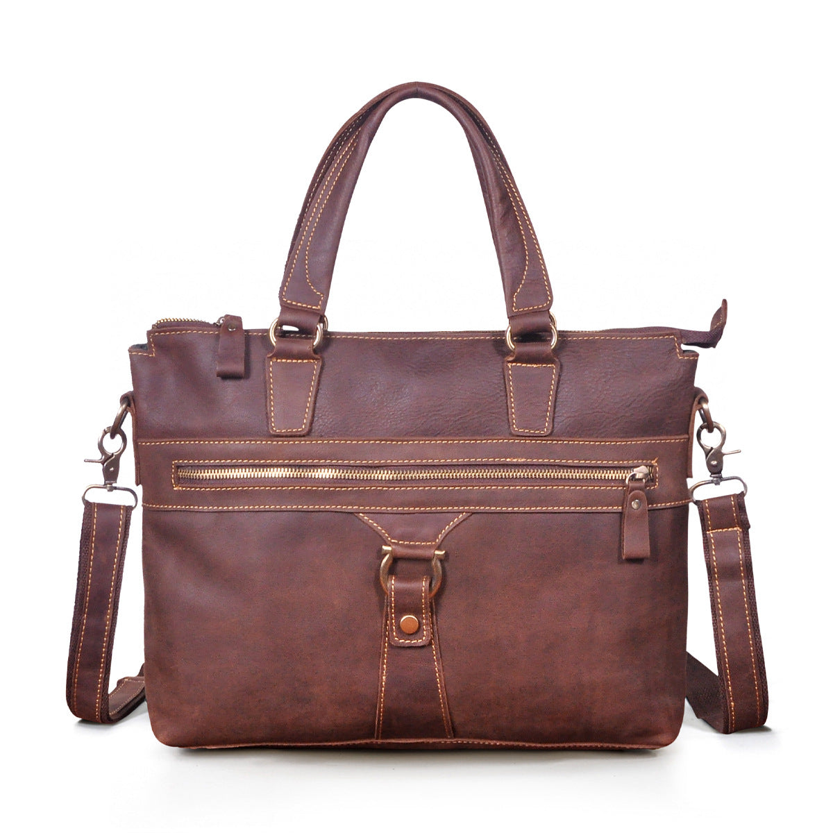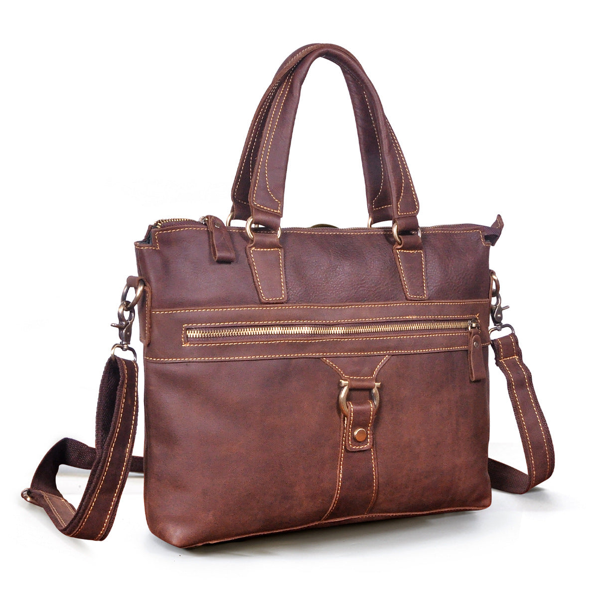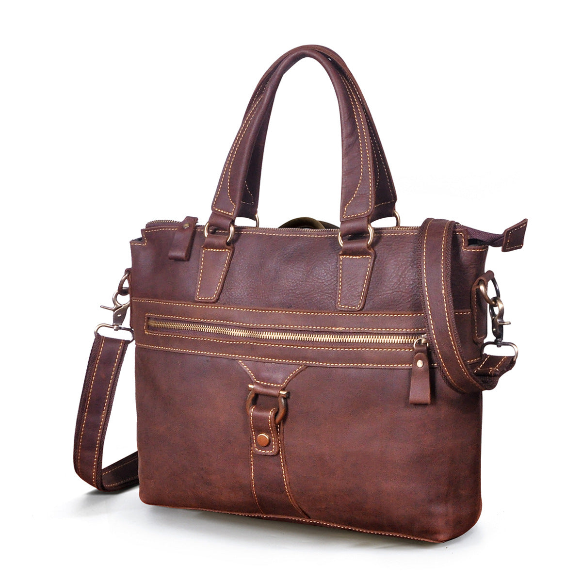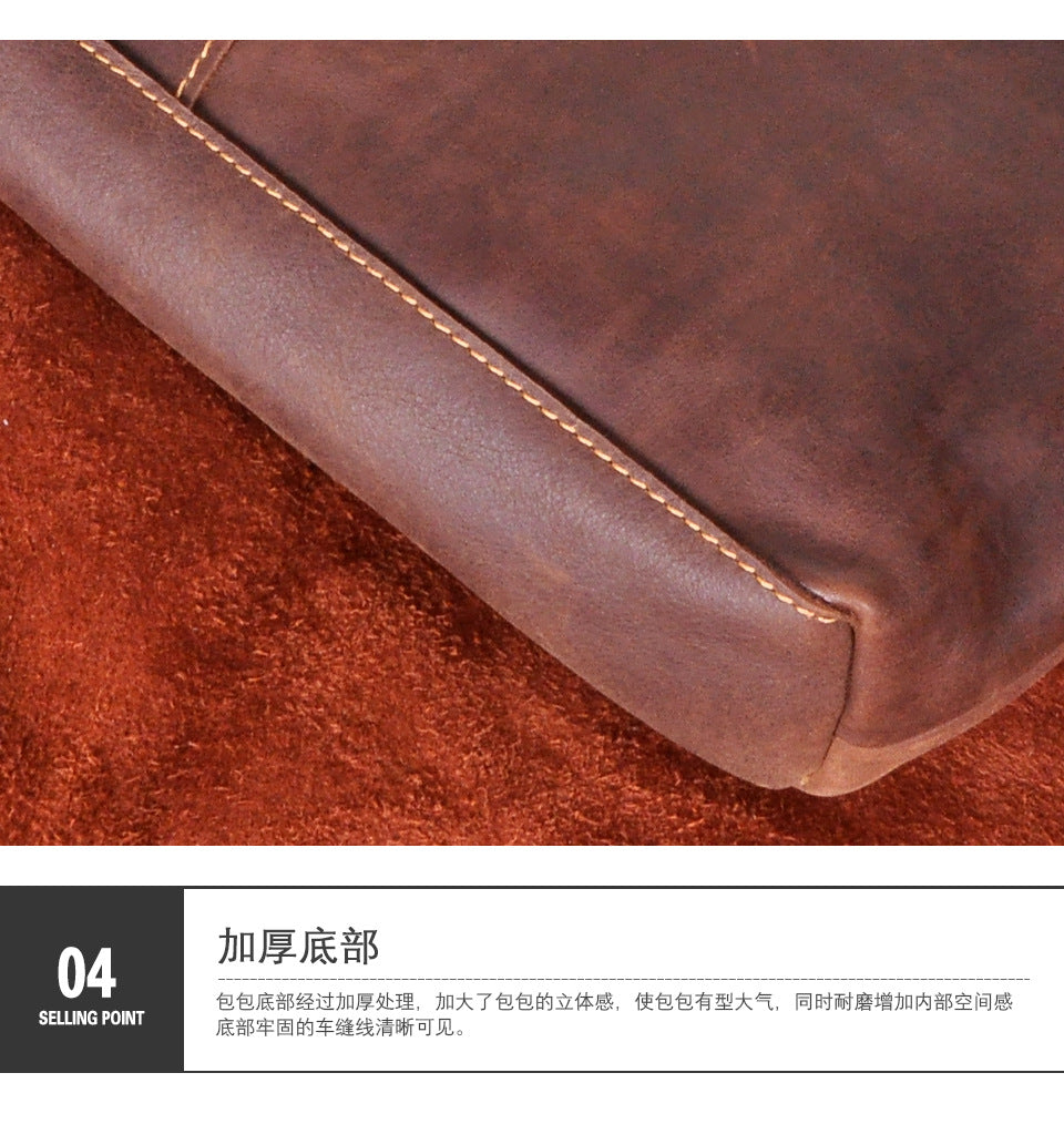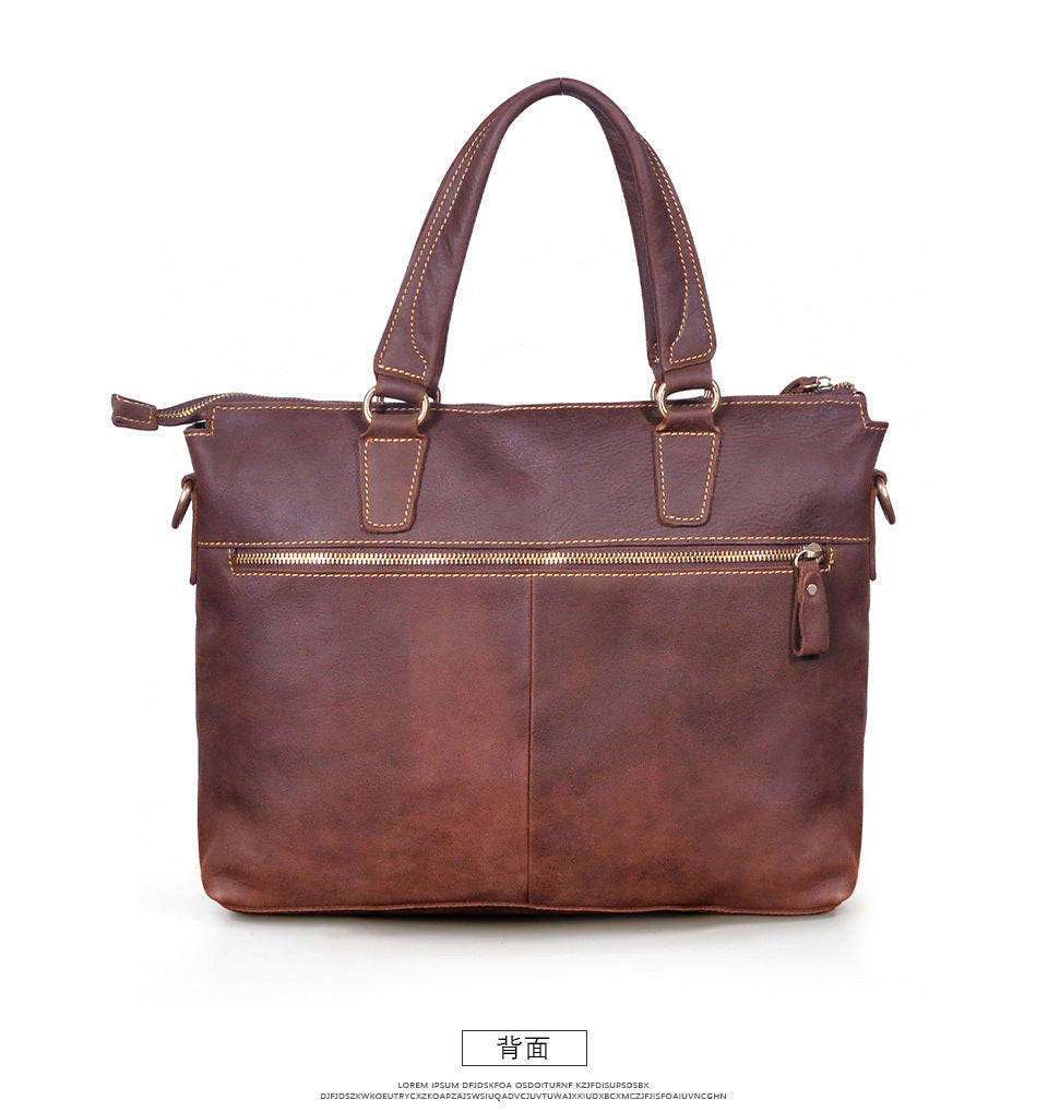 メンズブリーフケース斜めがけバッグ牛革本革製レトロ男性用ショルダーバッグハンドバッグ