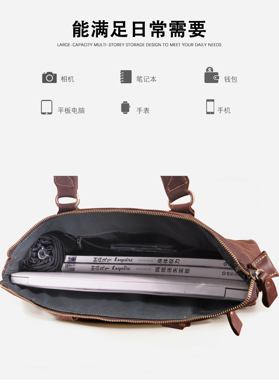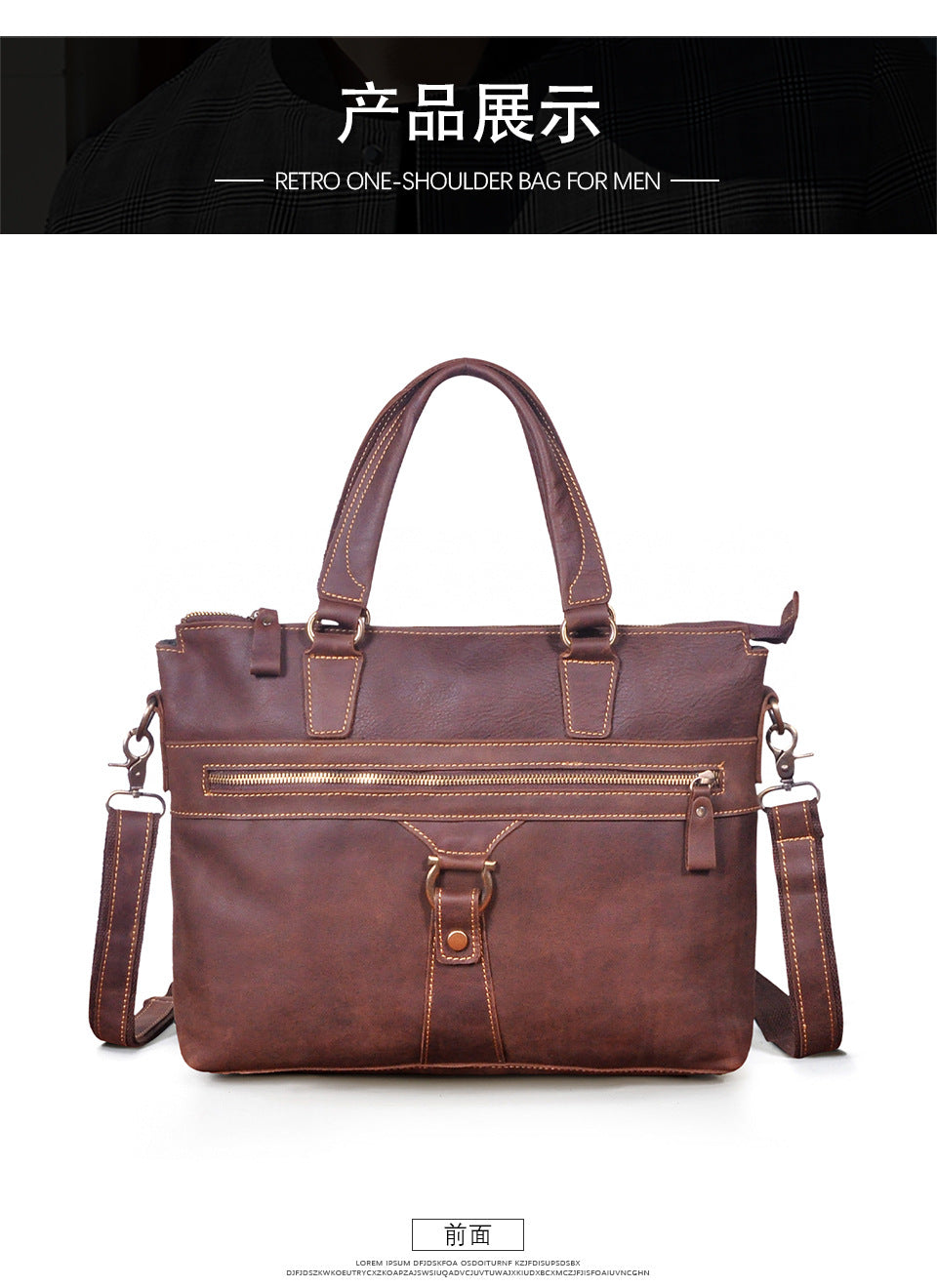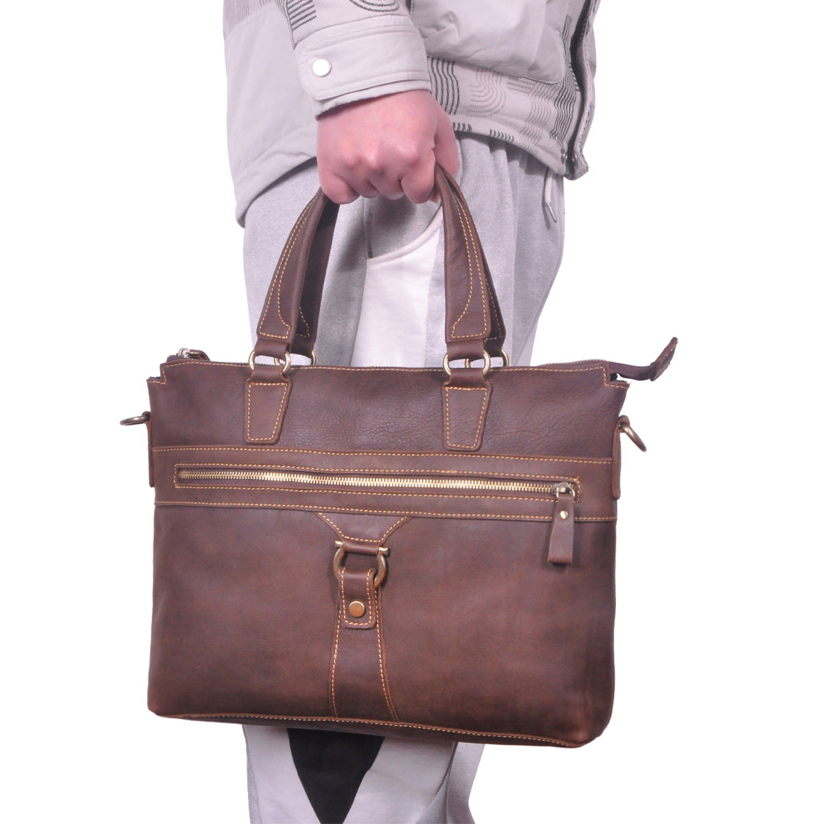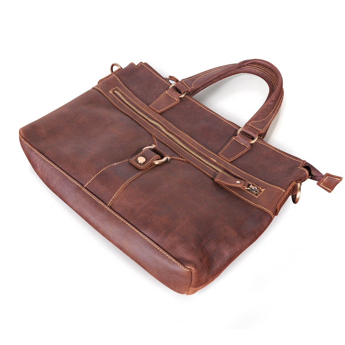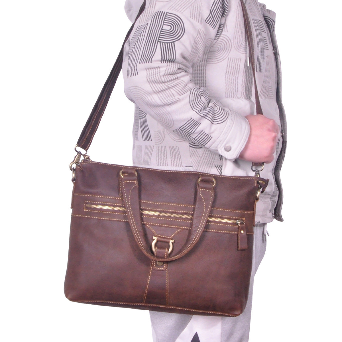 メンズブリーフケース斜めがけバッグ牛革本革製レトロ男性用ショルダーバッグハンドバッグ