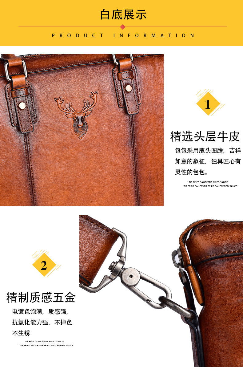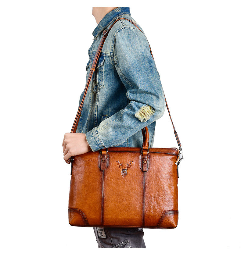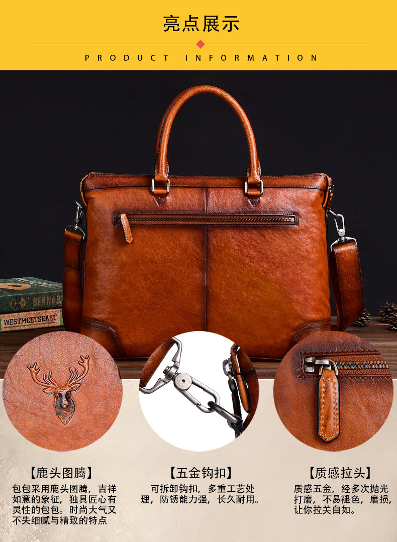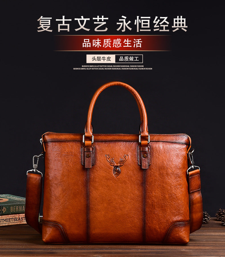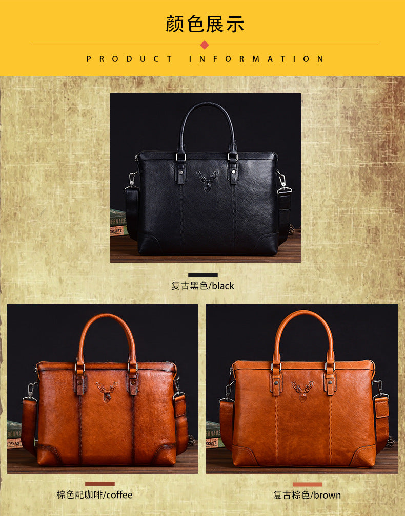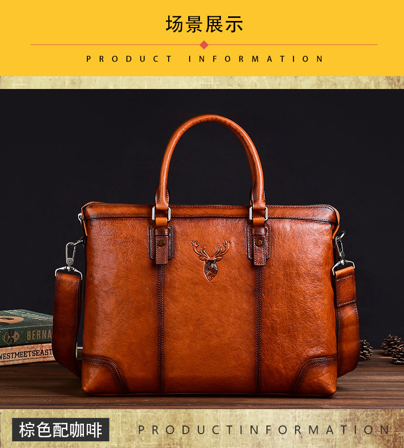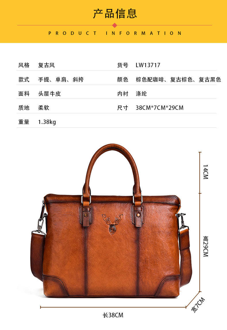 メンズブリーフケース牛革本革製レトロカジュアルビジネスバッグ男性用ハンドバッグ