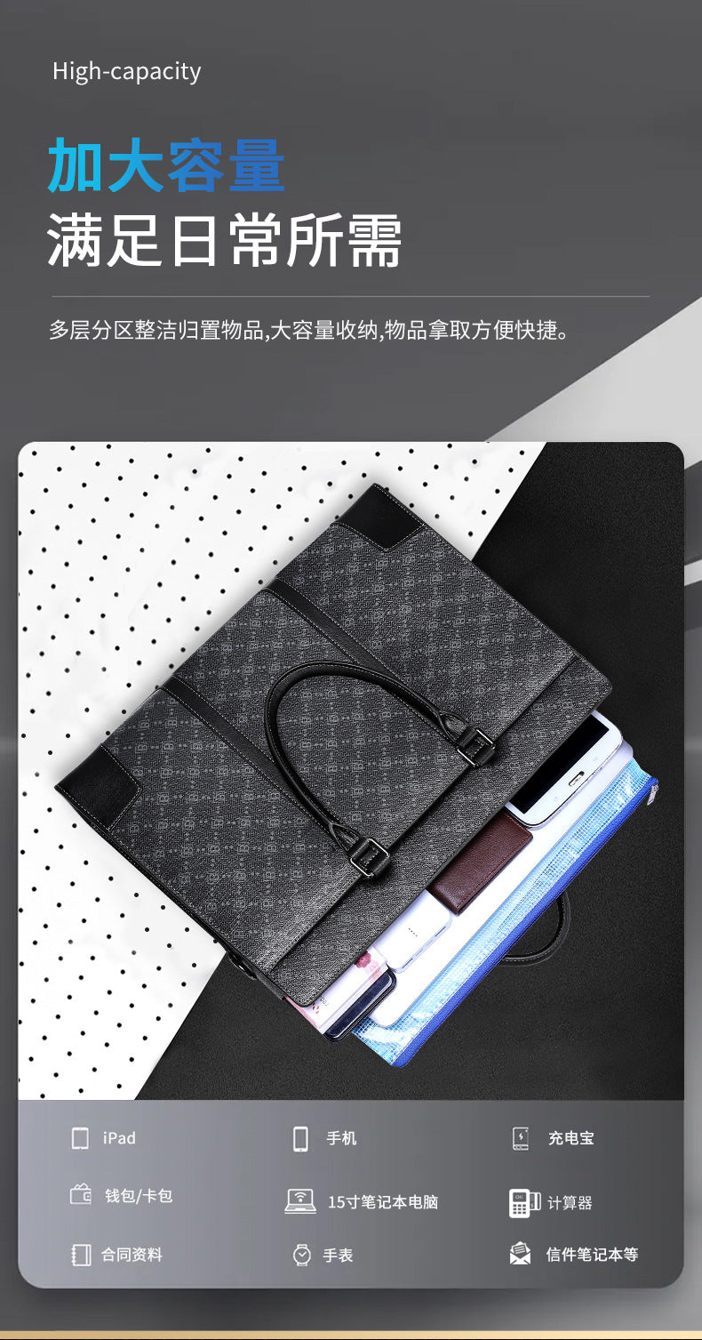 メンズブリーフケース シンプルファッション 大容量 ハンドバッグ ビジネスカジュアル 手提げかばん 斜めがけショルダーバッグ