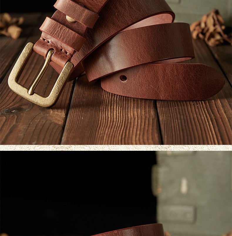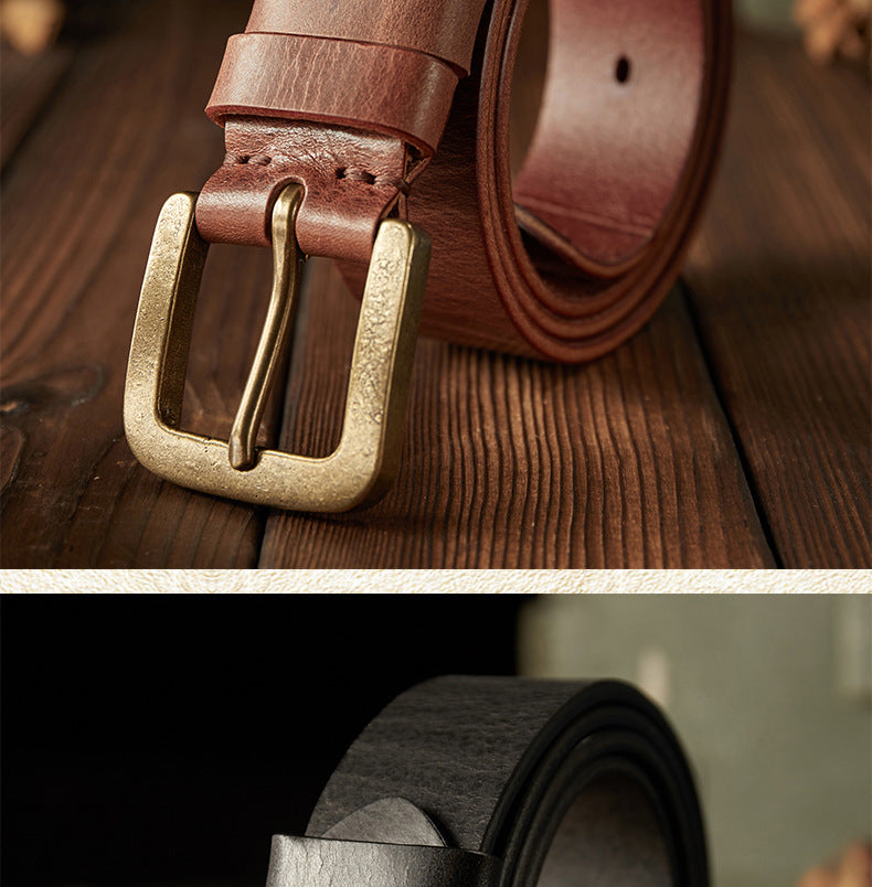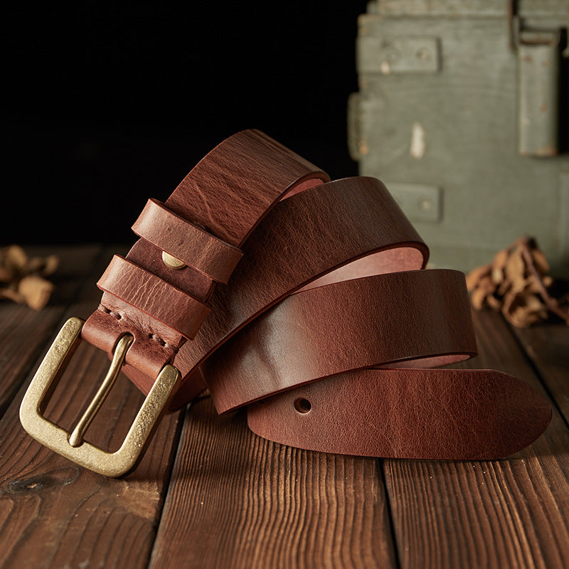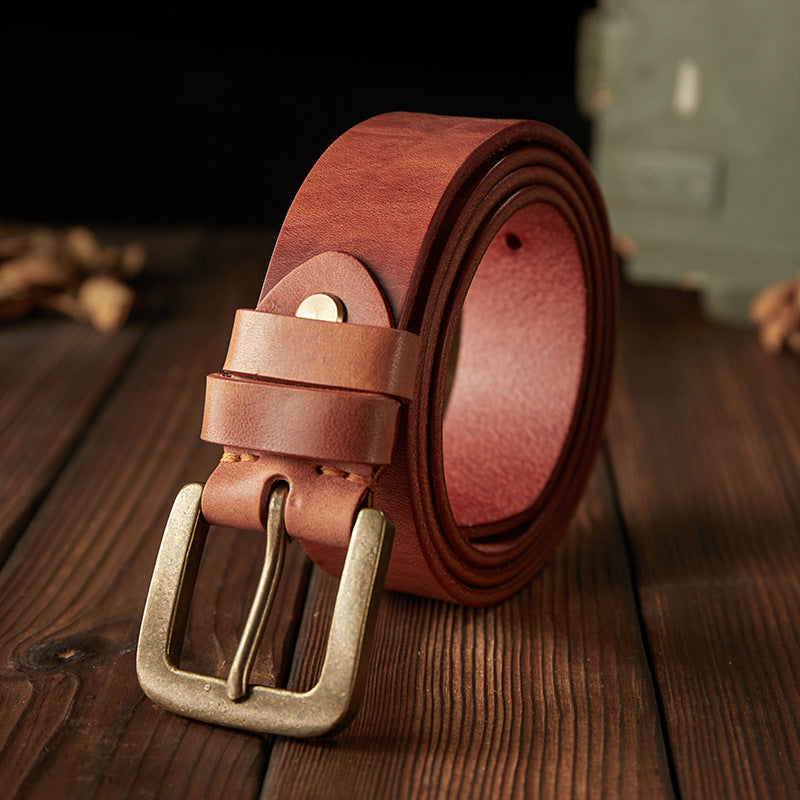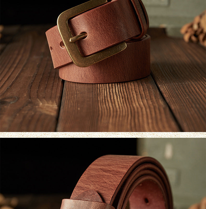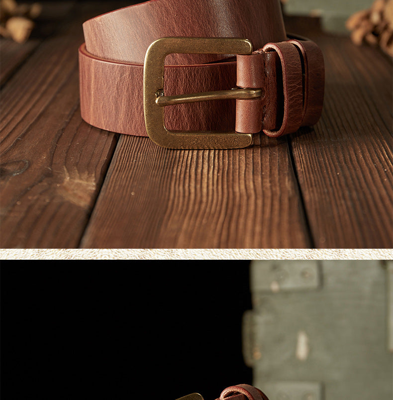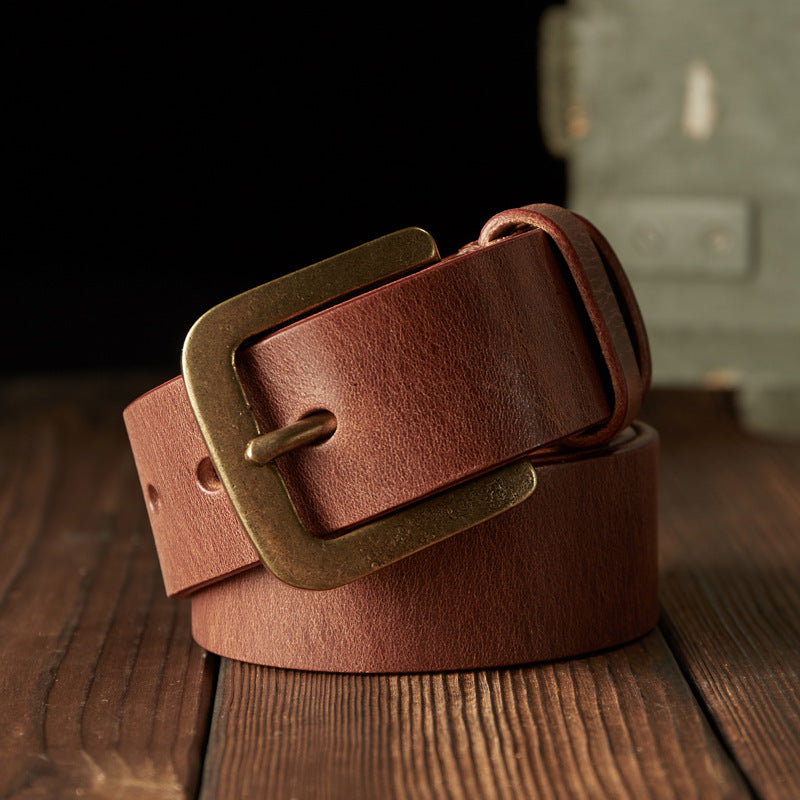 メンズベルト手作りオリジナルレトロ牛革本革製針バックルカジュアルシンプル銅バックル男性用ベルト
