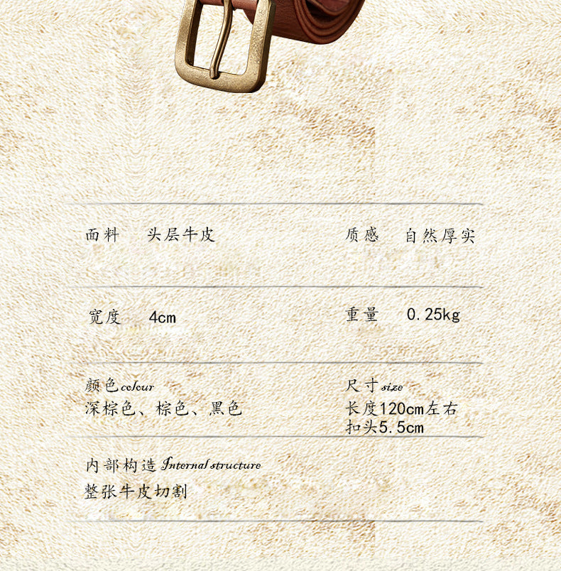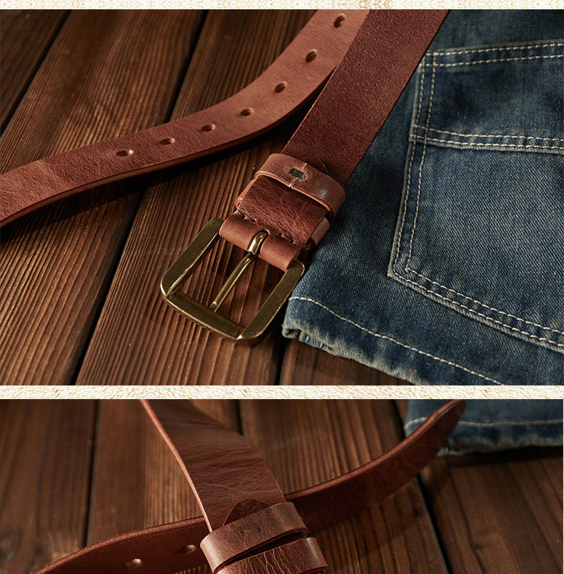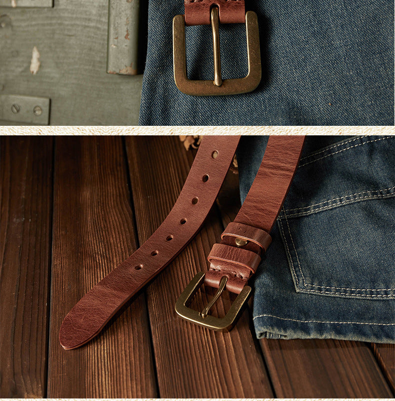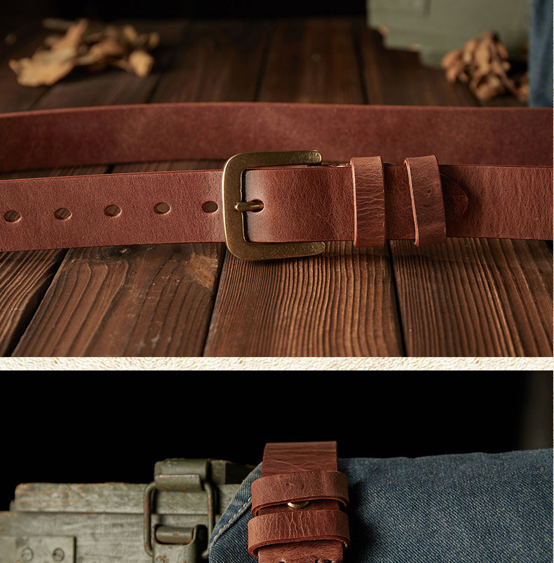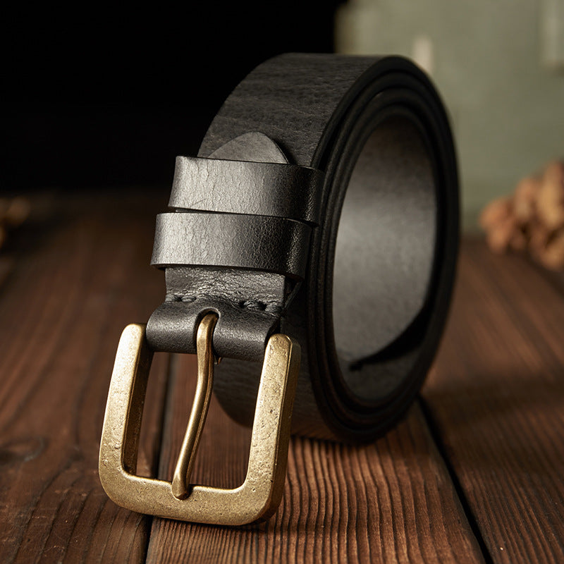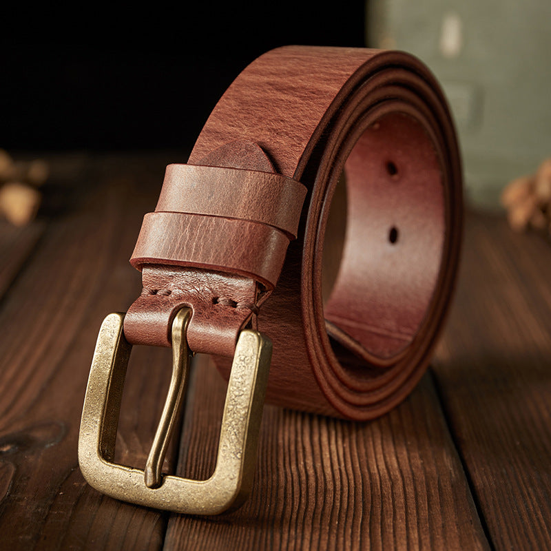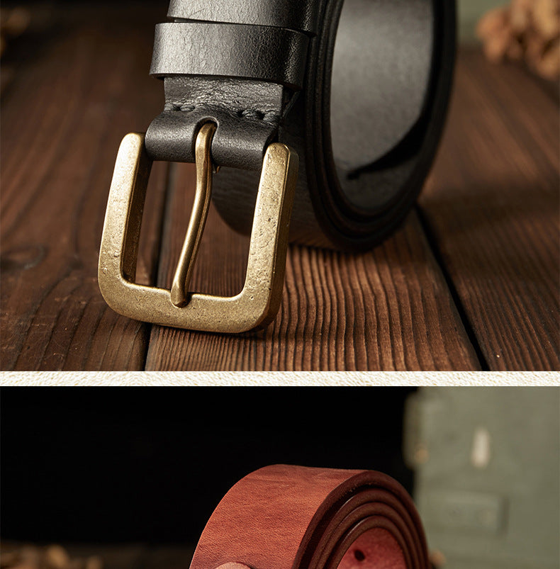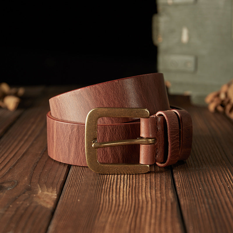 メンズベルト手作りオリジナルレトロ牛革本革製針バックルカジュアルシンプル銅バックル男性用ベルト