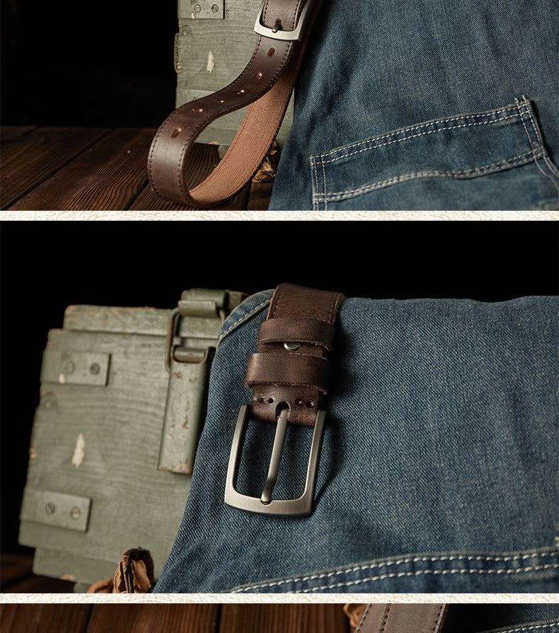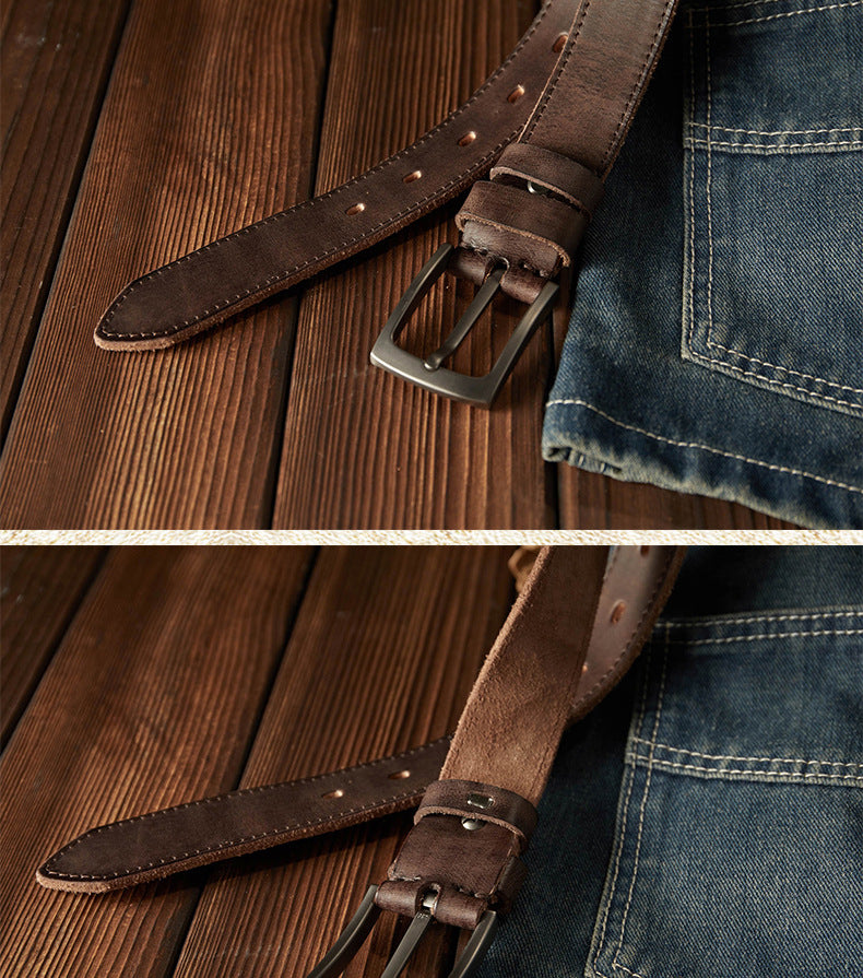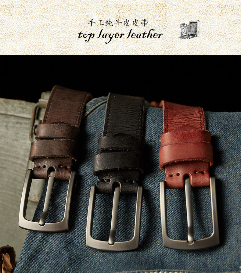 メンズベルト 手作り 牛革本革製 針バックル ヴィンテージ男性用ベルト
