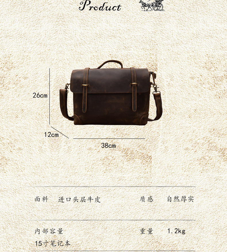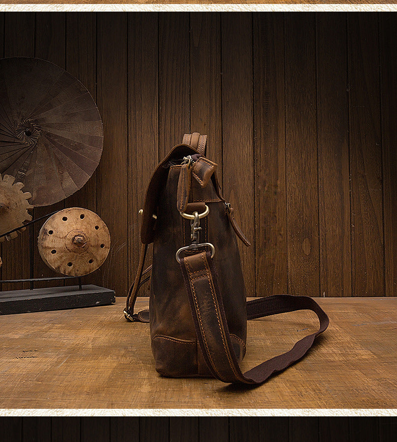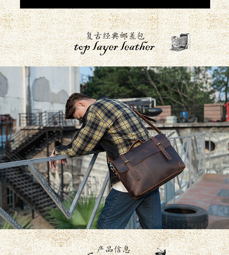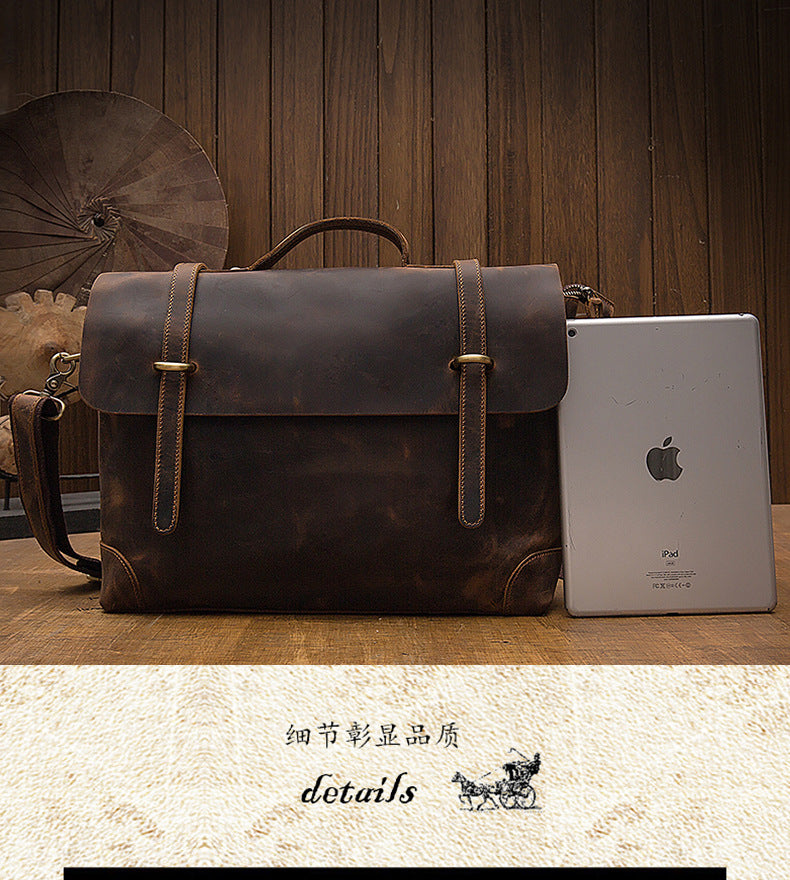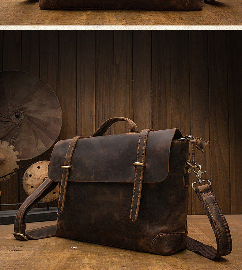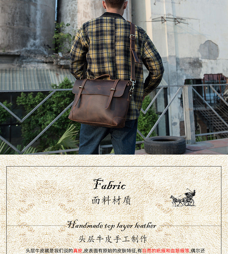 メンズメッセンジャーバッグ 手作り 牛皮本革製 クレイジー・ホース レトロ ハンドバッグ手提げかばん男性用ブリーフケース斜めがけショルダーバッグ
