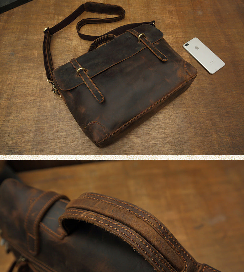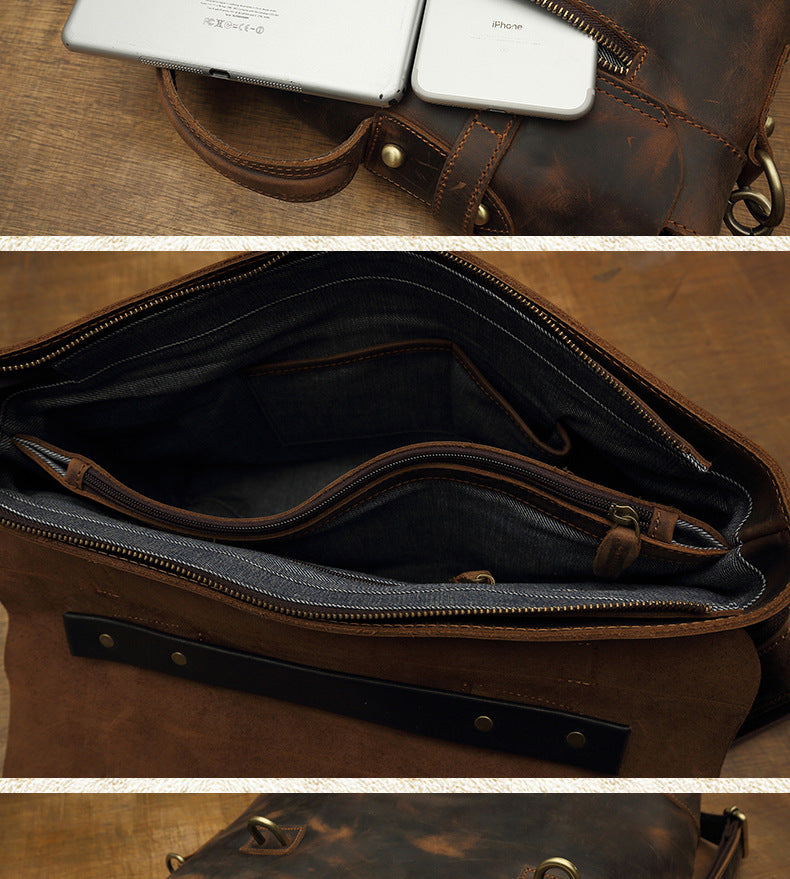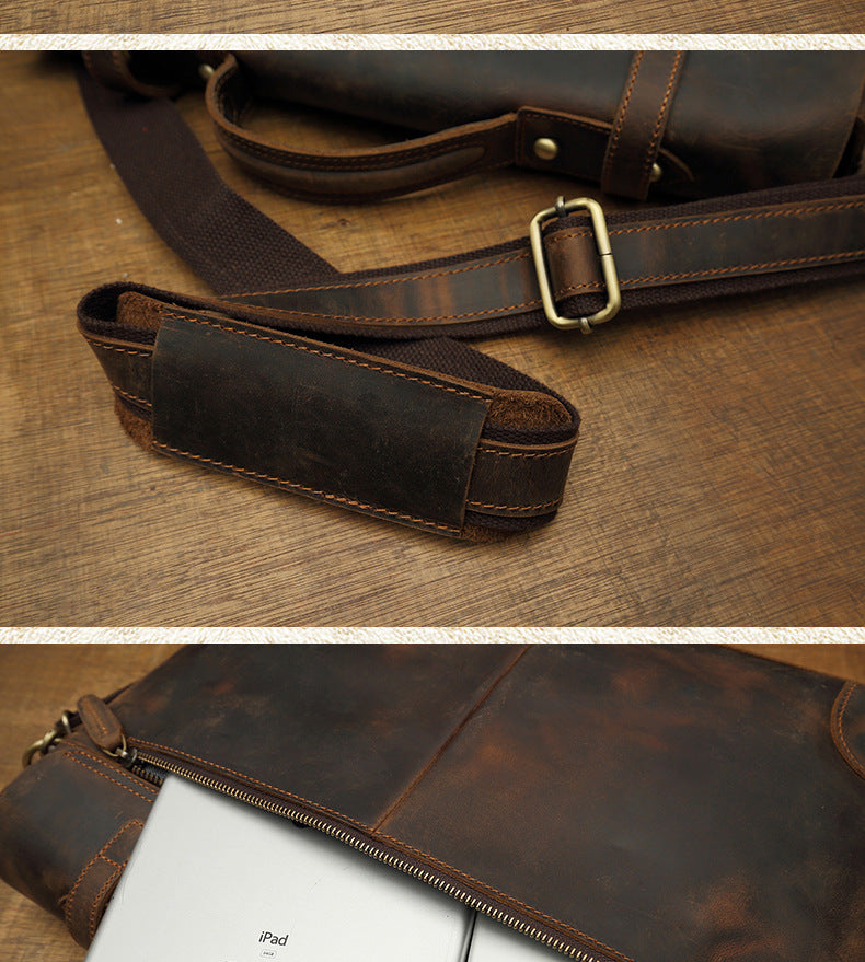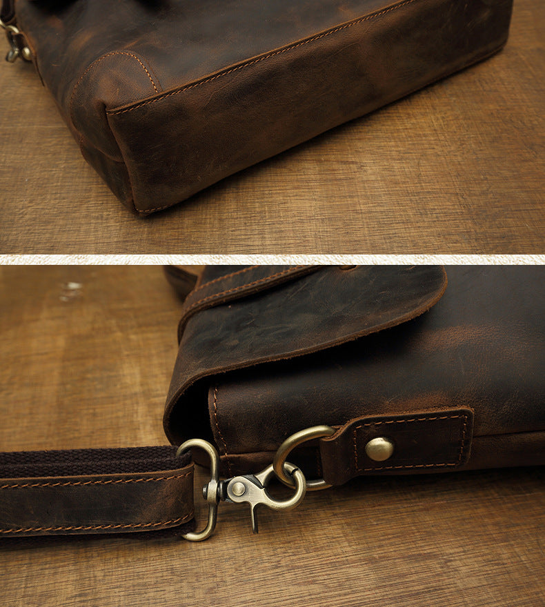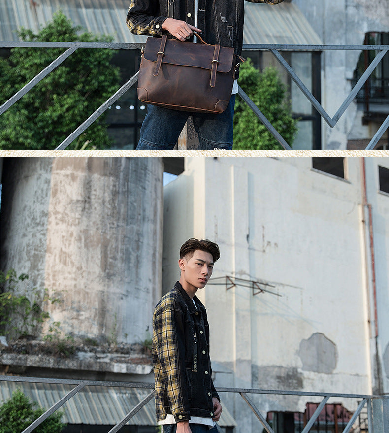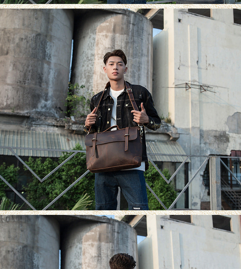 メンズメッセンジャーバッグ 手作り 牛皮本革製 クレイジー・ホース レトロ ハンドバッグ手提げかばん男性用ブリーフケース斜めがけショルダーバッグ