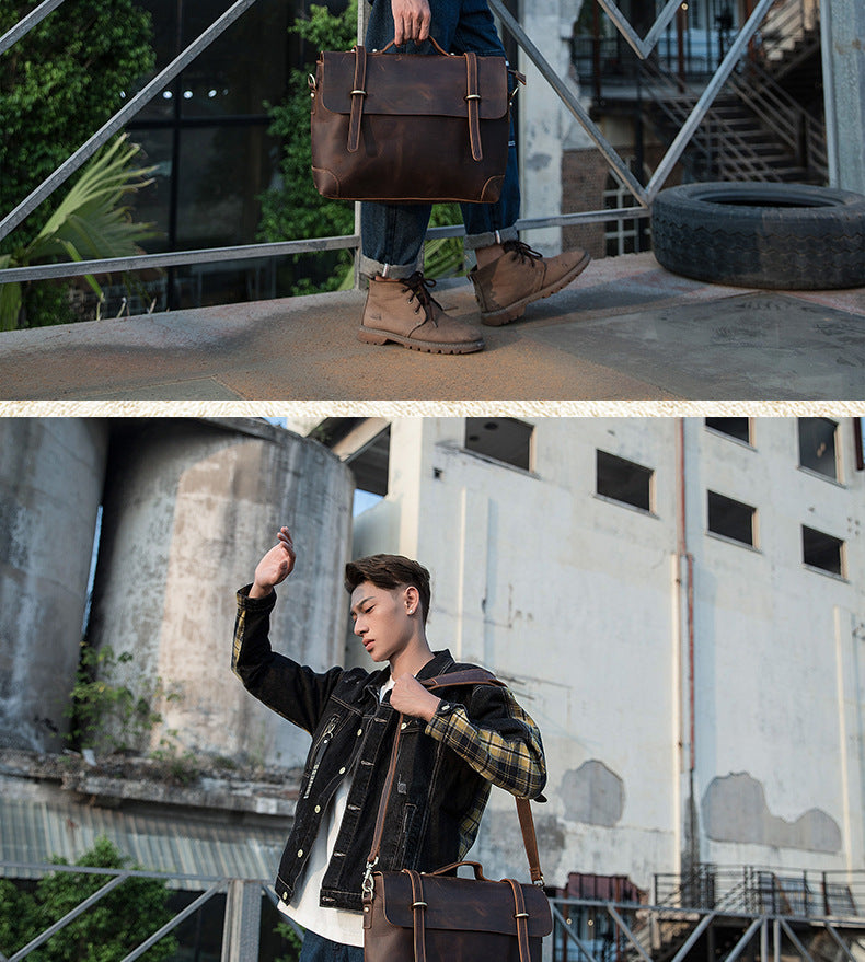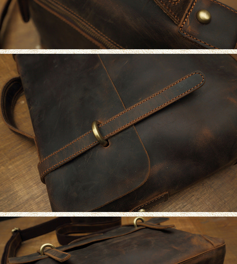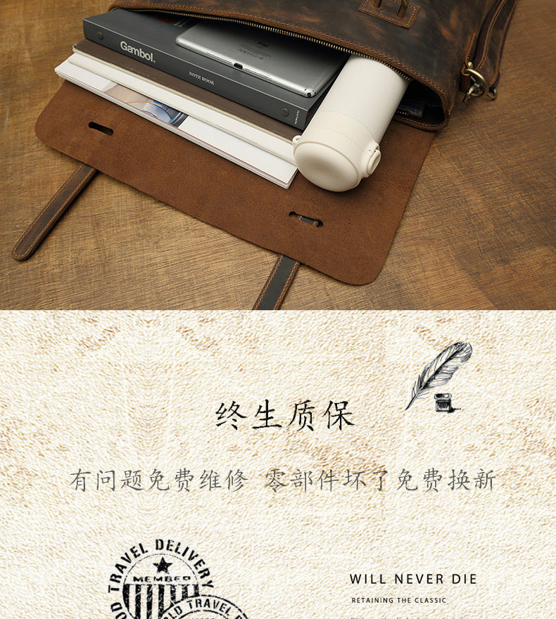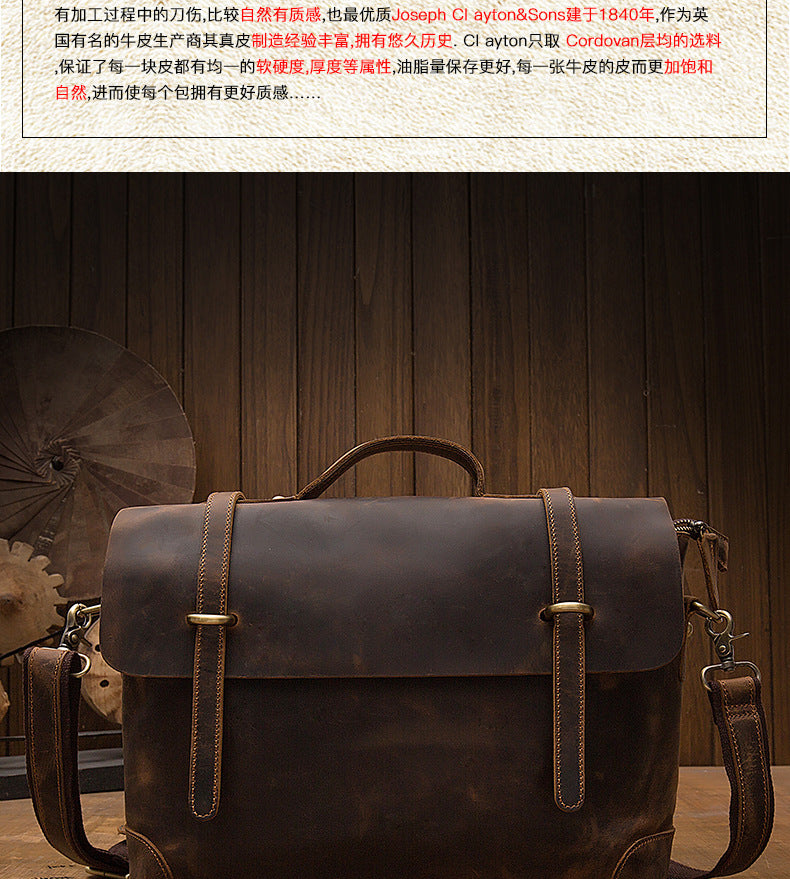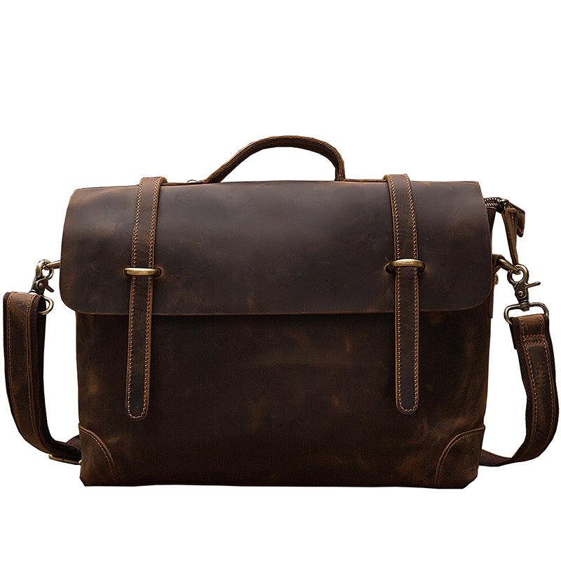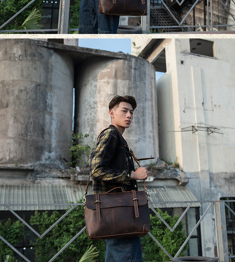 メンズメッセンジャーバッグ 手作り 牛皮本革製 クレイジー・ホース レトロ ハンドバッグ手提げかばん男性用ブリーフケース斜めがけショルダーバッグ