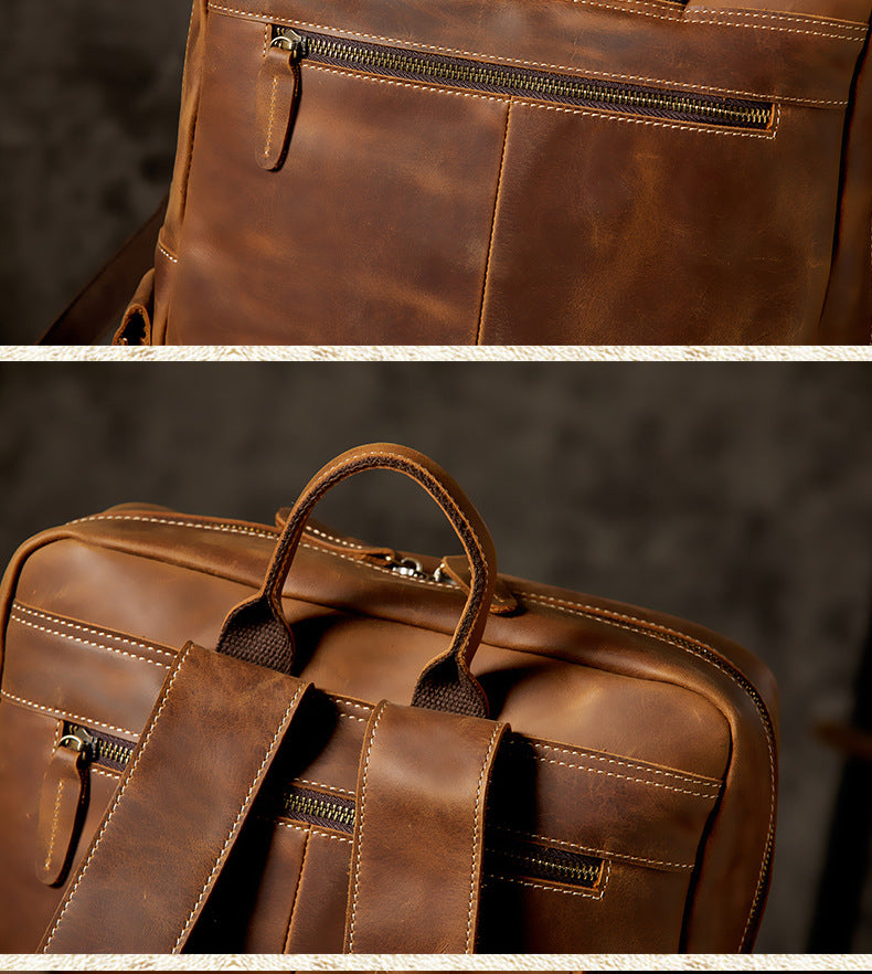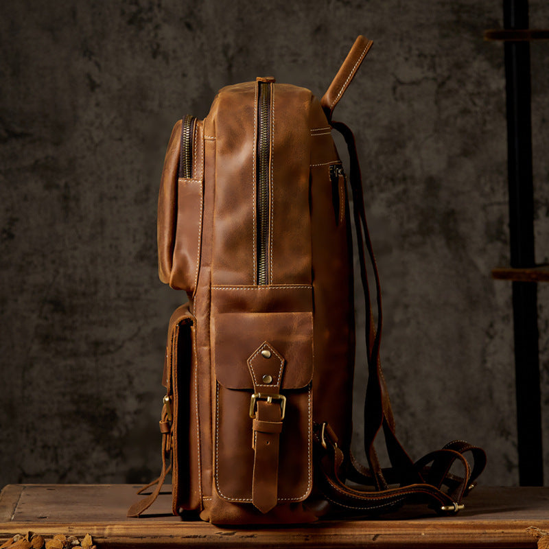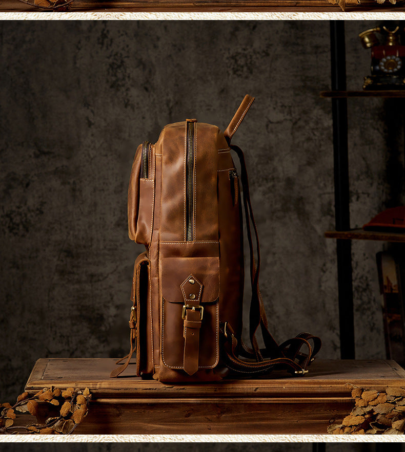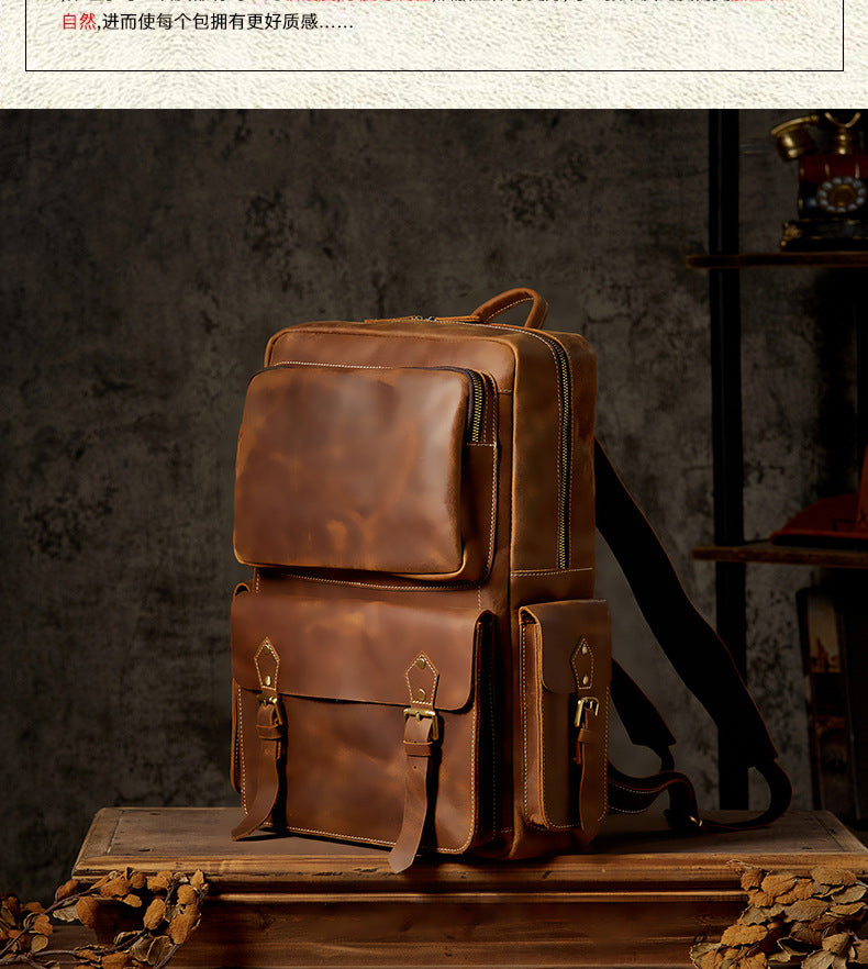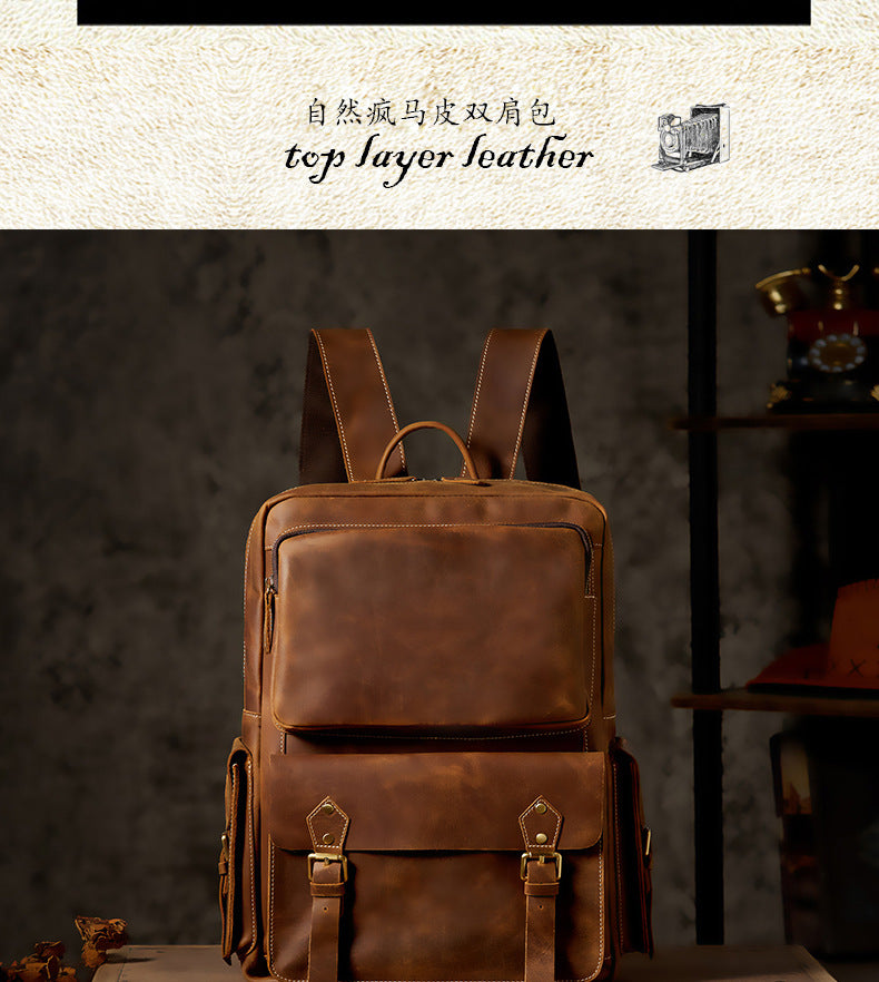 メンズリュック手作り牛革本革製レトロクレイジー・ホース大容量旅行かばん男性用パソコンバッグ