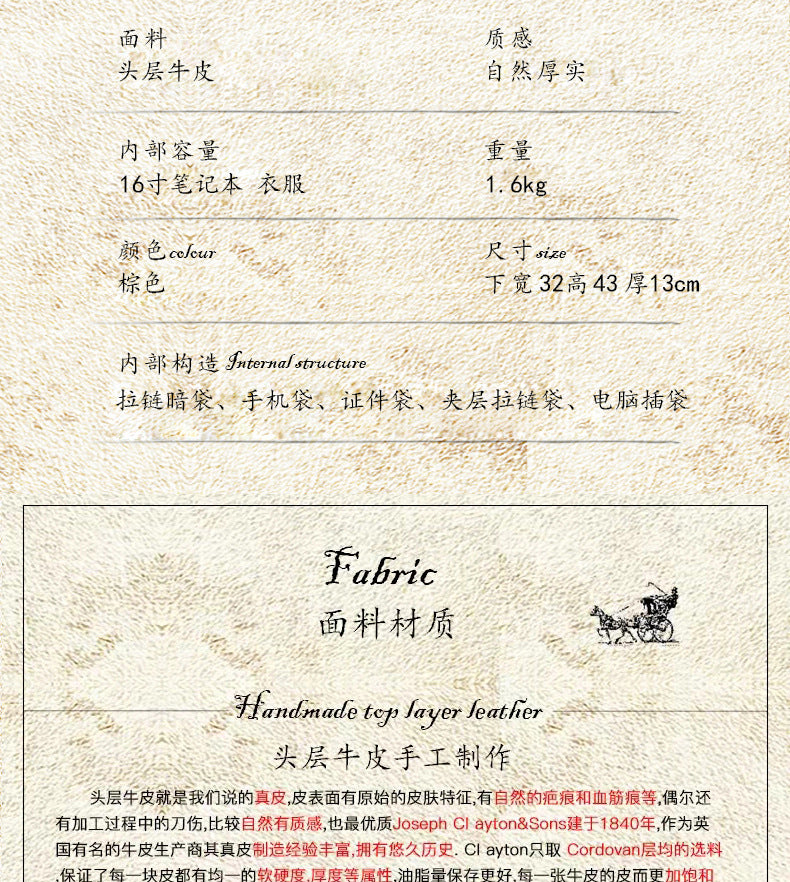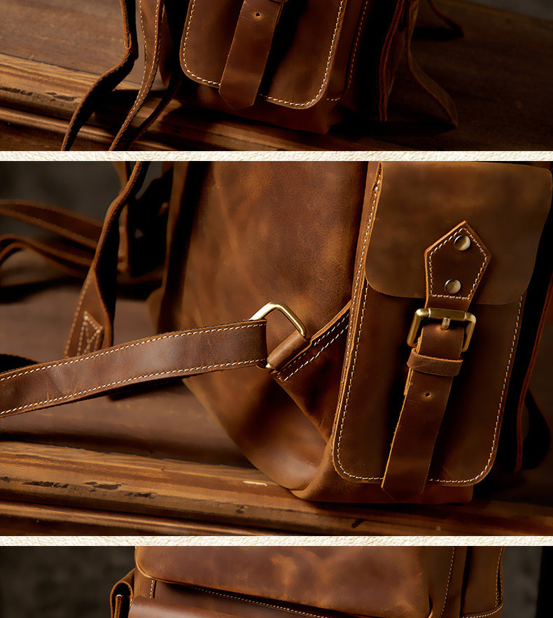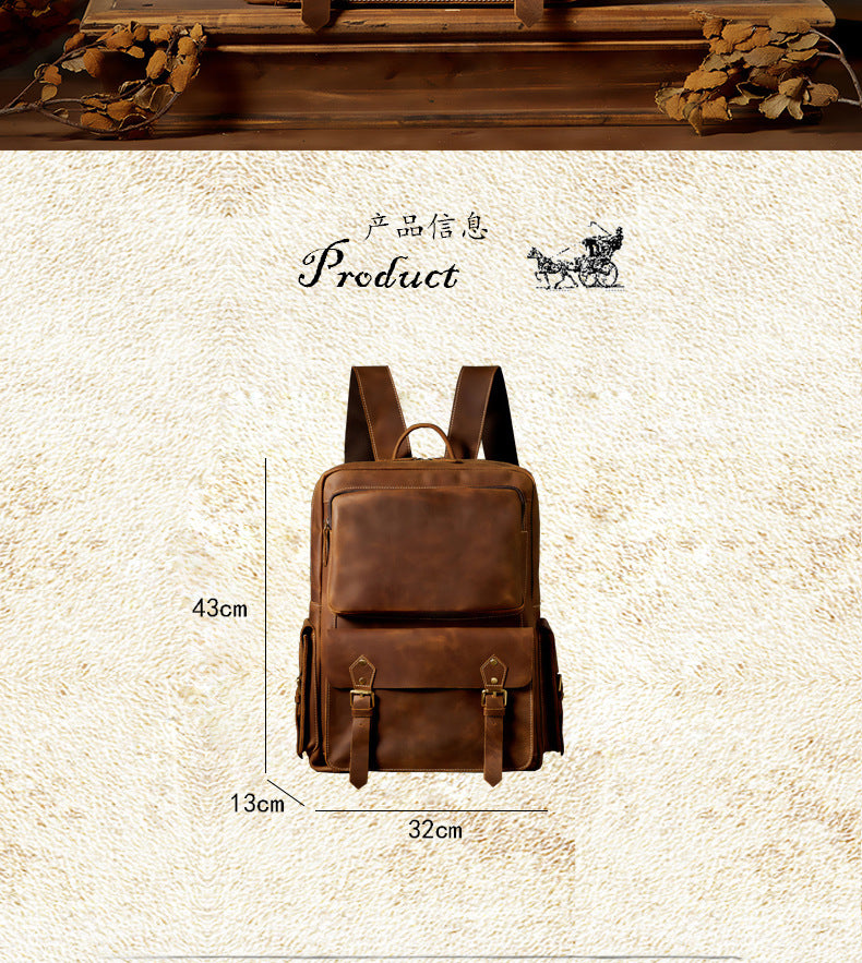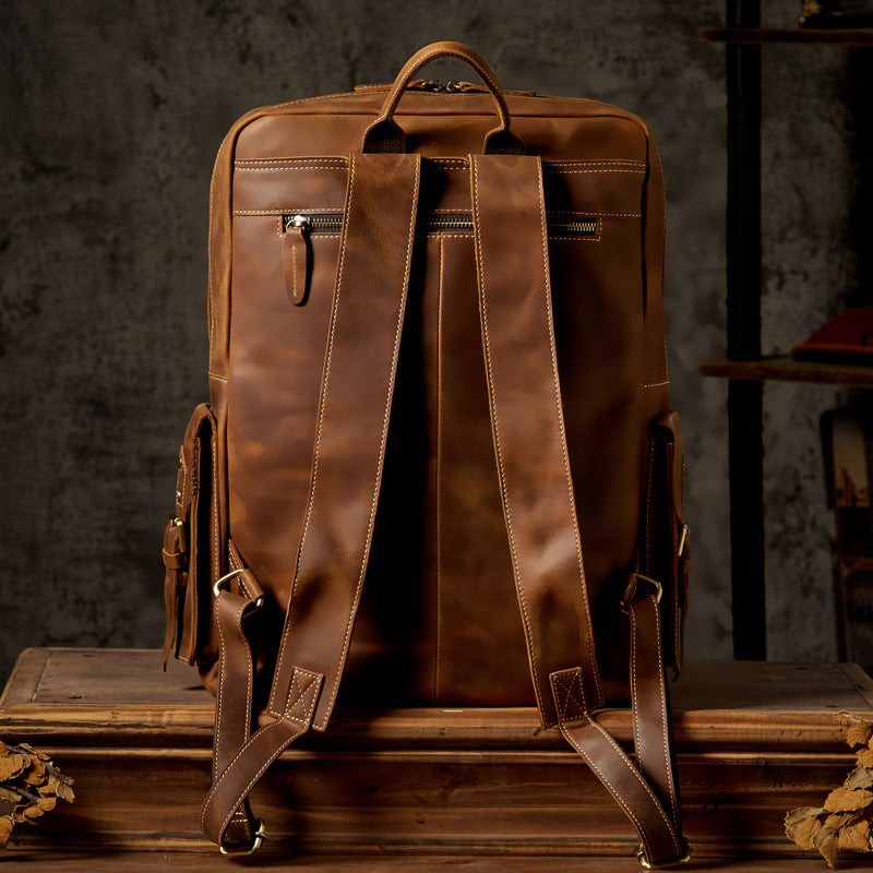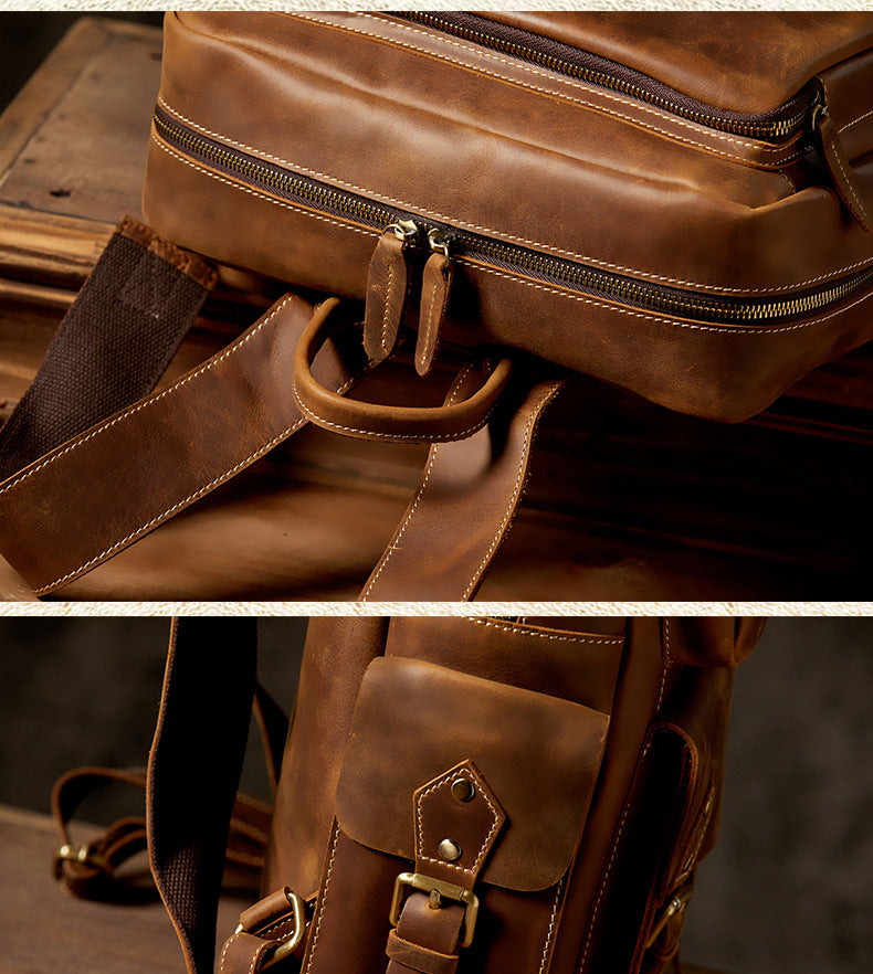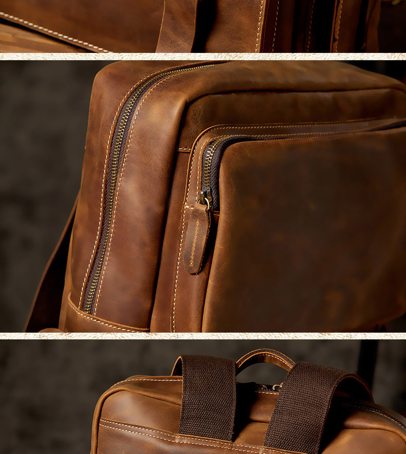メンズリュック手作り牛革本革製レトロクレイジー・ホース大容量旅行かばん男性用パソコンバッグ