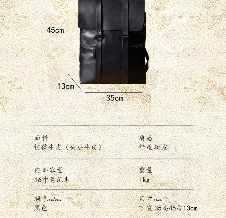 メンズリュック手作り牛革本革製高级感大容量カジュアルビジネスパソコンバッグファッション男性旅行かばん