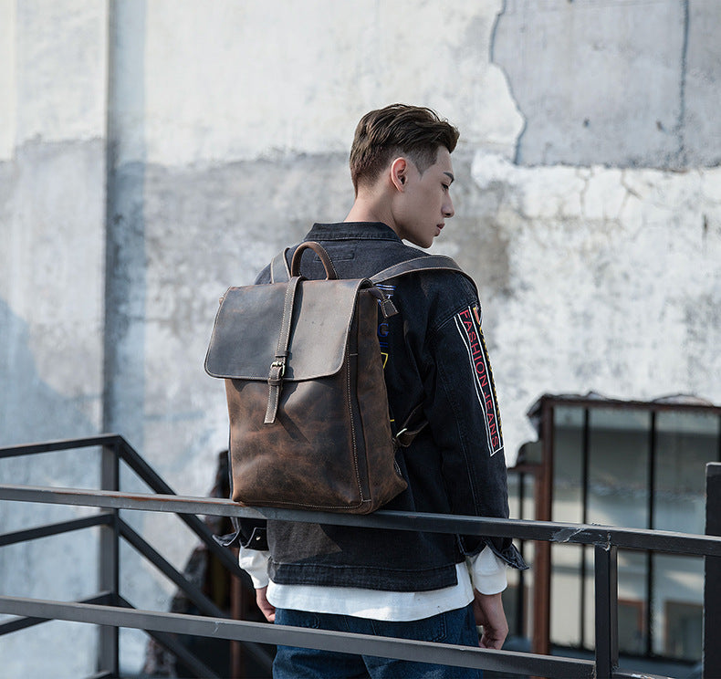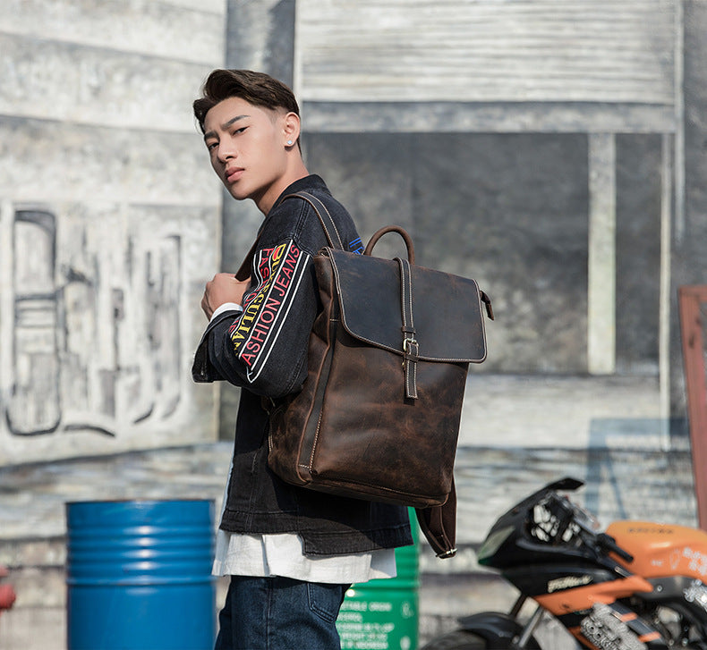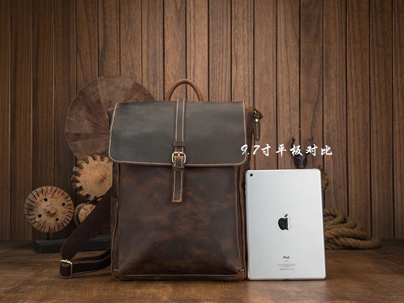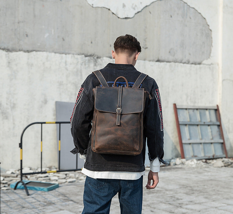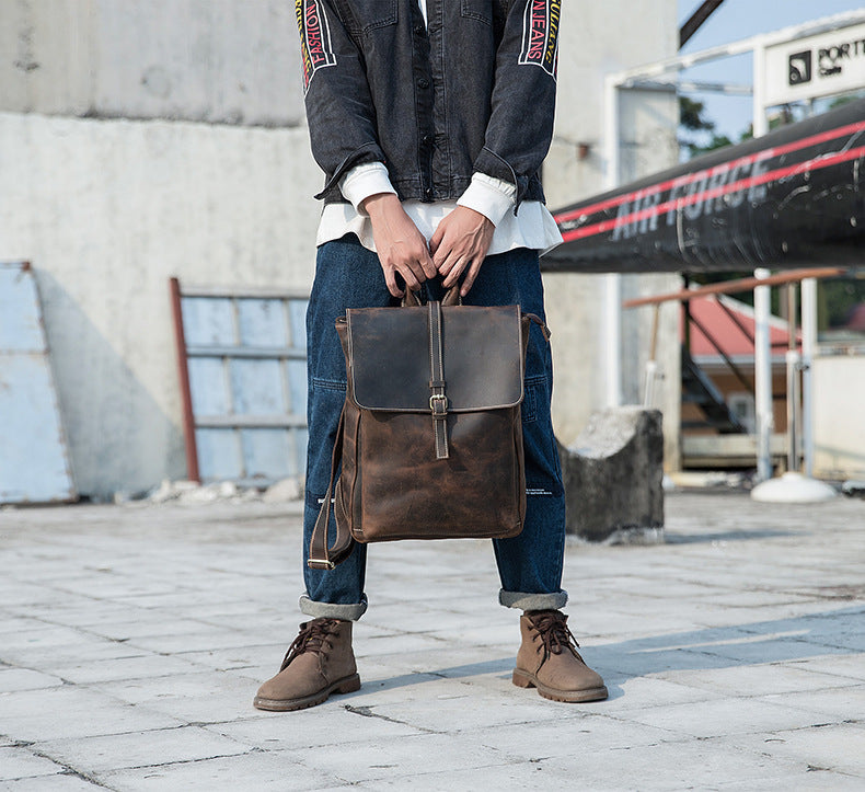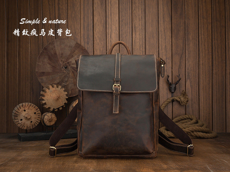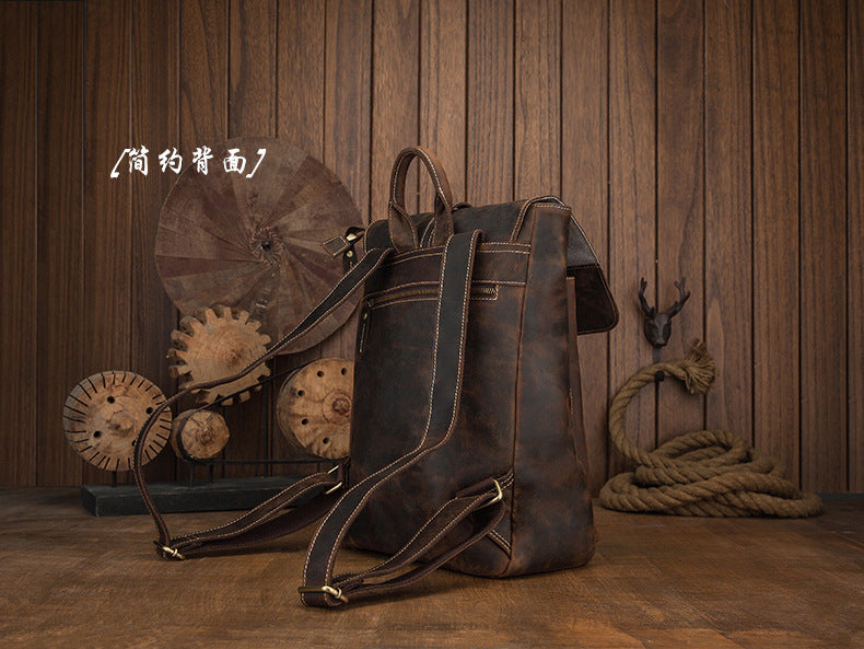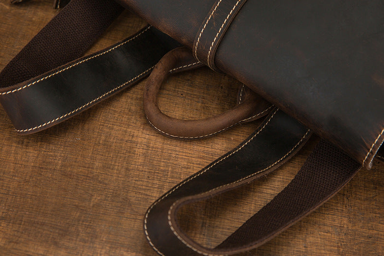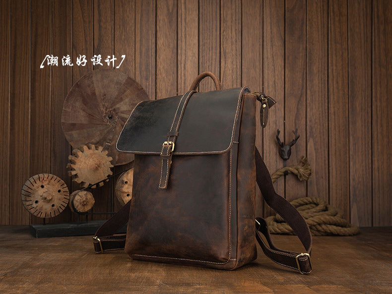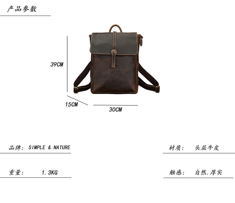 メンズリュック手作業牛革本革製クレイジー・ホース韩国ファッションカジュアル通勤パソコンバッグ旅行かばん