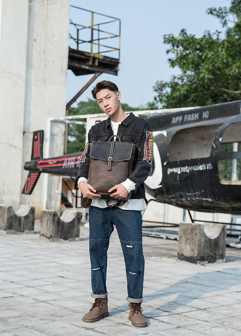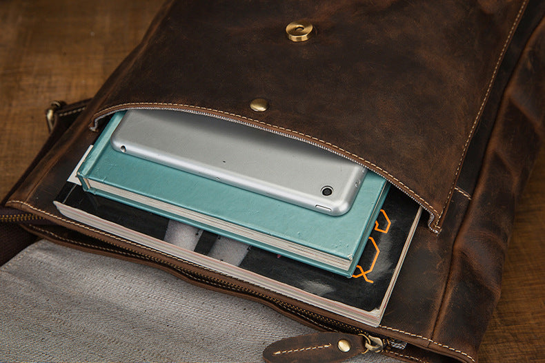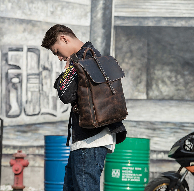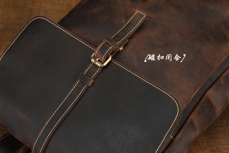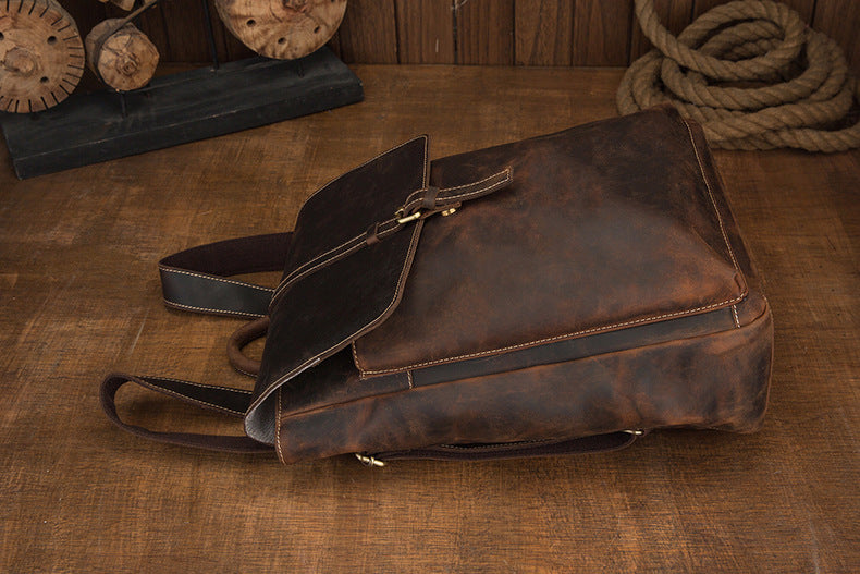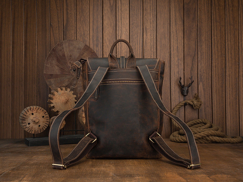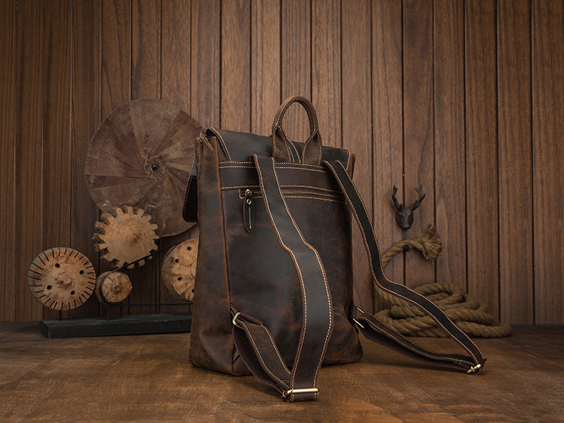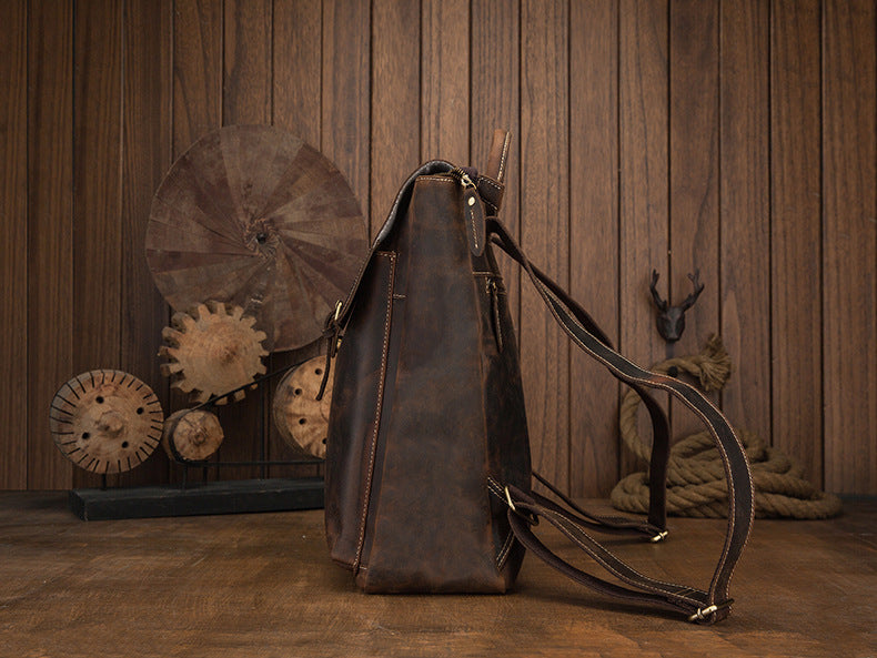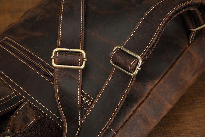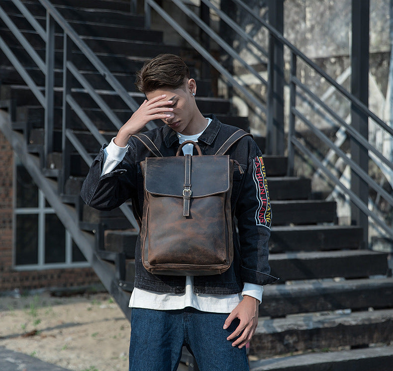 メンズリュック手作業牛革本革製クレイジー・ホース韩国ファッションカジュアル通勤パソコンバッグ旅行かばん