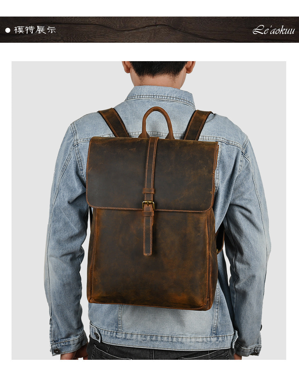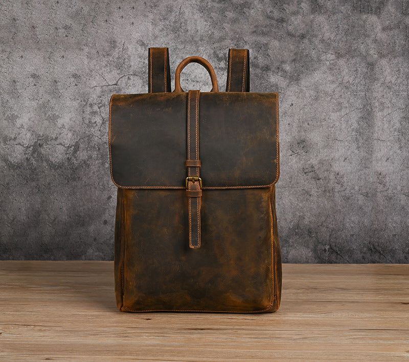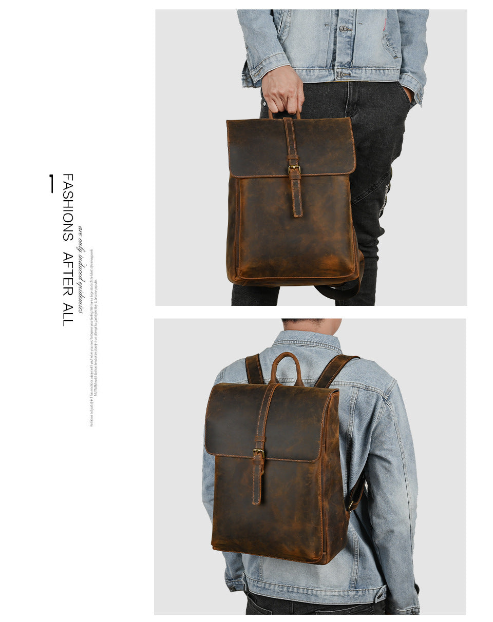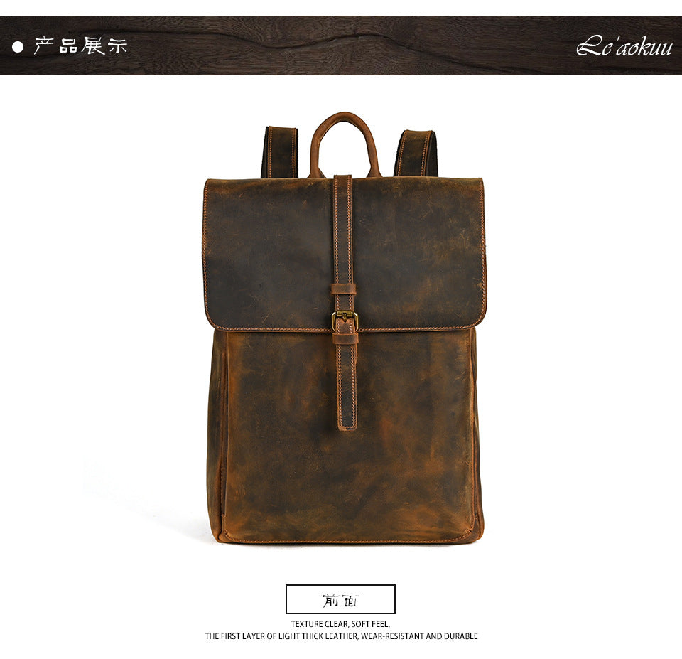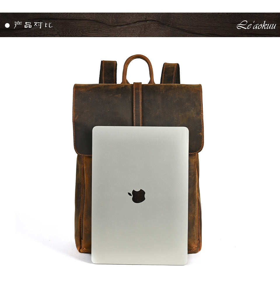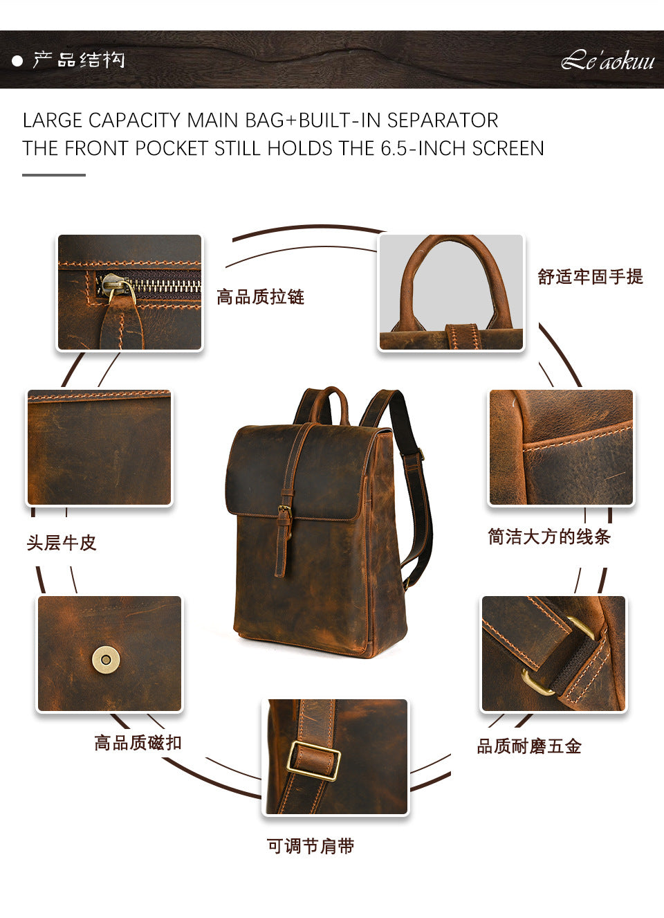 メンズリュック牛革本革製レトロカジュアル男性用パソコンバッグ