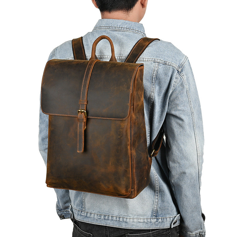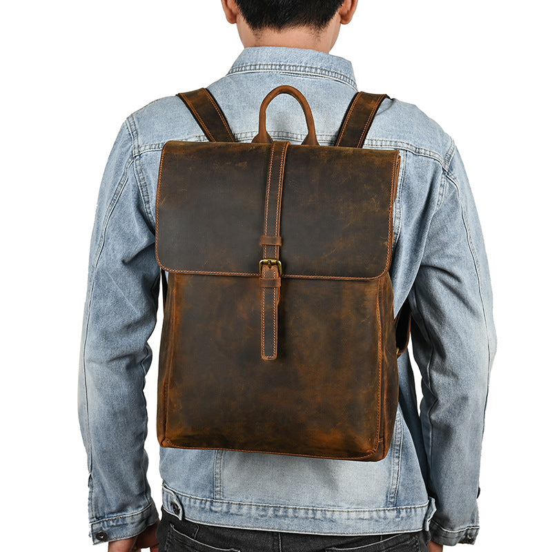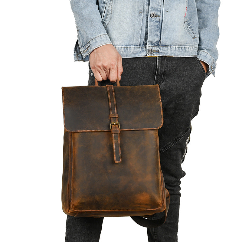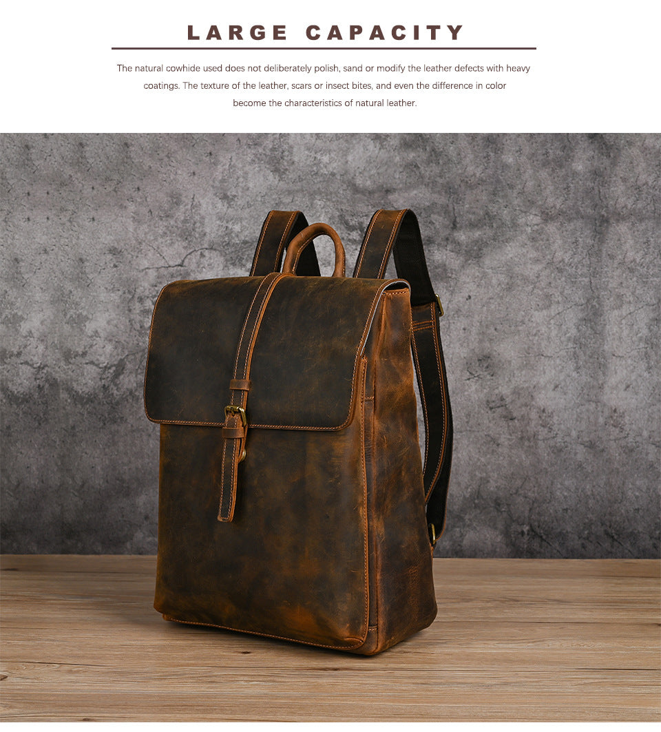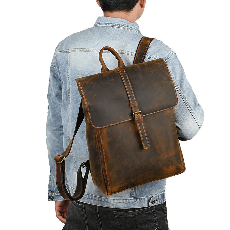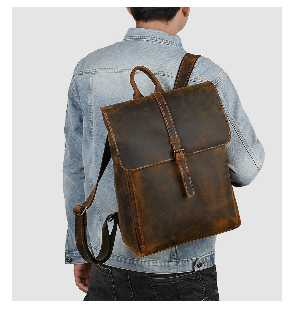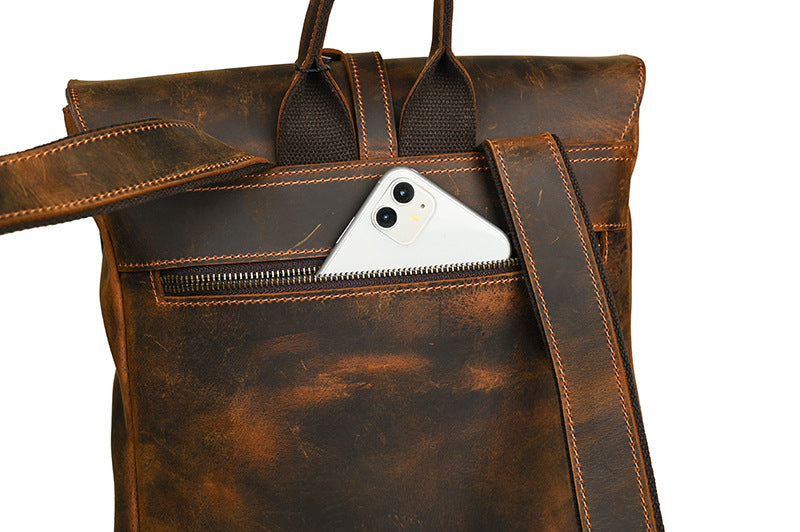 メンズリュック牛革本革製レトロカジュアル男性用パソコンバッグ