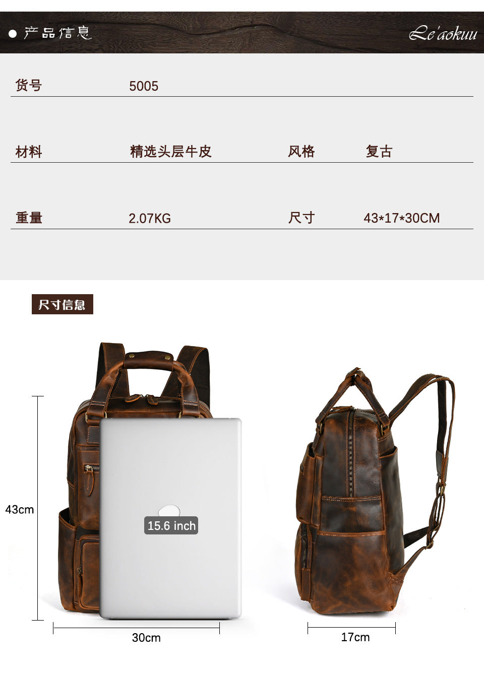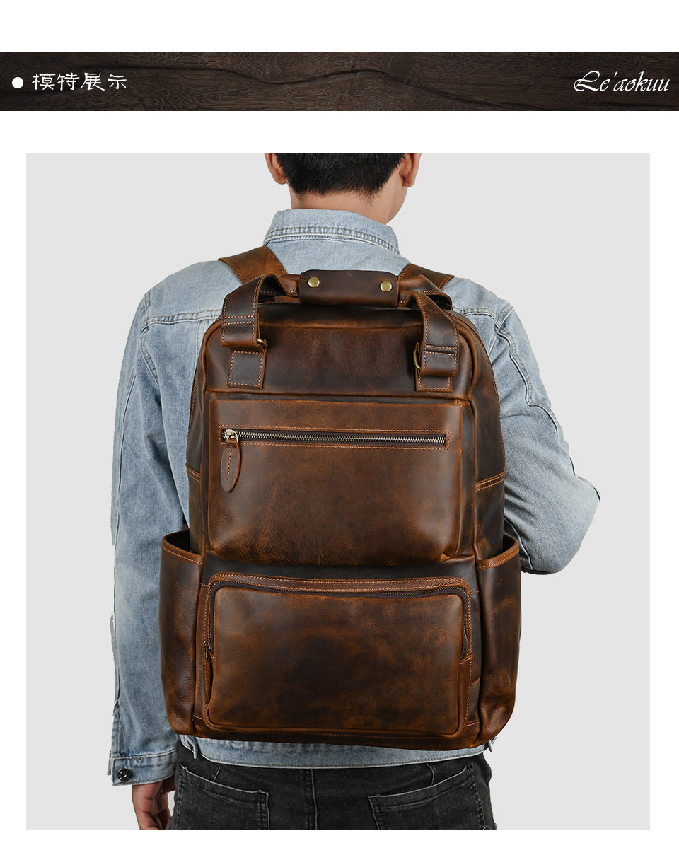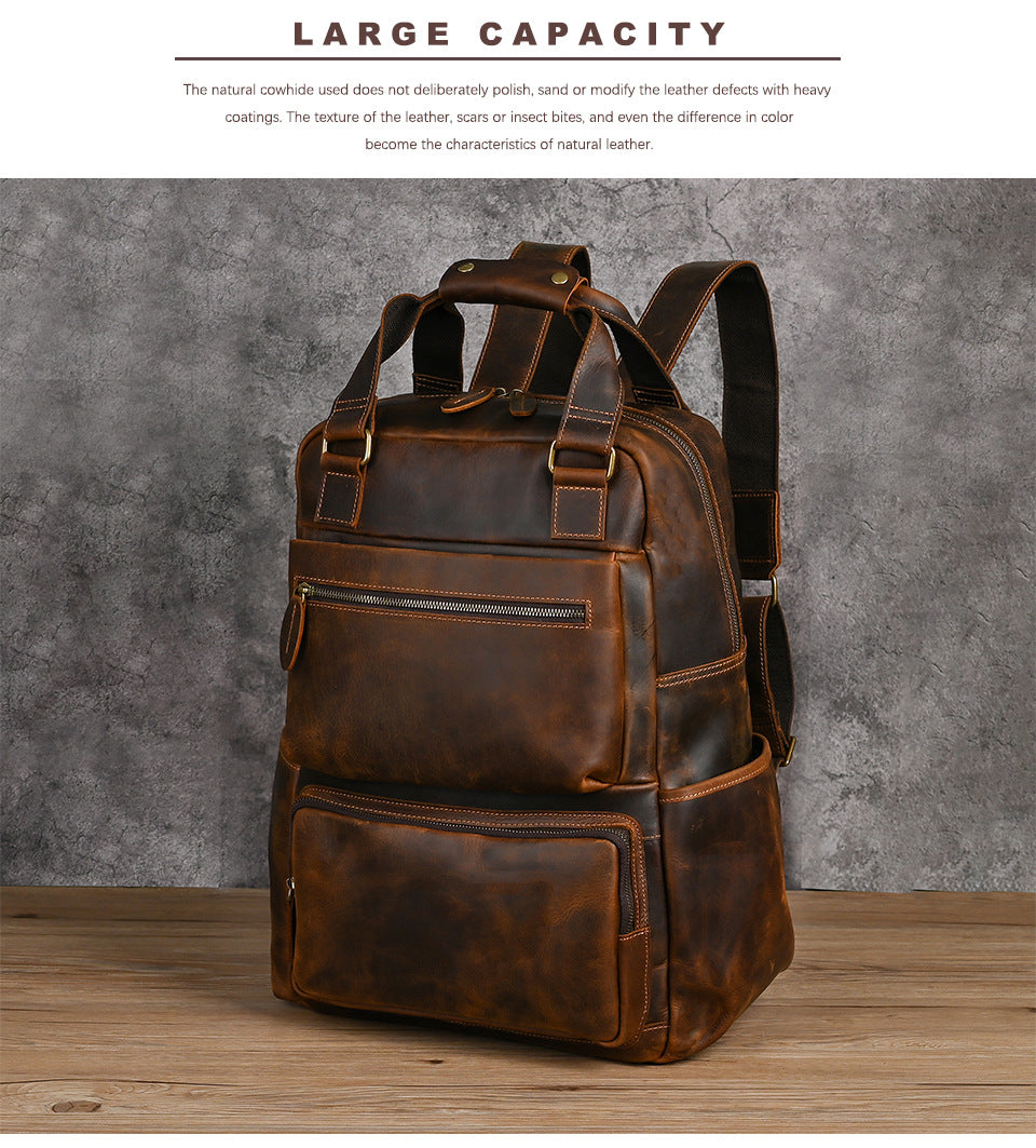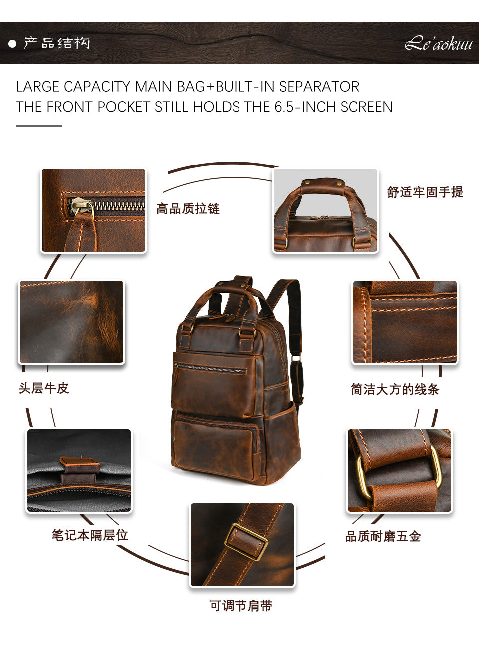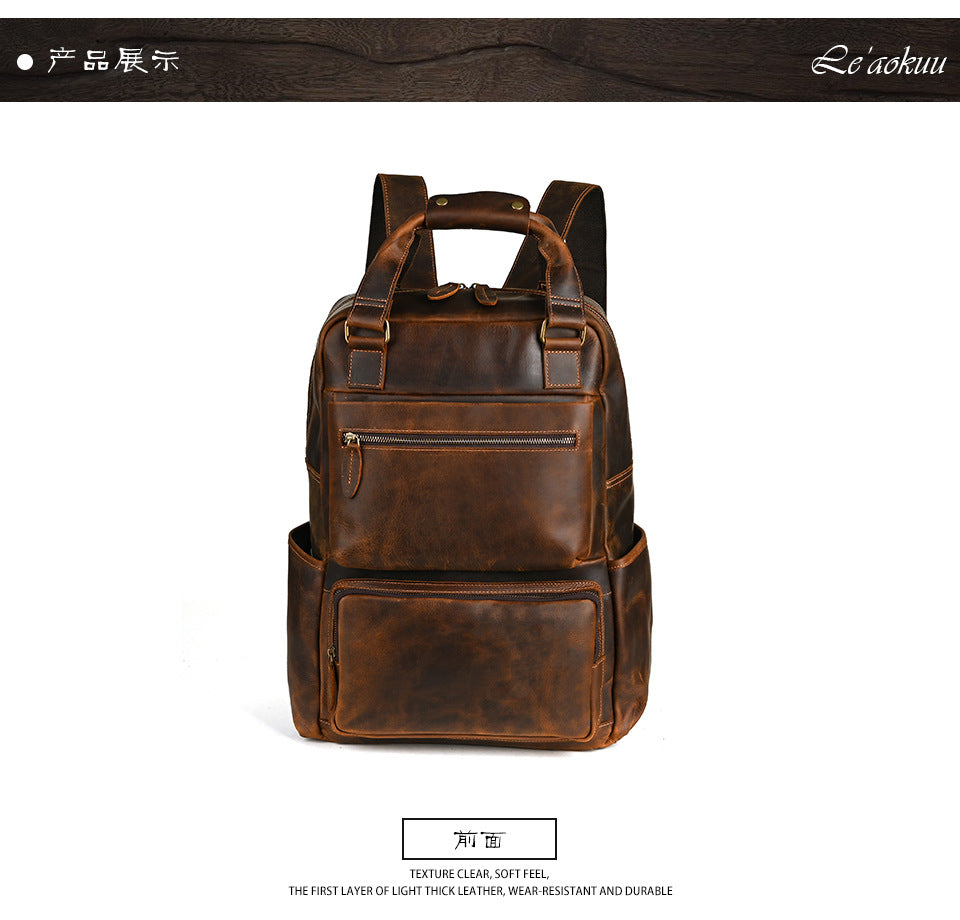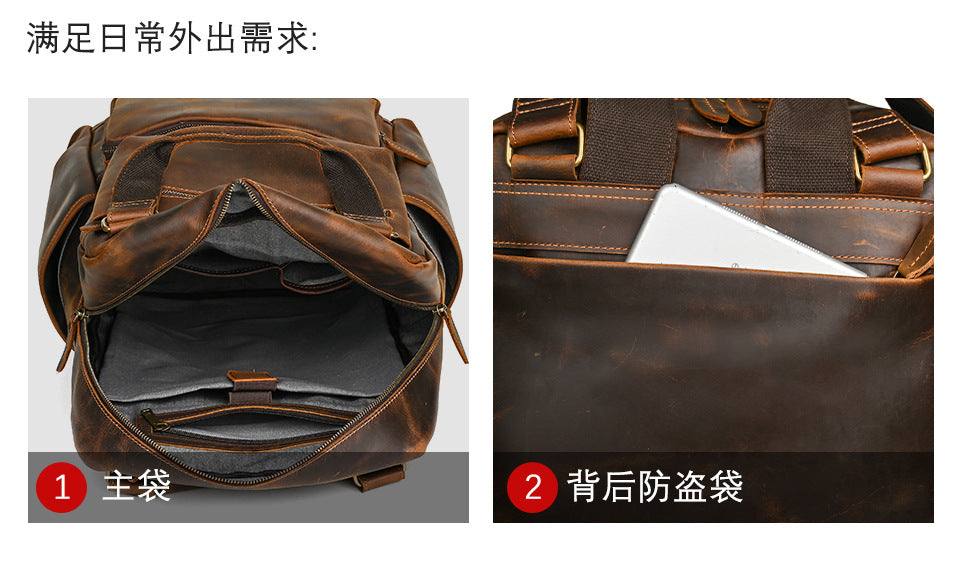 メンズリュック牛革本革製大容量アウトドアカジュアル男性用旅行かばんパソコンバッグ