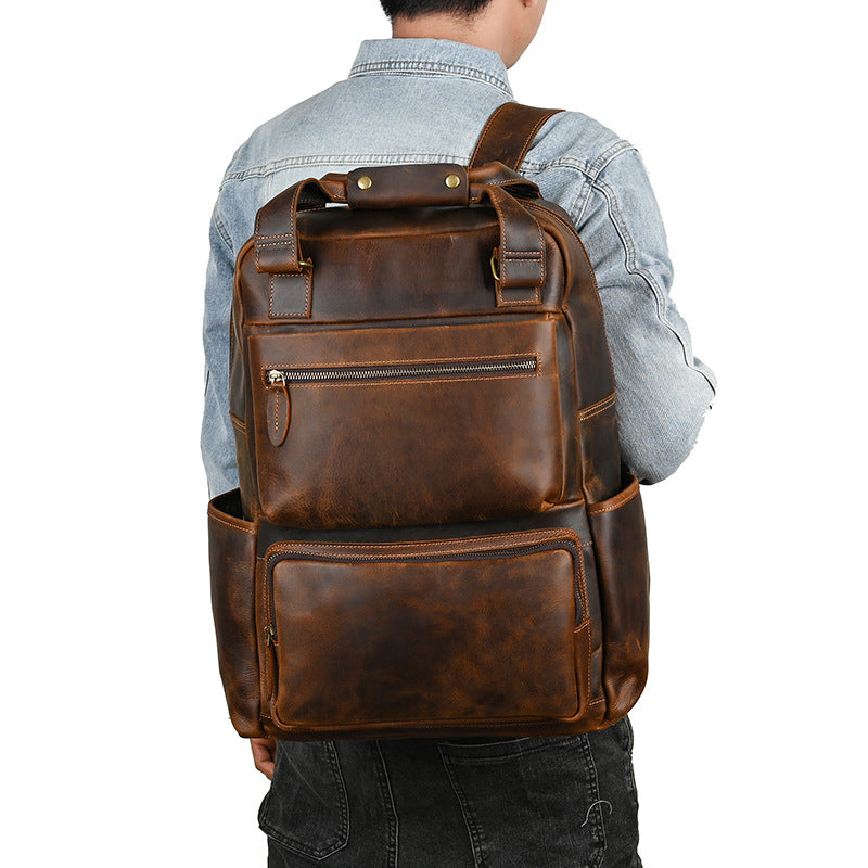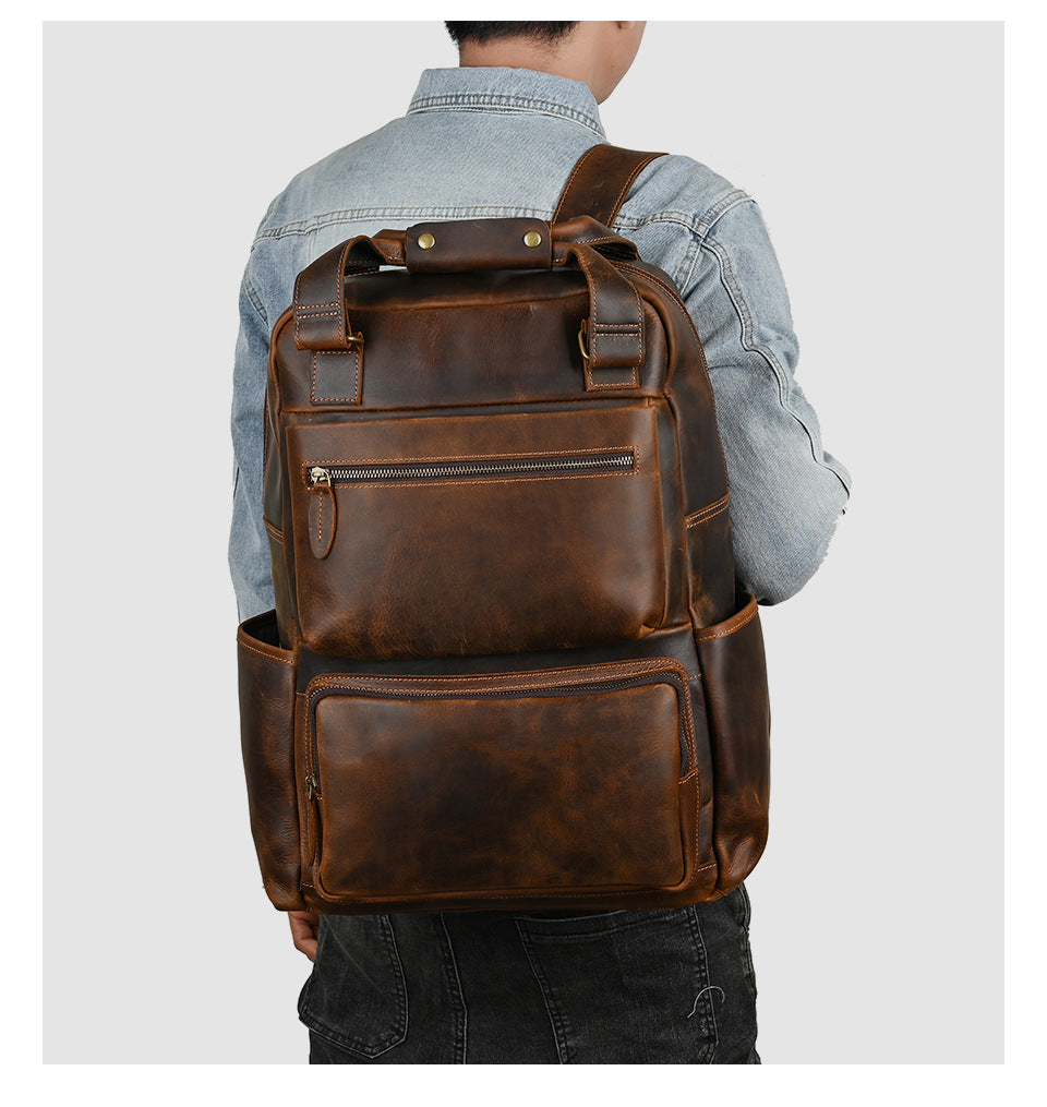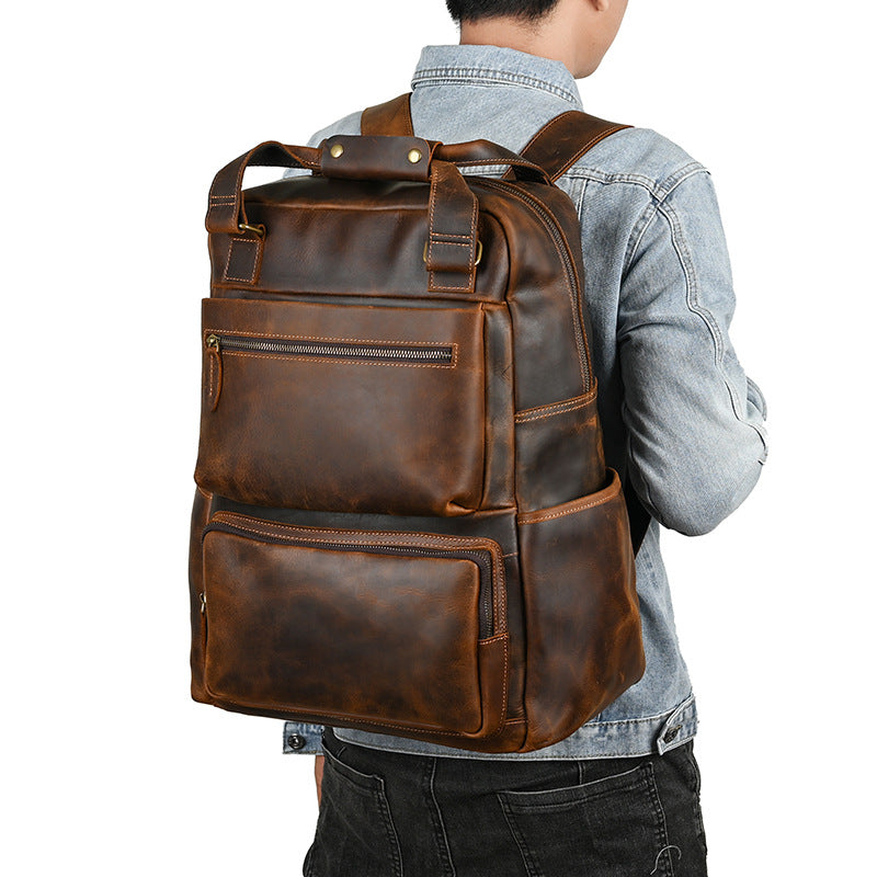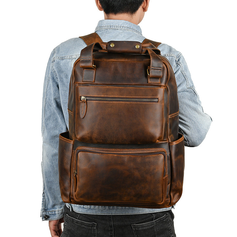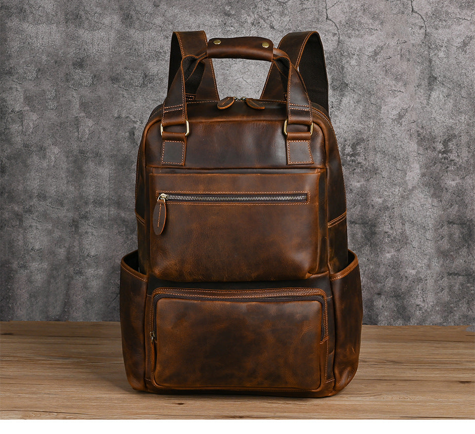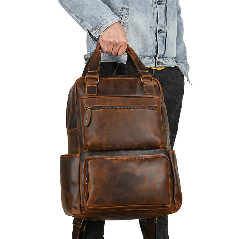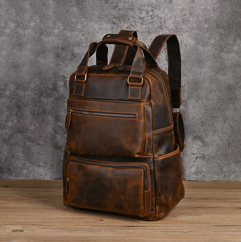 メンズリュック牛革本革製大容量アウトドアカジュアル男性用旅行かばんパソコンバッグ
