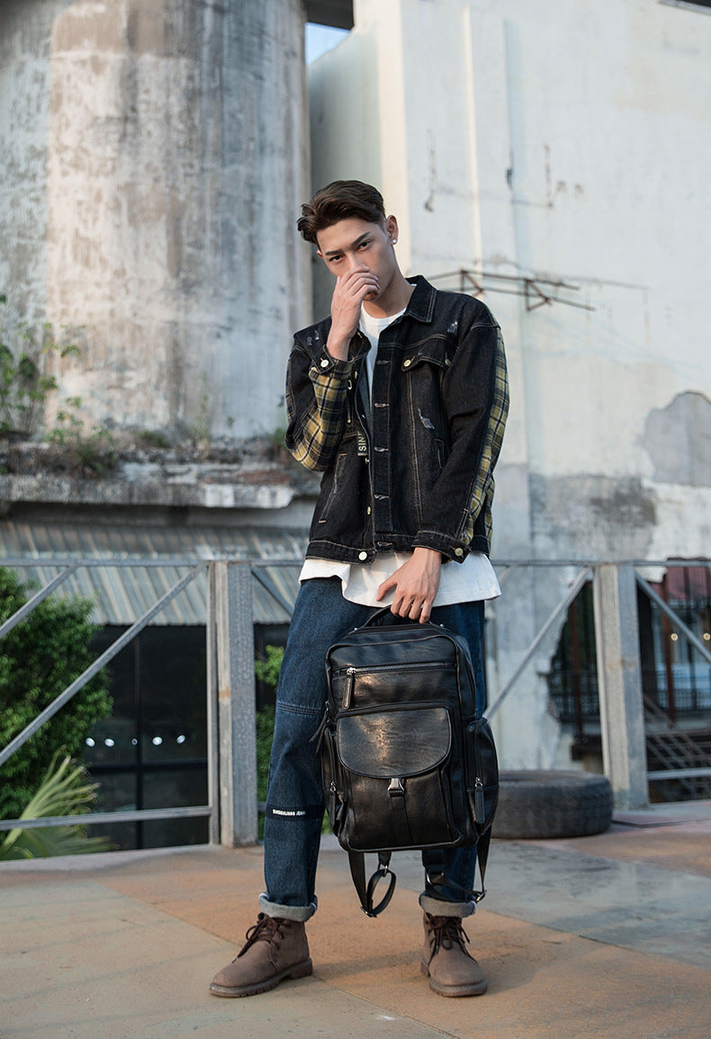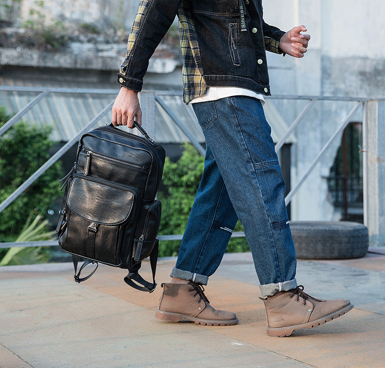 メンズリュック オリジナル手作業 牛革本革製 大容量 カジュアルファッション男性用旅行かばん