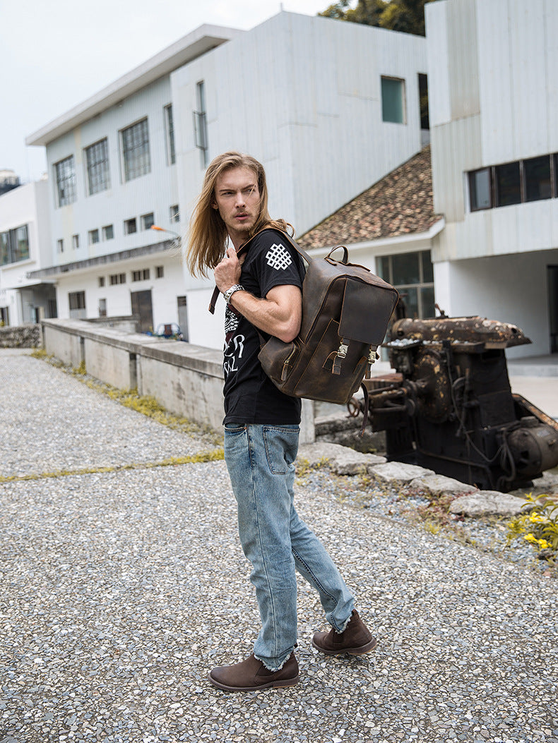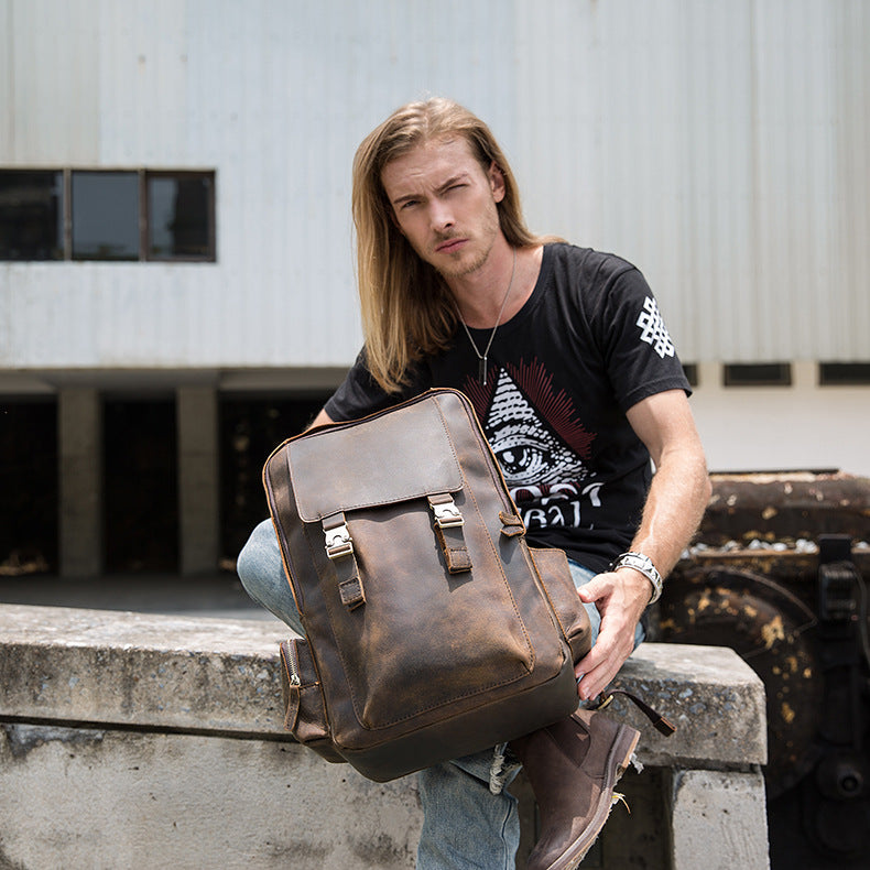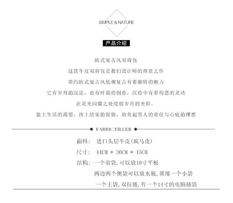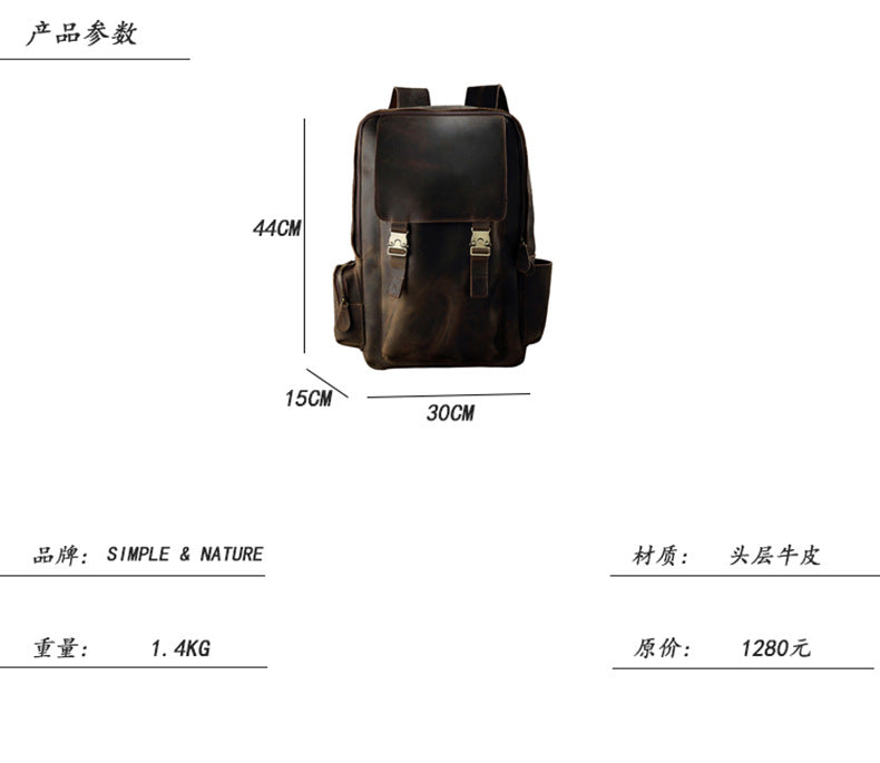 メンズリュック 牛革クレイジー・ホースオリジナルレトロ カジュアル大容量荷物かばん旅行かばん