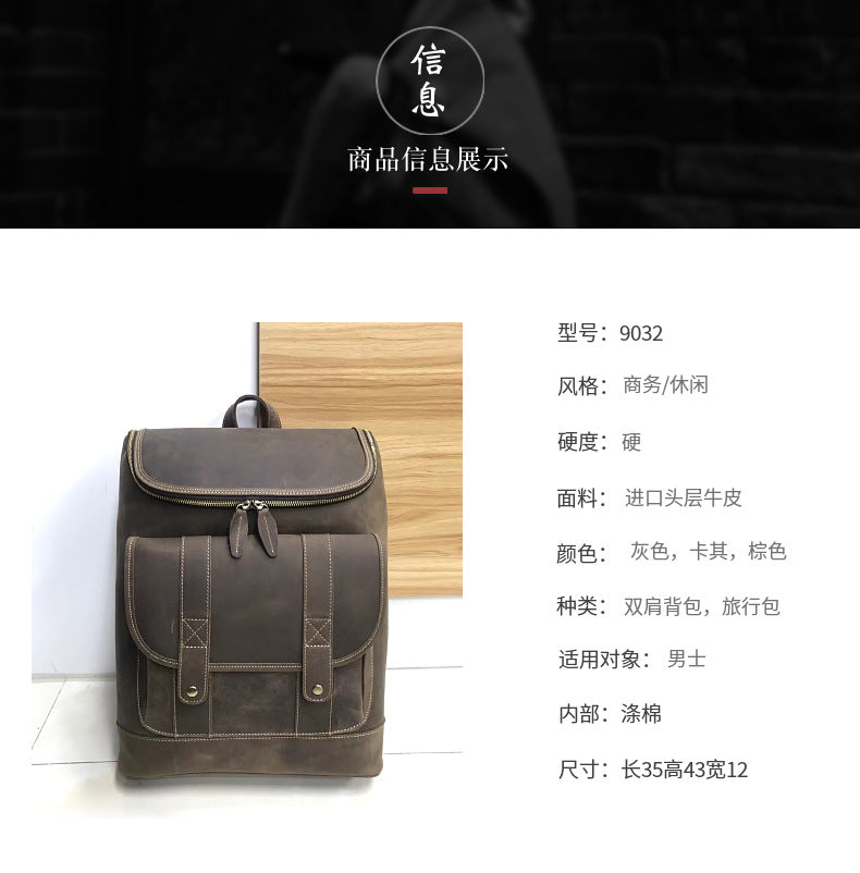 メンズリュック 牛革本革製 クレイジー・ホース レトロ 男女兼用 旅行かばん