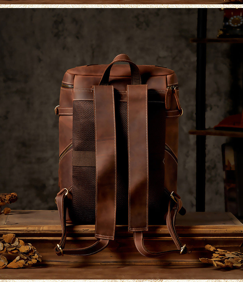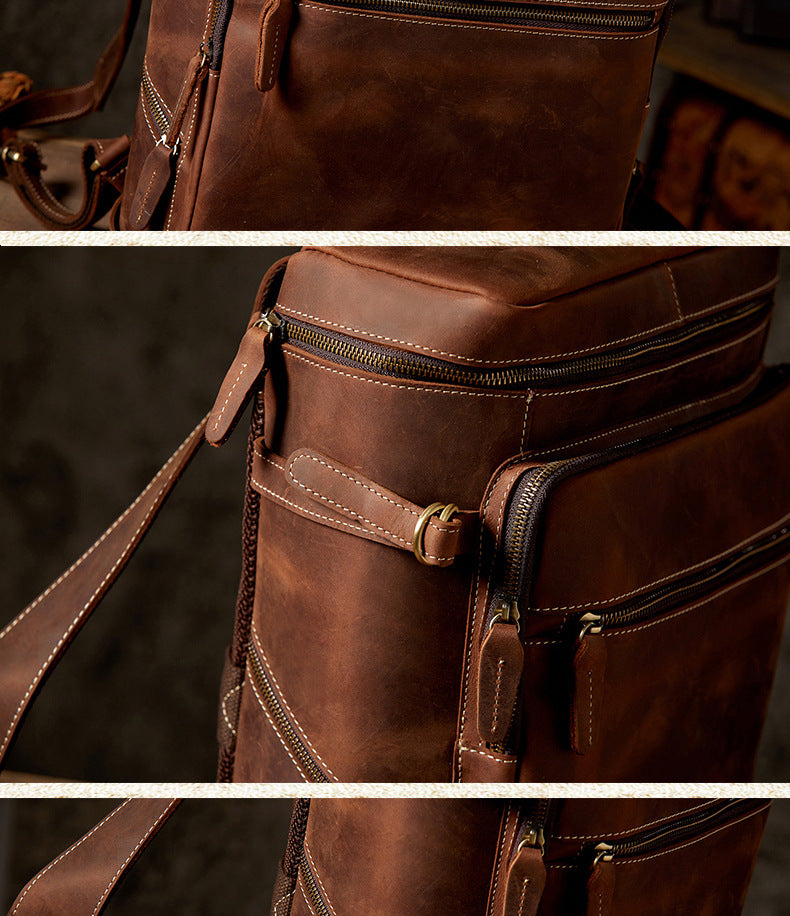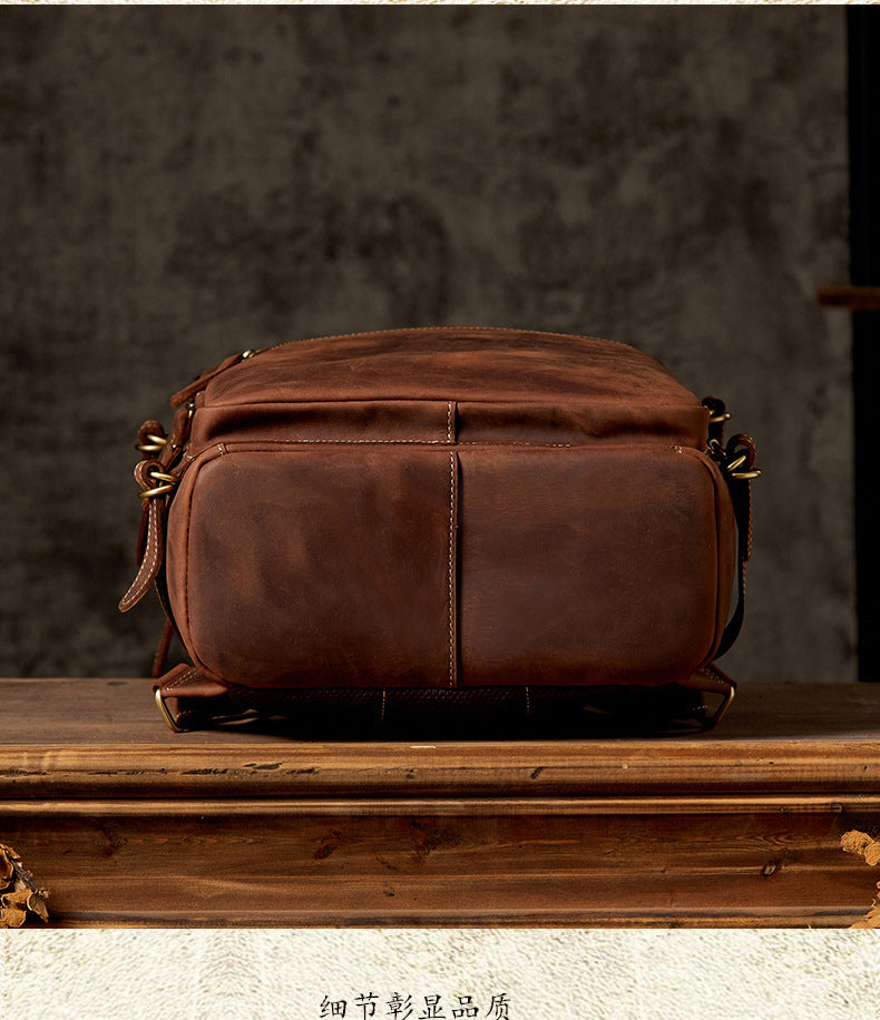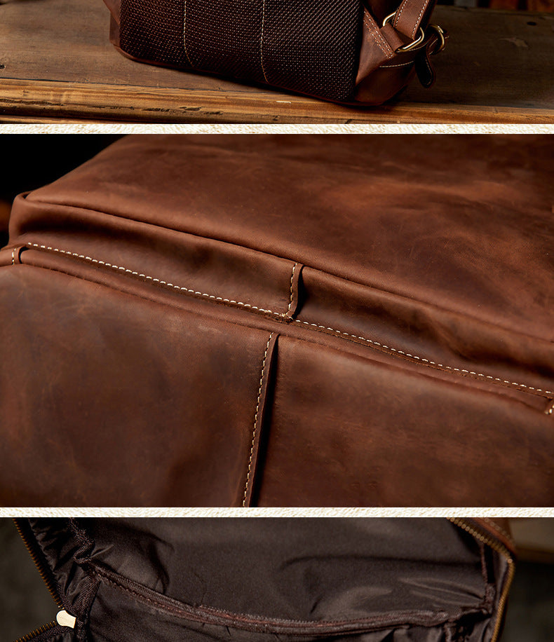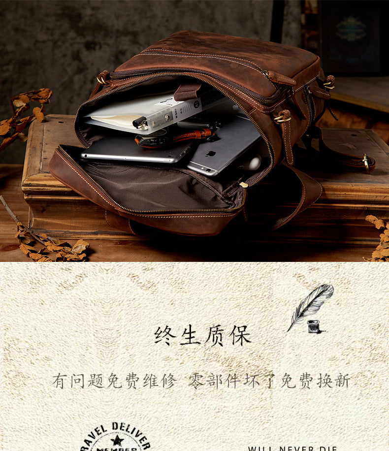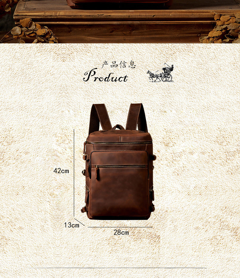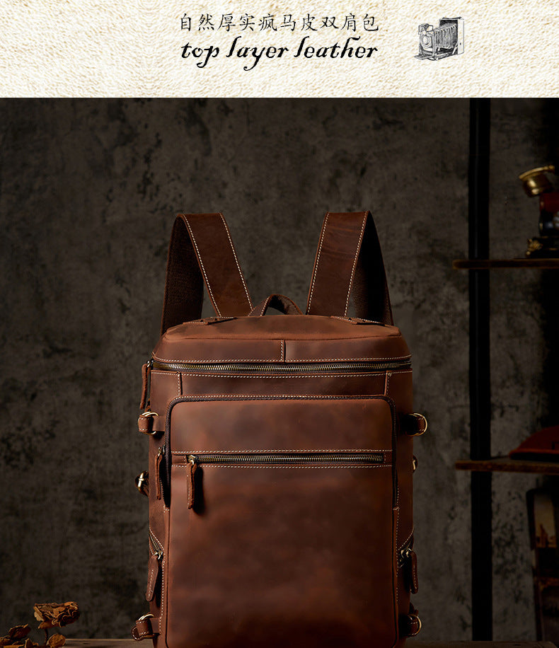 メンズリュック 牛革本革製 クレイジー・ホース 手作業 大容量カジュアル レトロファッション男性用旅行かばん