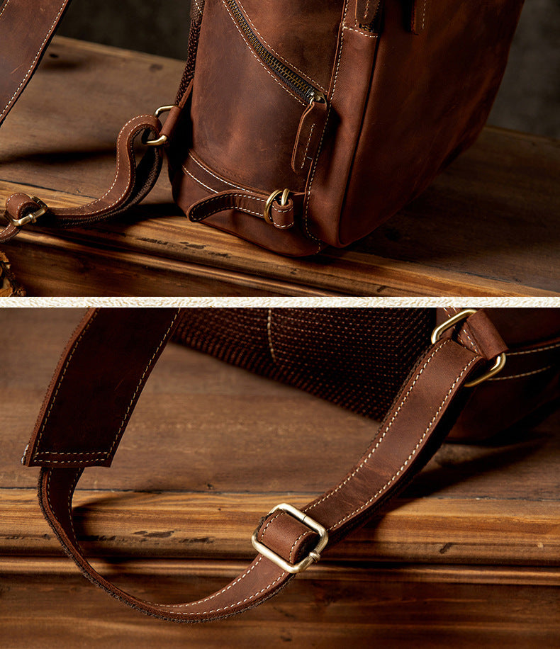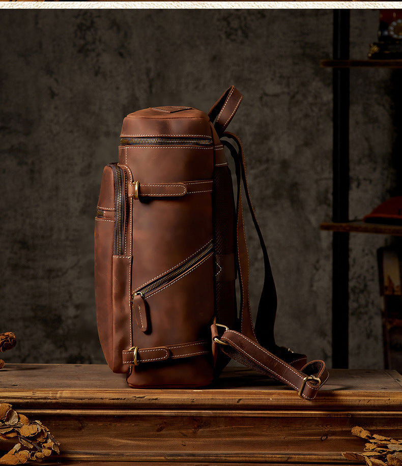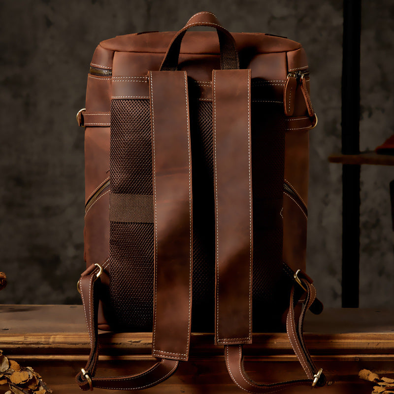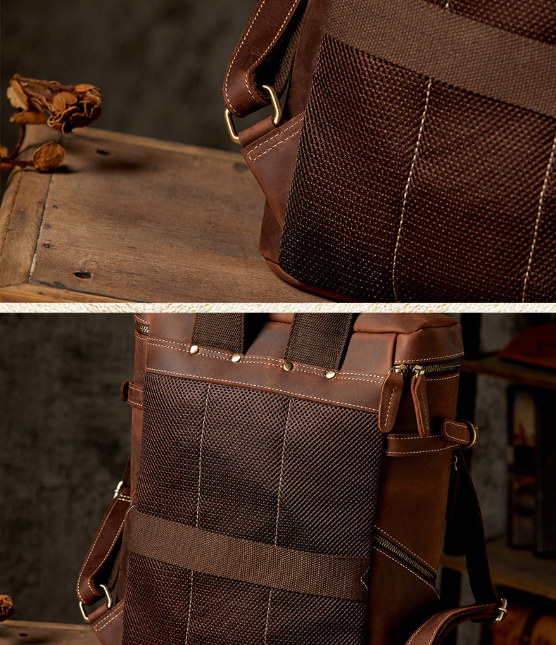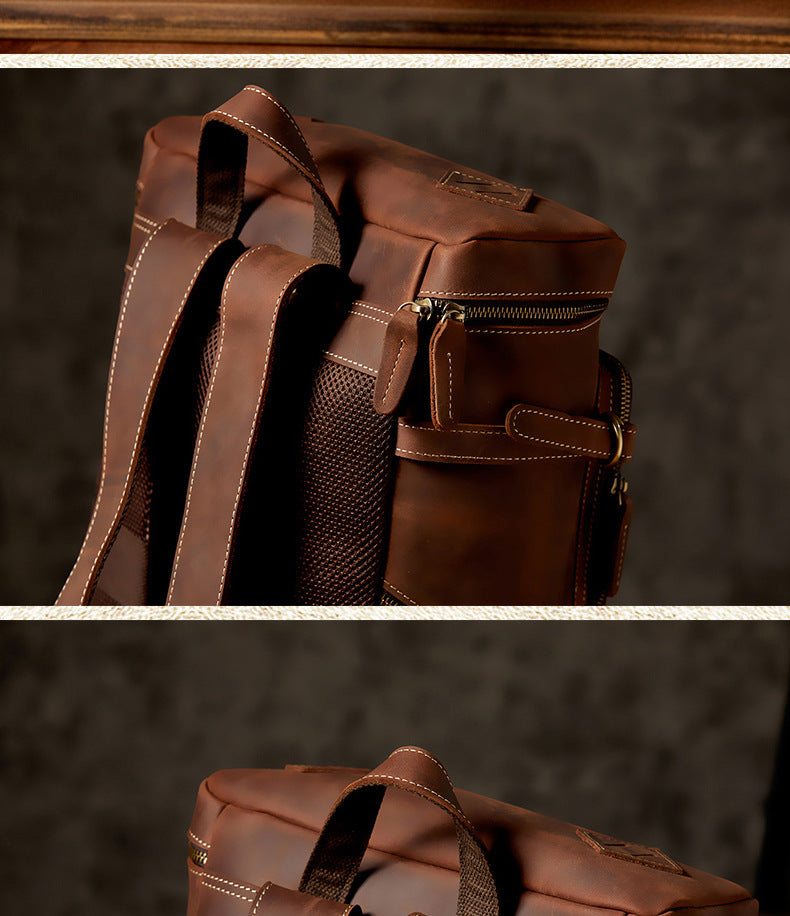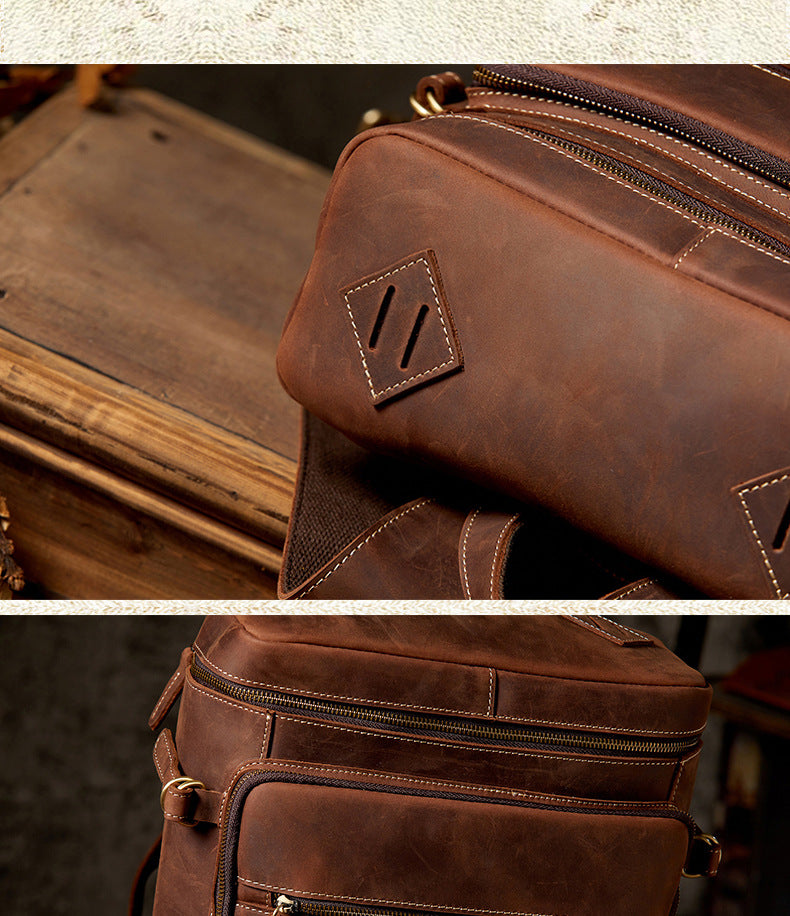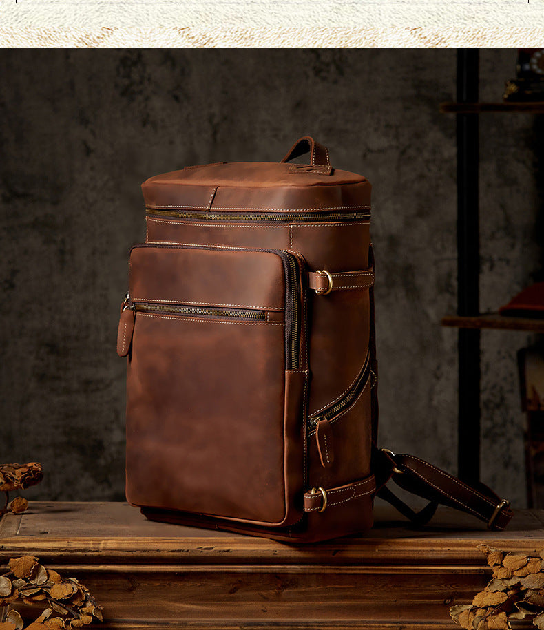 メンズリュック 牛革本革製 クレイジー・ホース 手作業 大容量カジュアル レトロファッション男性用旅行かばん