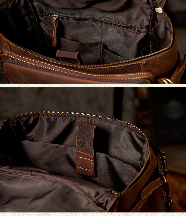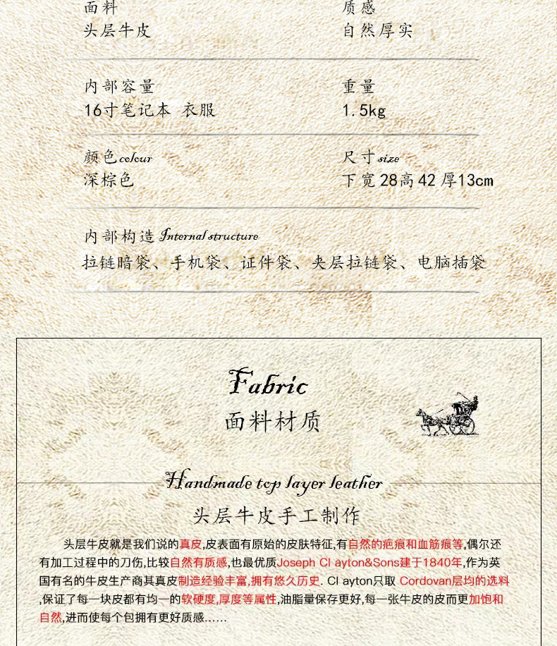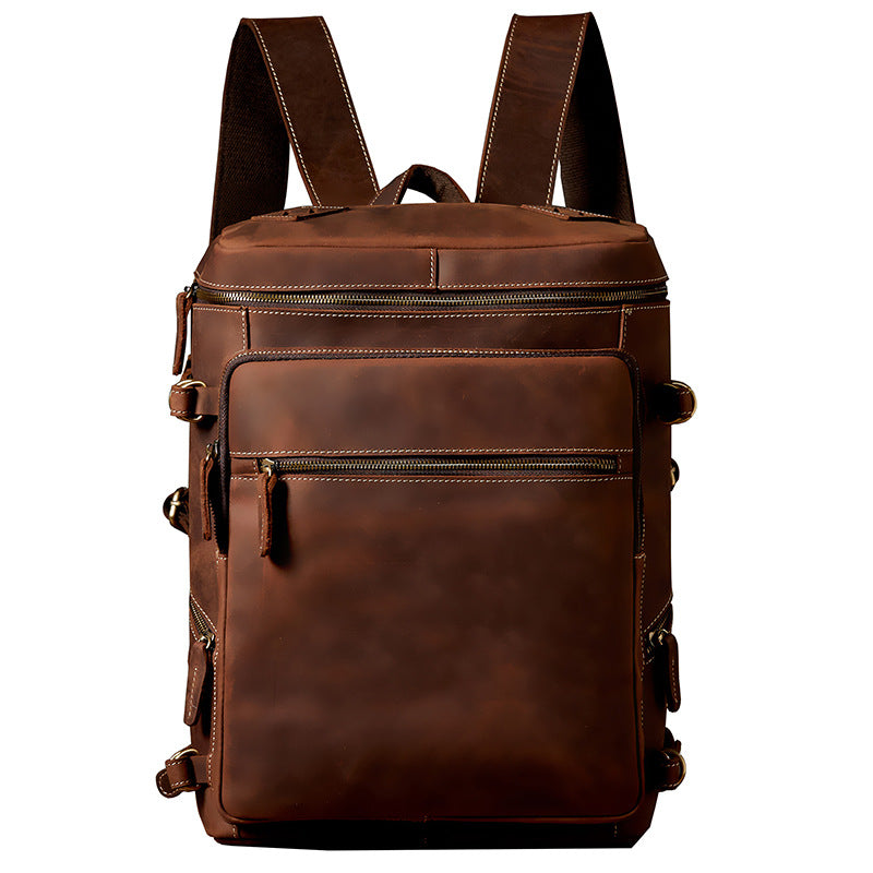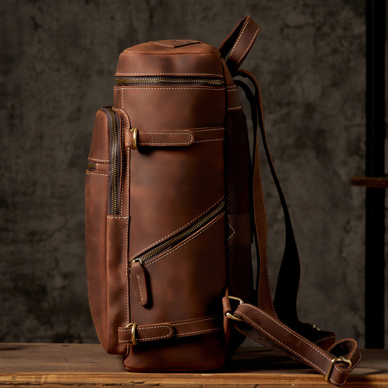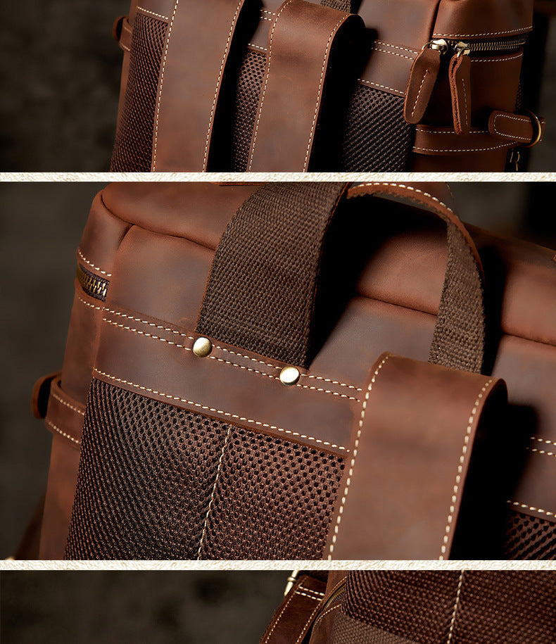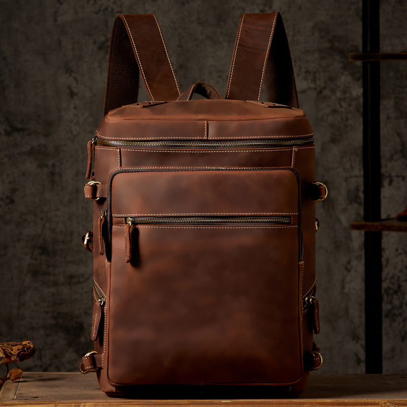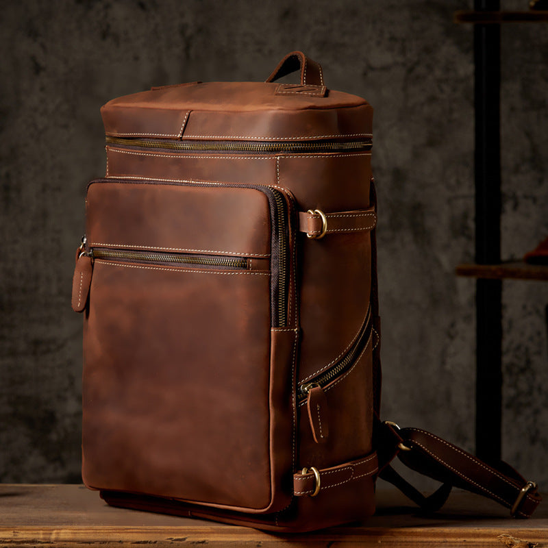 メンズリュック 牛革本革製 クレイジー・ホース 手作業 大容量カジュアル レトロファッション男性用旅行かばん