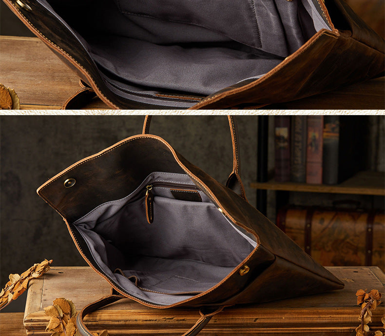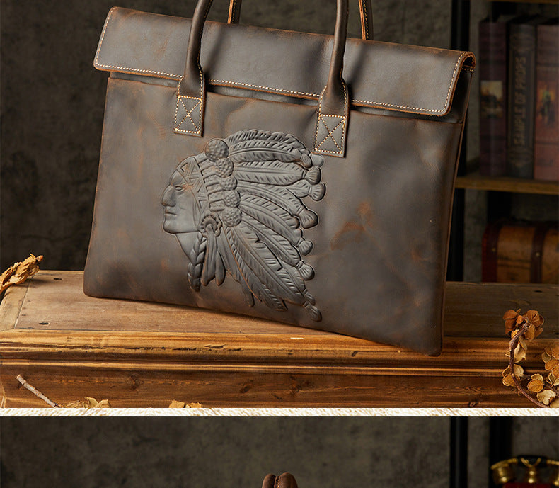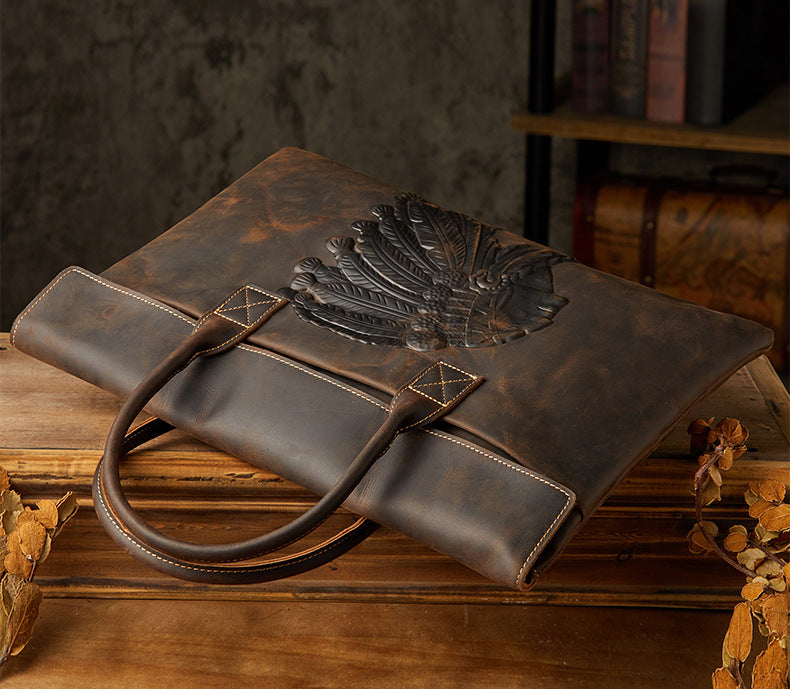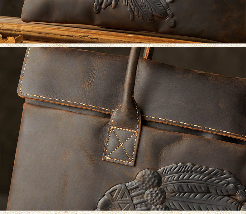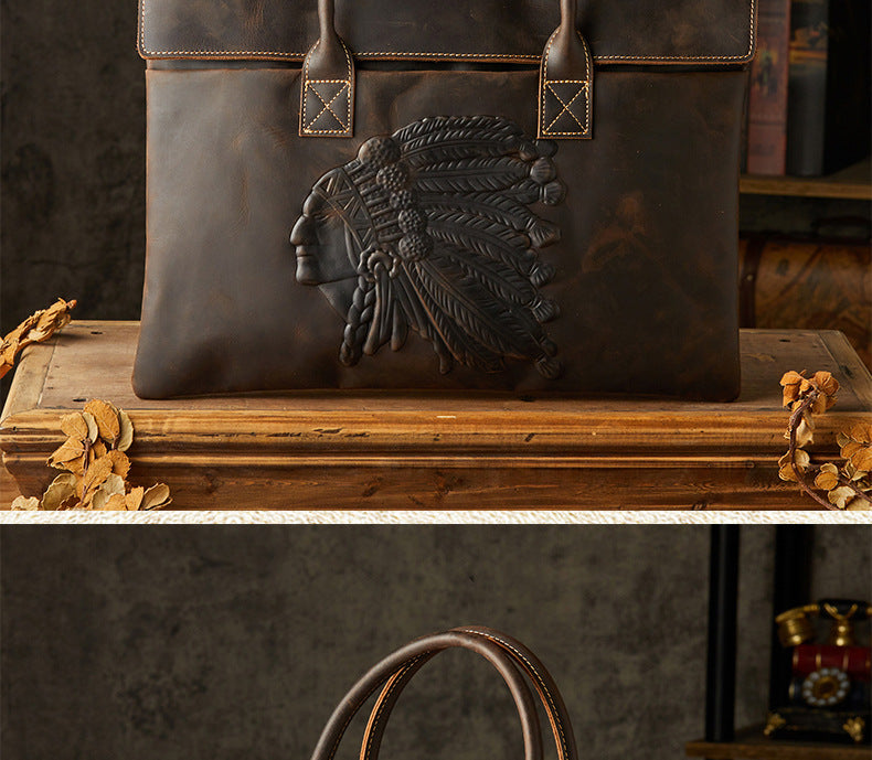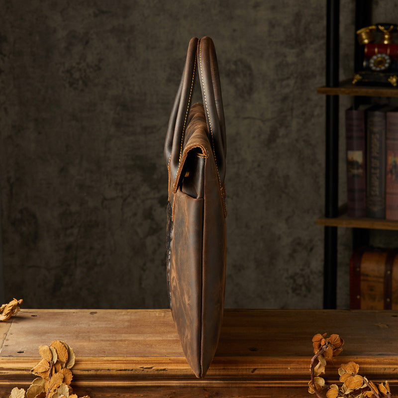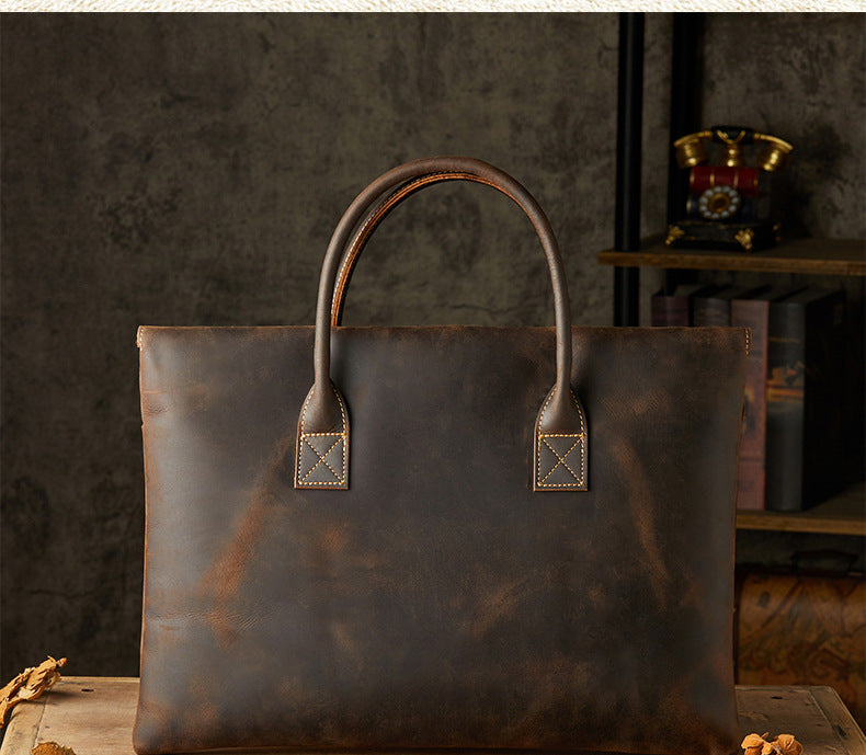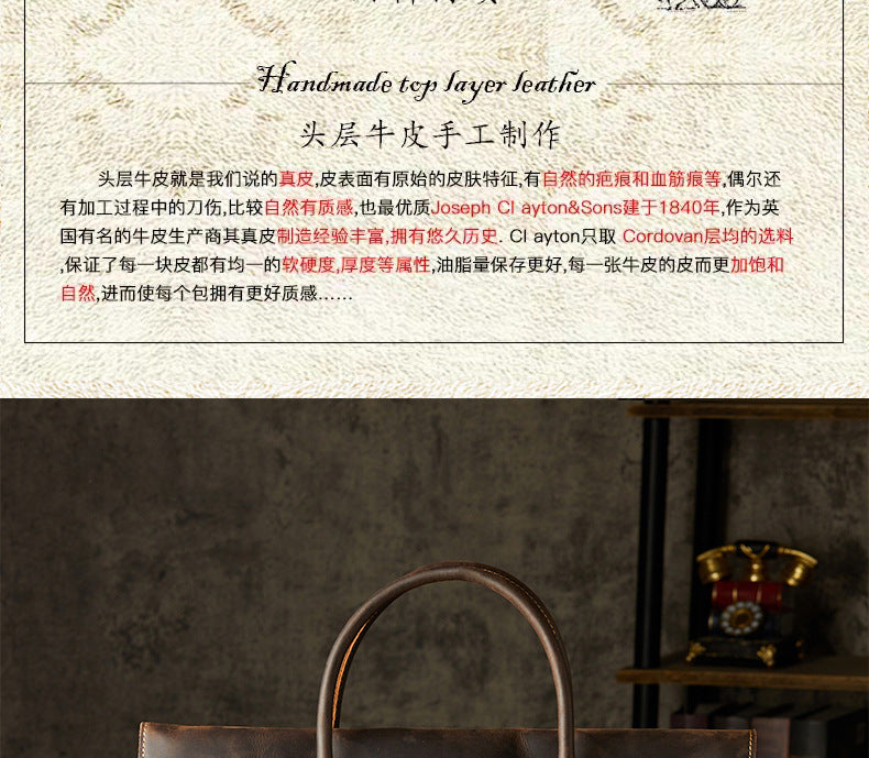 メンズ手提げかばんハンドバッグ手作業牛皮クレイジー・ホース 出張携帯便利ビジネスカジュアル男性用ブリーフケース薄型パソコンバッグ