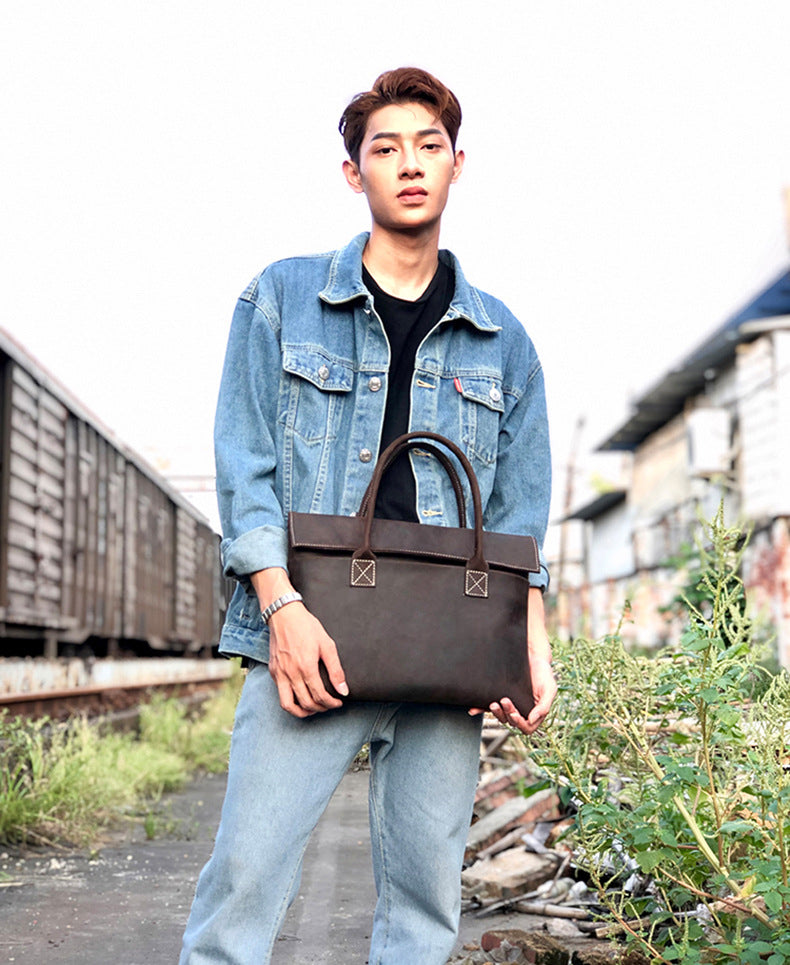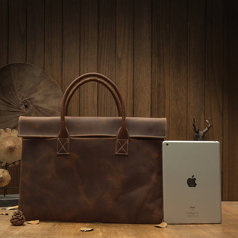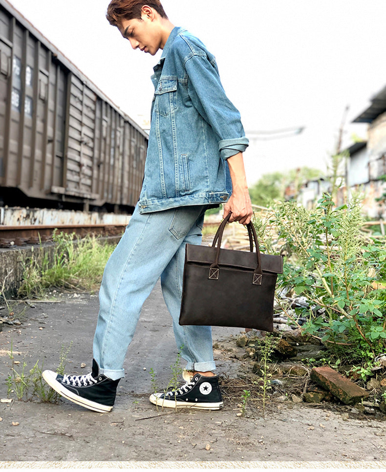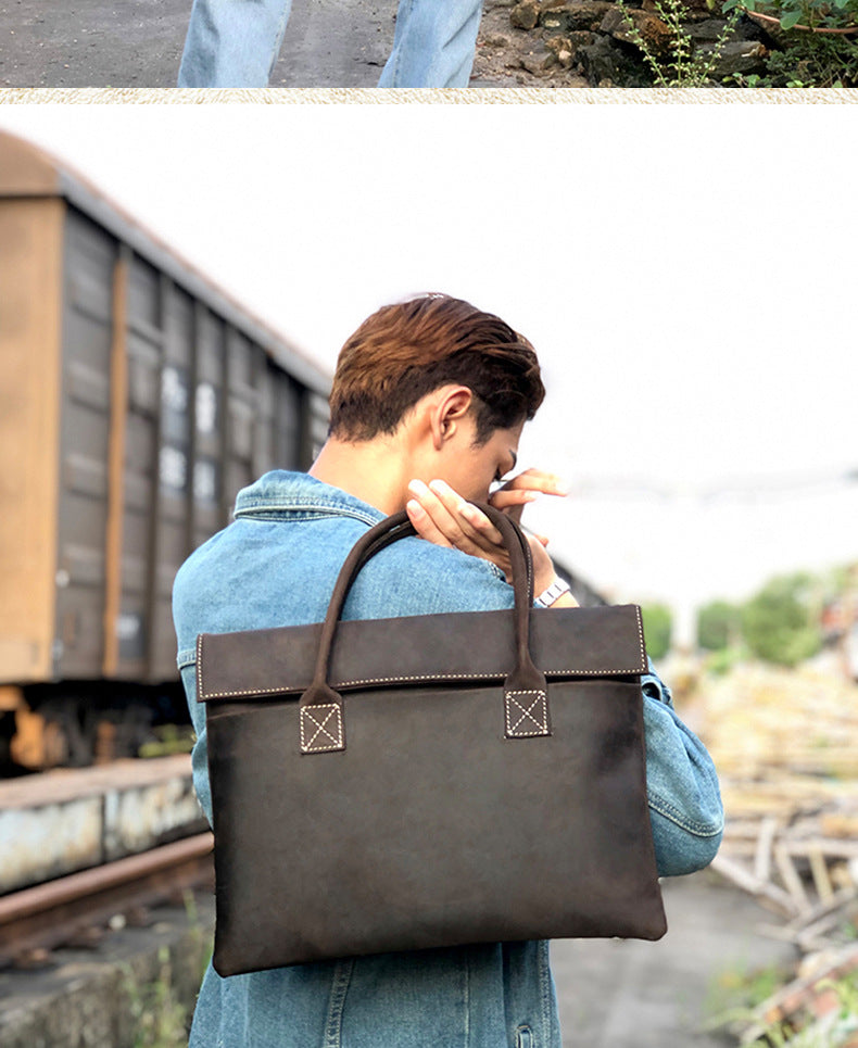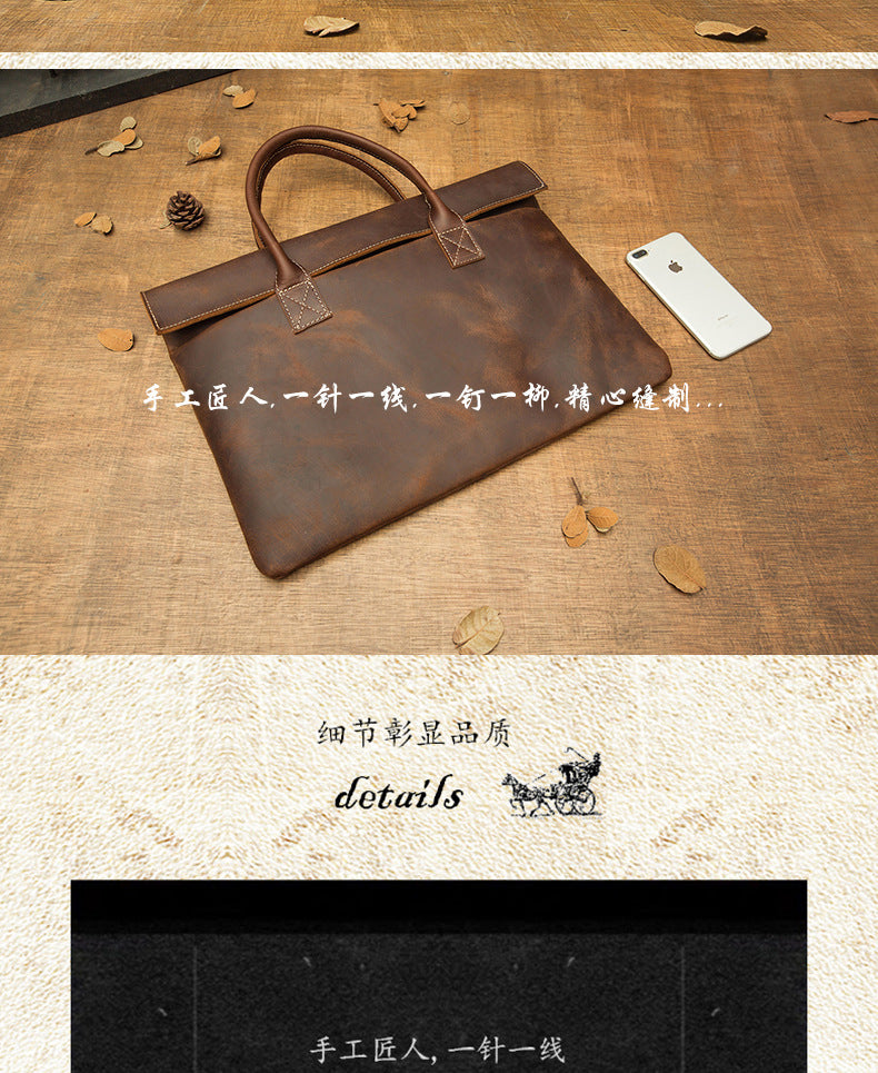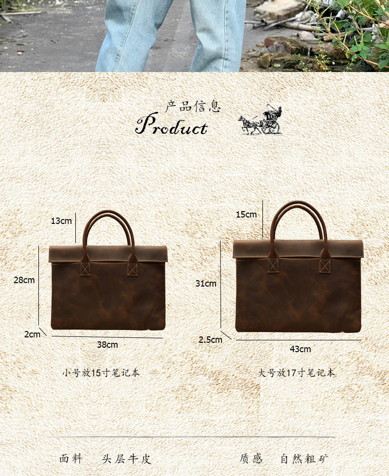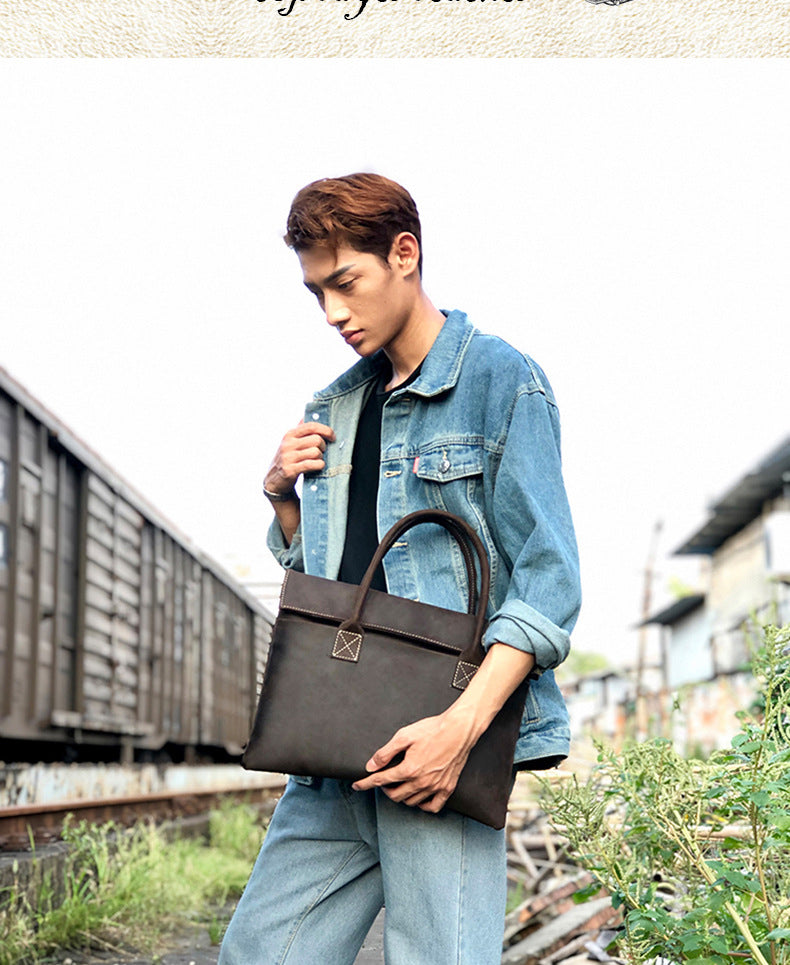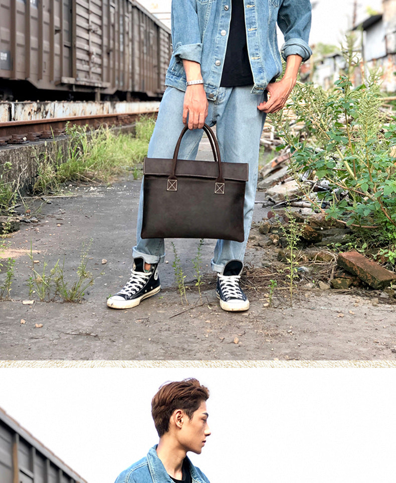 メンズ手提げかばん ハンドバッグ 手作業 韩国ファッション 牛革本革製 カジュアルビジネス用ブリーフケース薄型パソコンバッグ