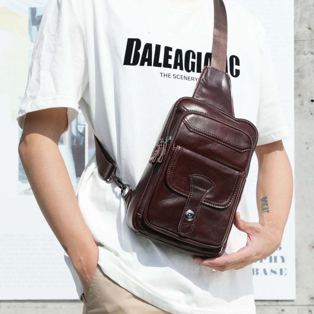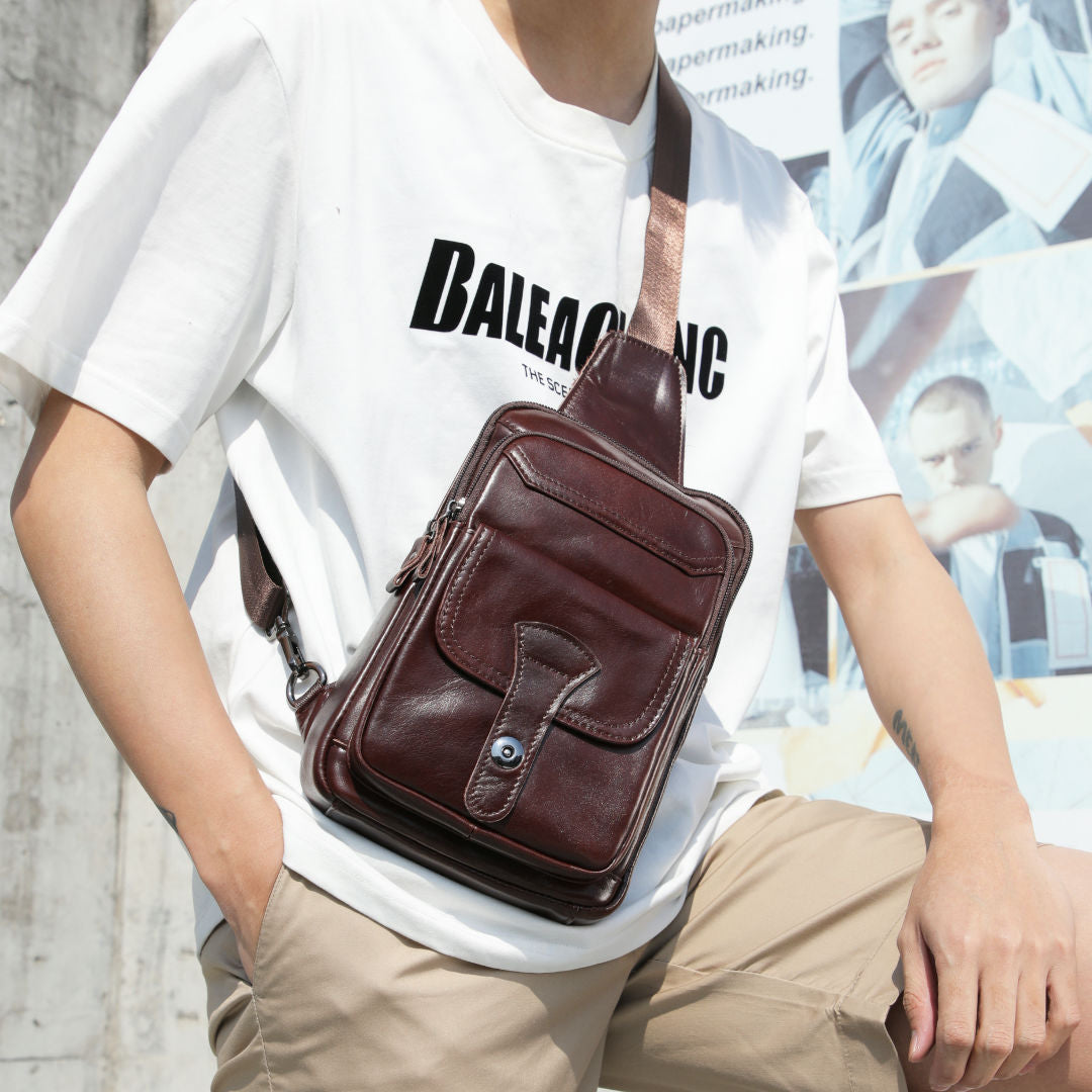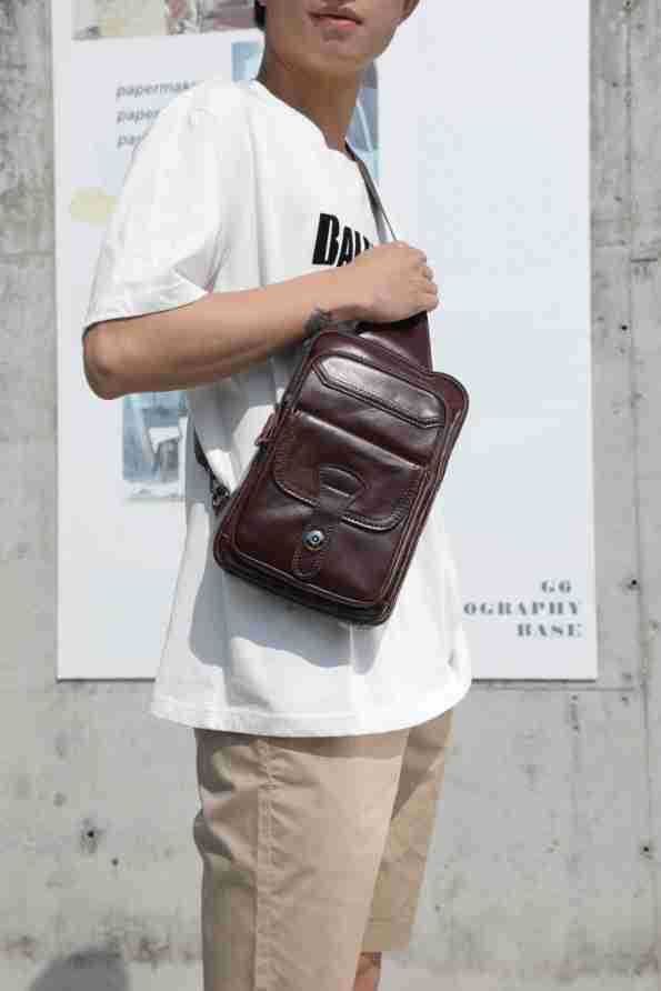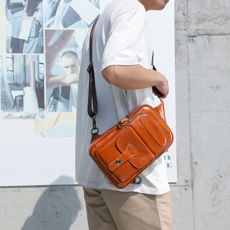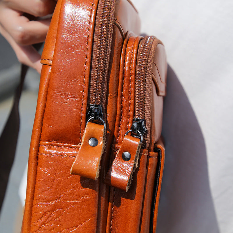 メンズ斜めがけバッグ 牛革レトロ 多機能ファッション男性用ショルダーバッグ