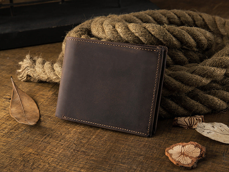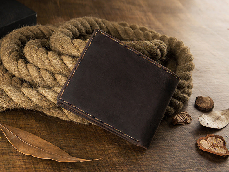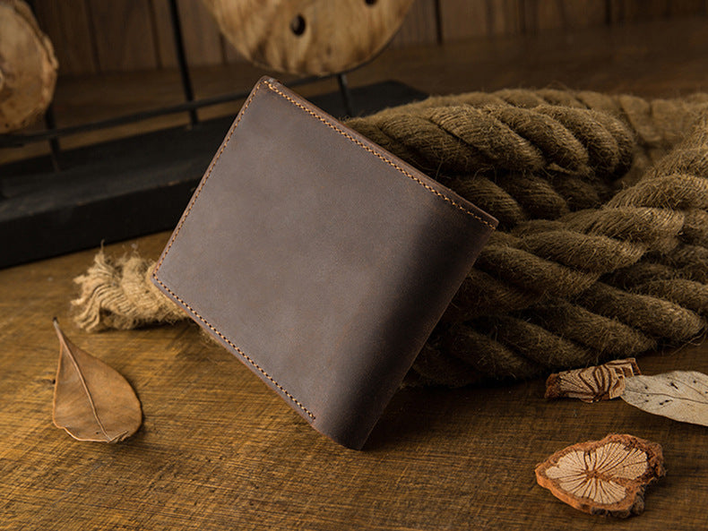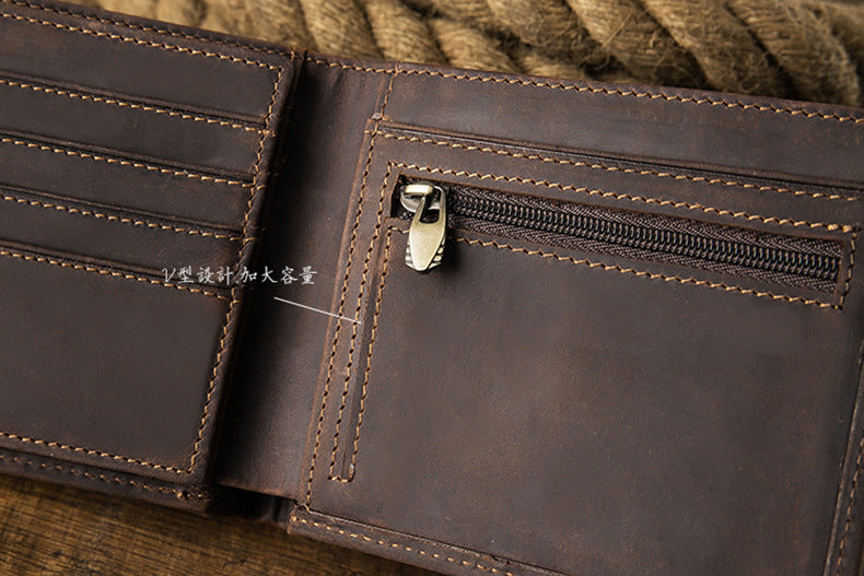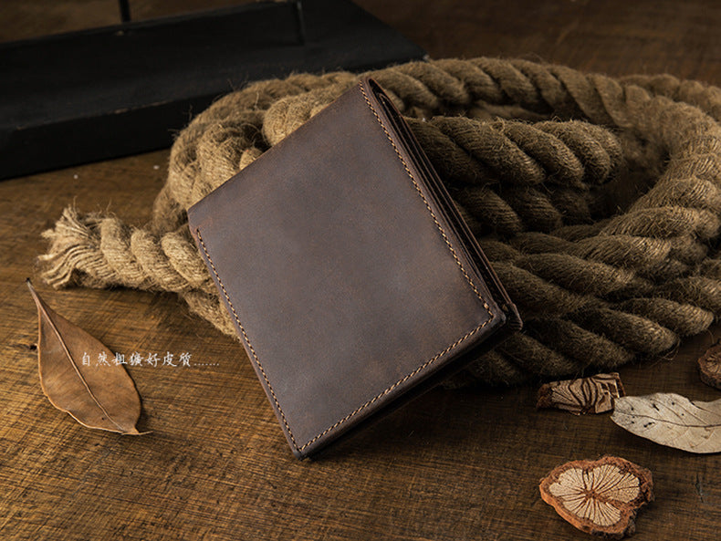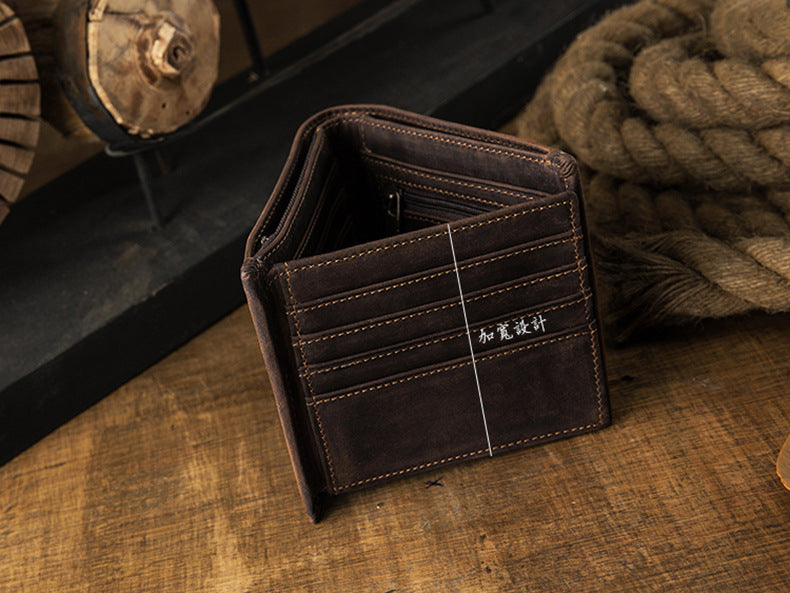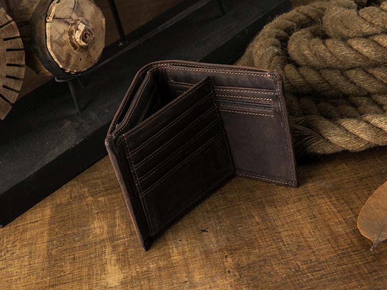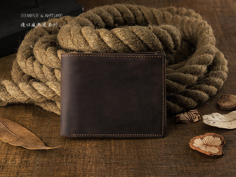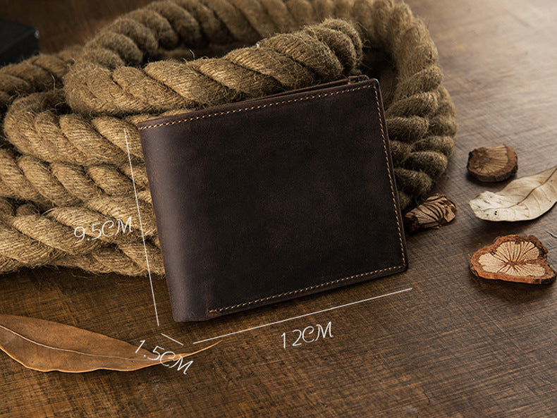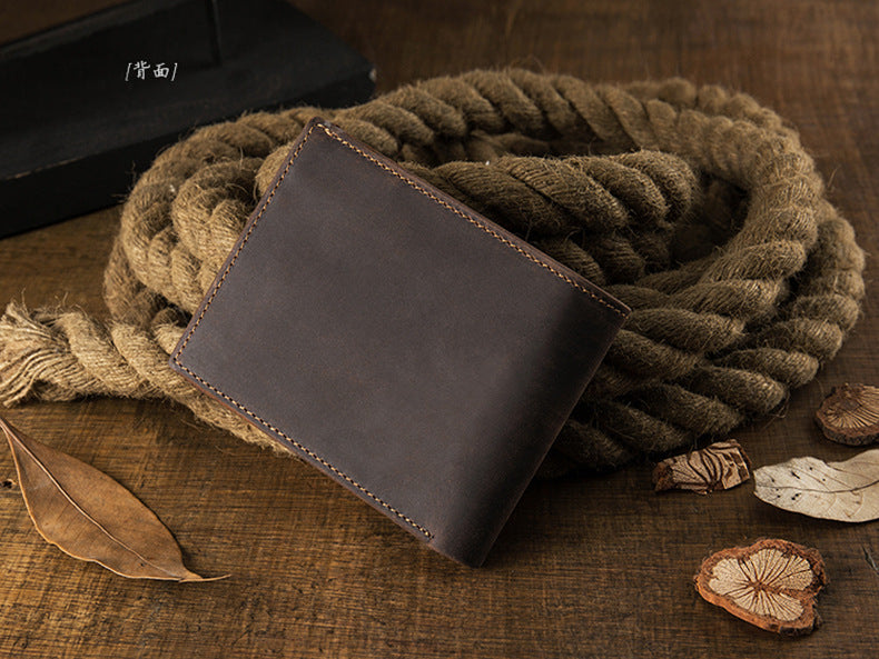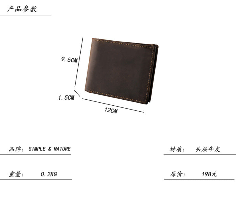 メンズ短財布 牛皮本革製 クレイジー・ホース オリジナル 手作業 レトロ 韩国ファッション男性用ウォレット