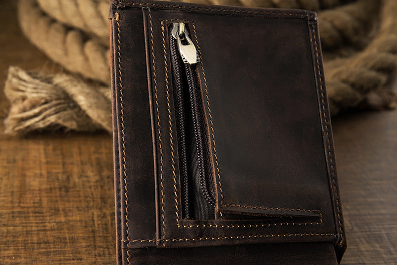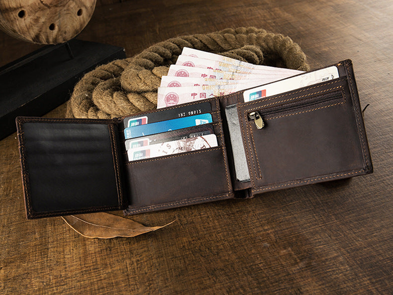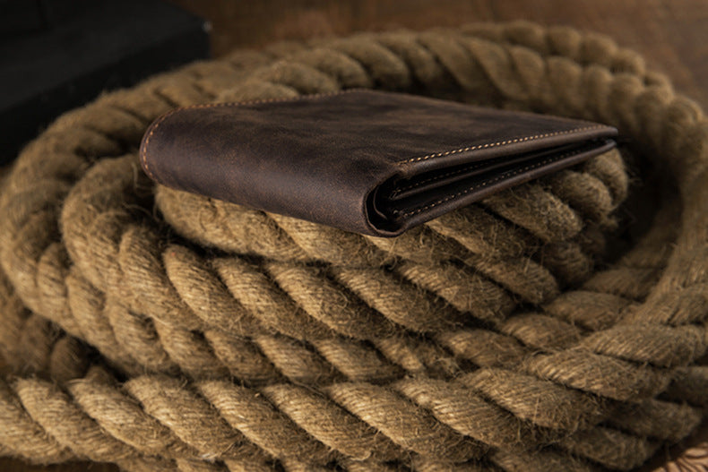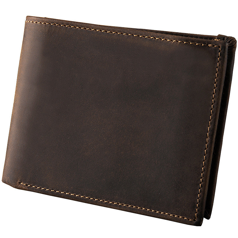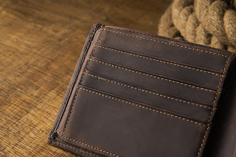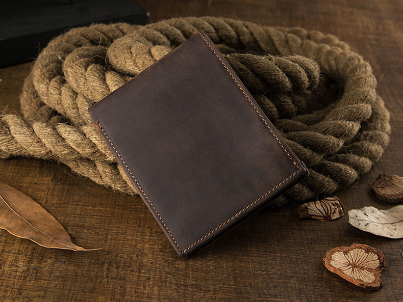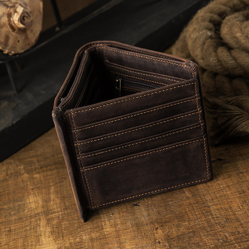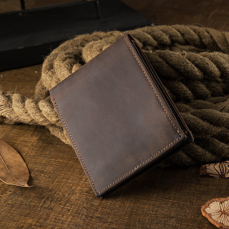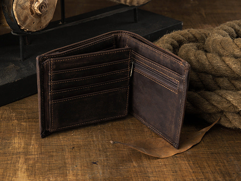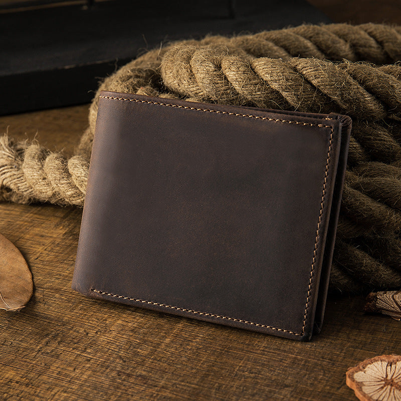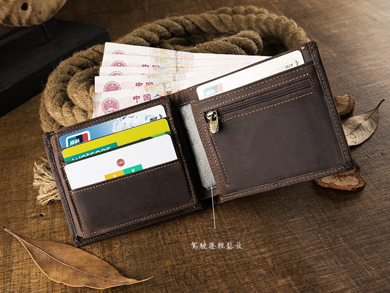 メンズ短財布 牛皮本革製 クレイジー・ホース オリジナル 手作業 レトロ 韩国ファッション男性用ウォレット