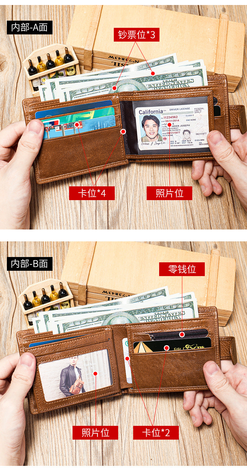 メンズ短財布 牛皮rfidカード入れ ビジネス大容量 クラッチバッグ レトロ財布