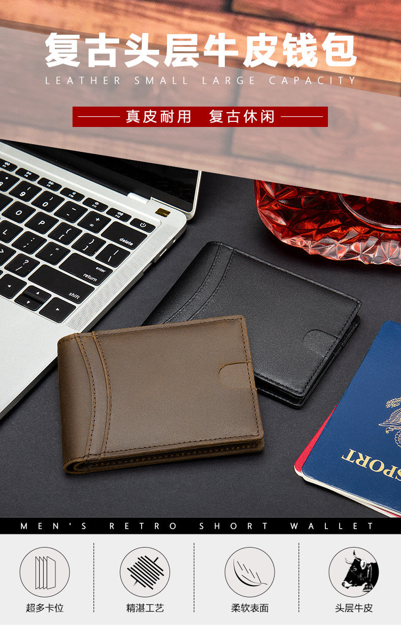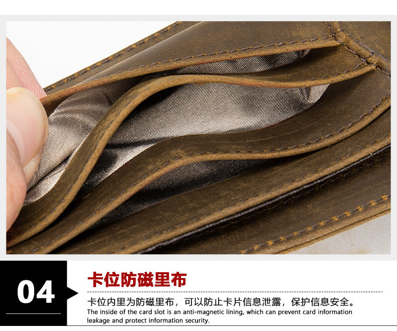 メンズ財布牛皮本革製レトロrfid盗難防止ブラシカードバッグ男性用ウォレット