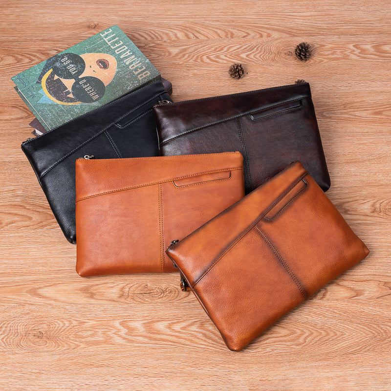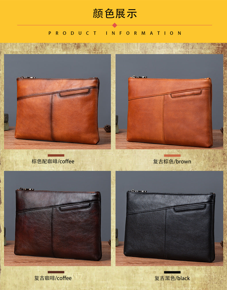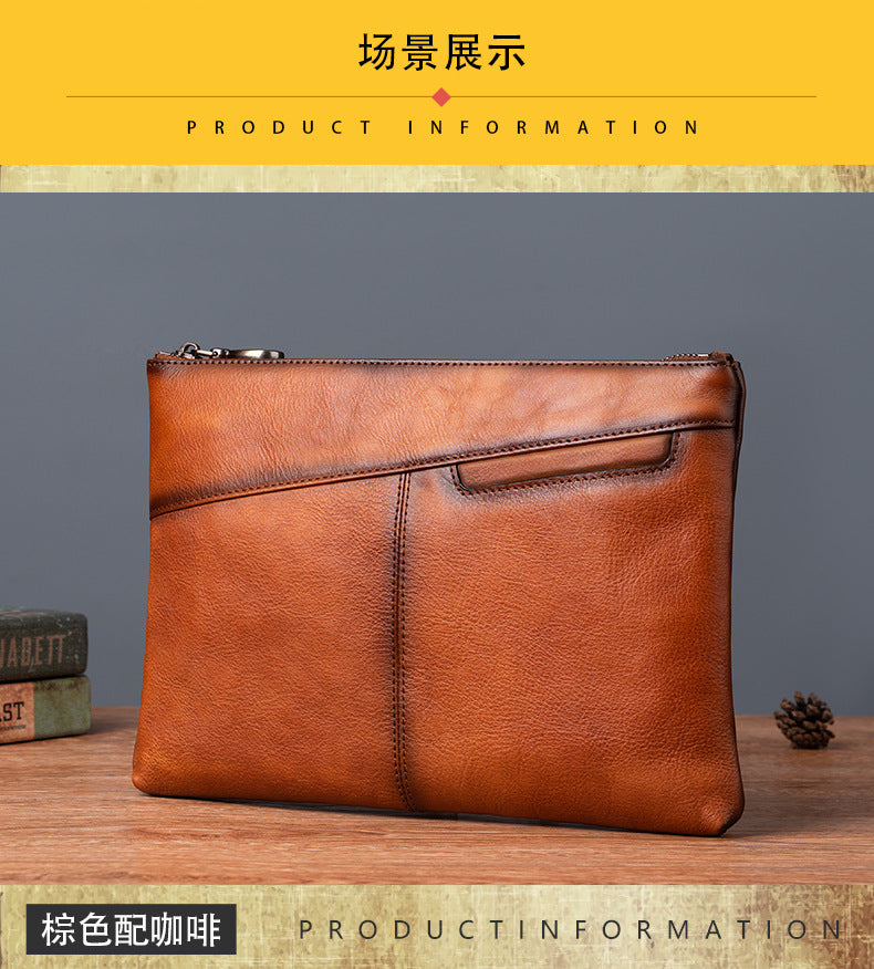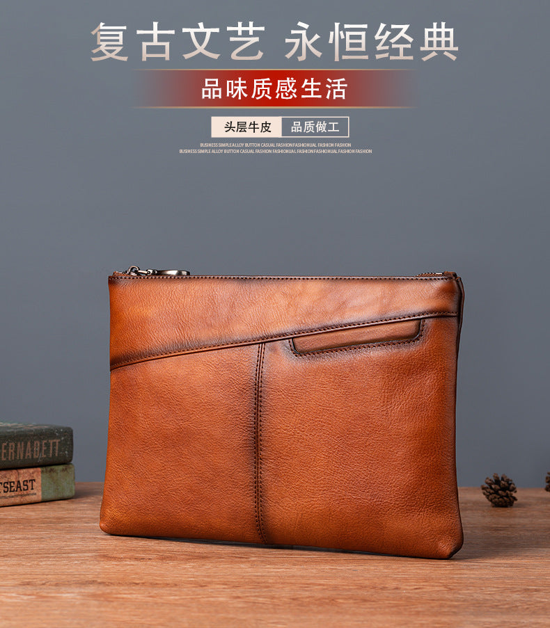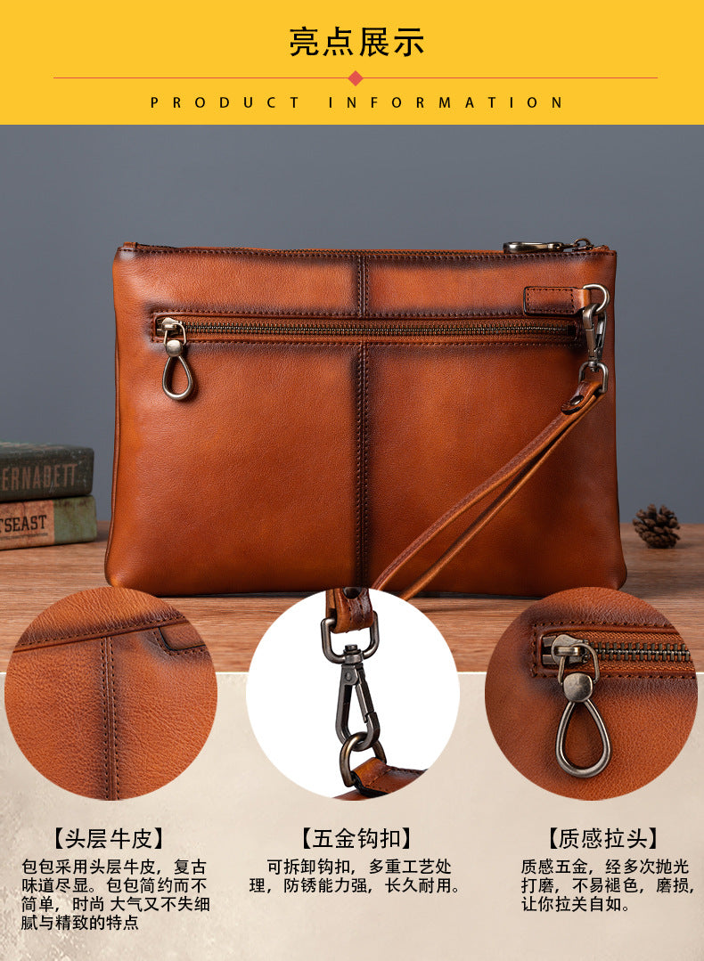 メンズ財布牛革本革製クラッチバッグレトロカジュアル男性用ハンドバッグ