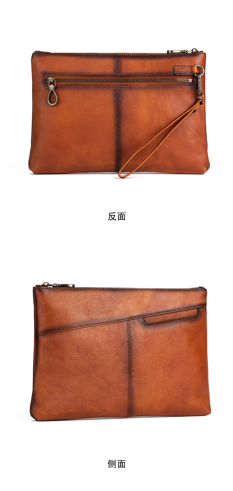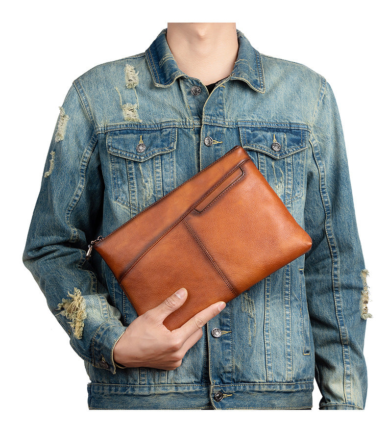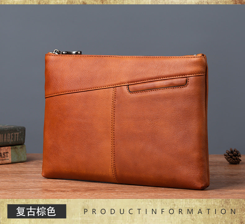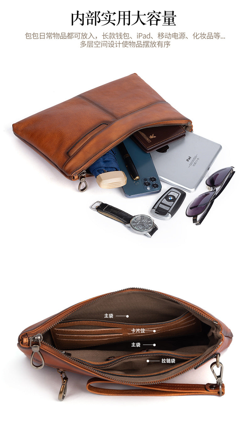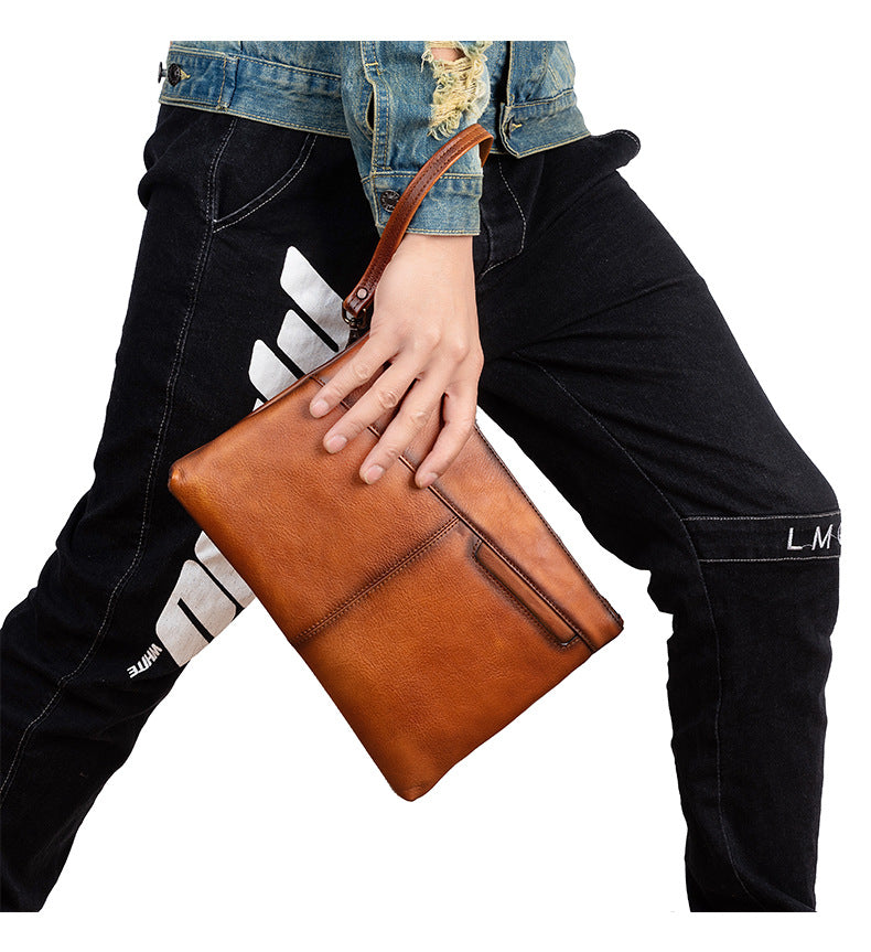 メンズ財布牛革本革製クラッチバッグレトロカジュアル男性用ハンドバッグ