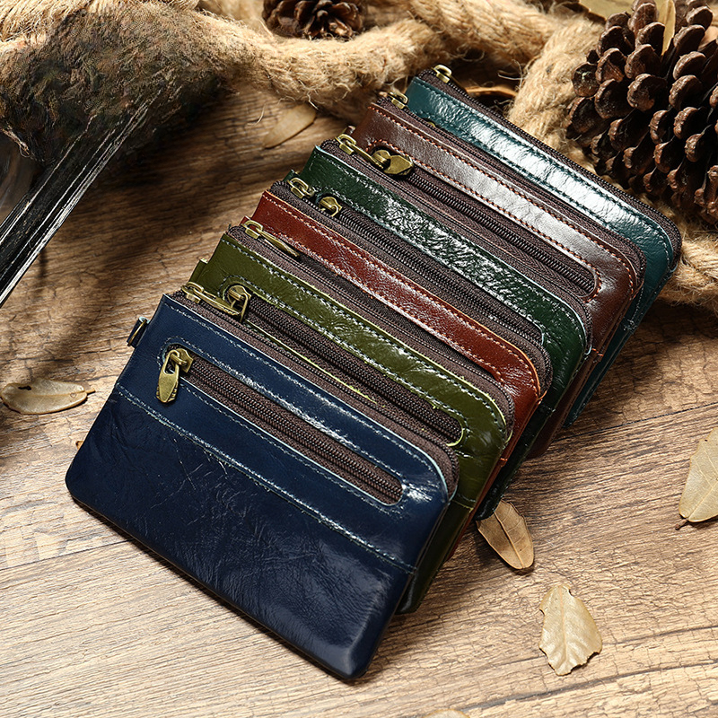 メンズ財布 牛皮 レトロ カジュアル ファスナー大容量 男性用ウォレットコインバッグ