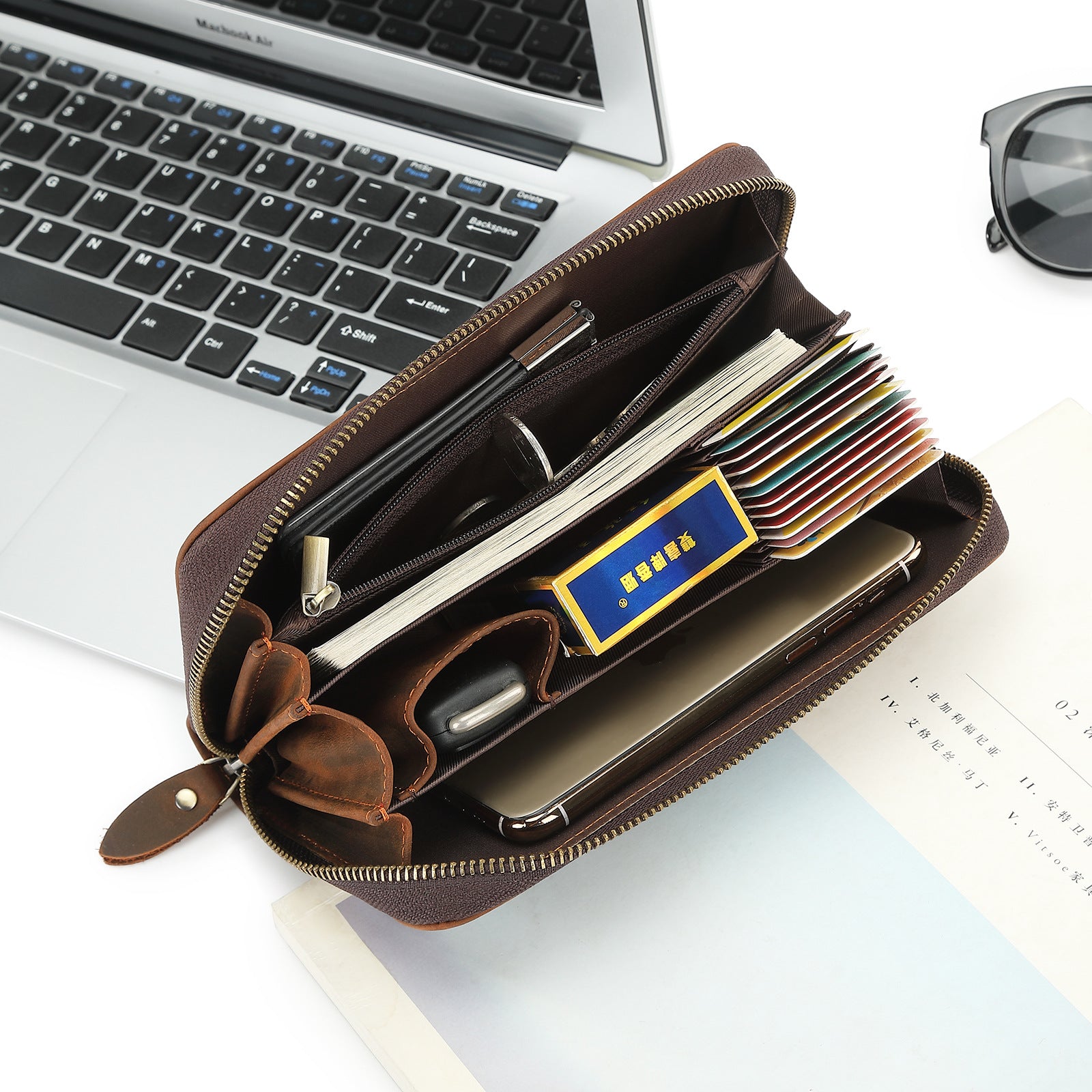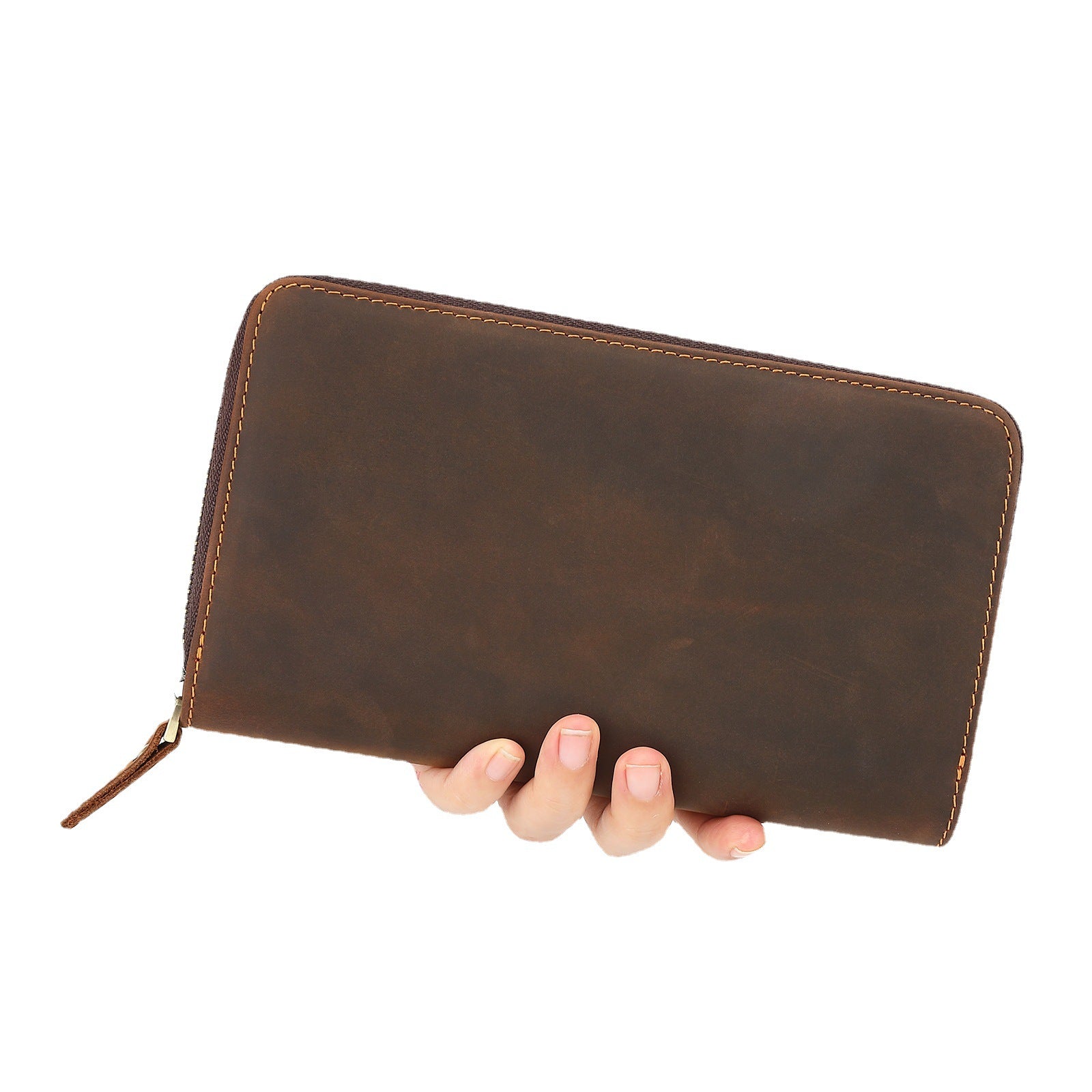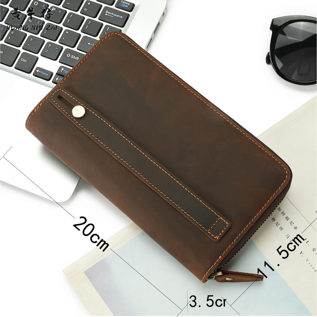 メンズ長財布牛革大容量レトロシンプル男性用ウォレット