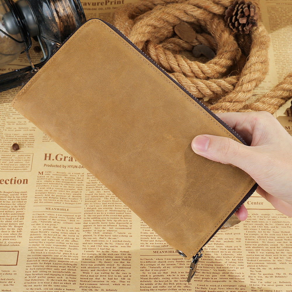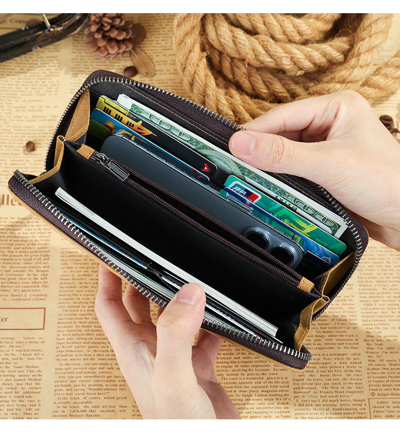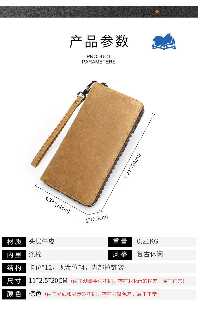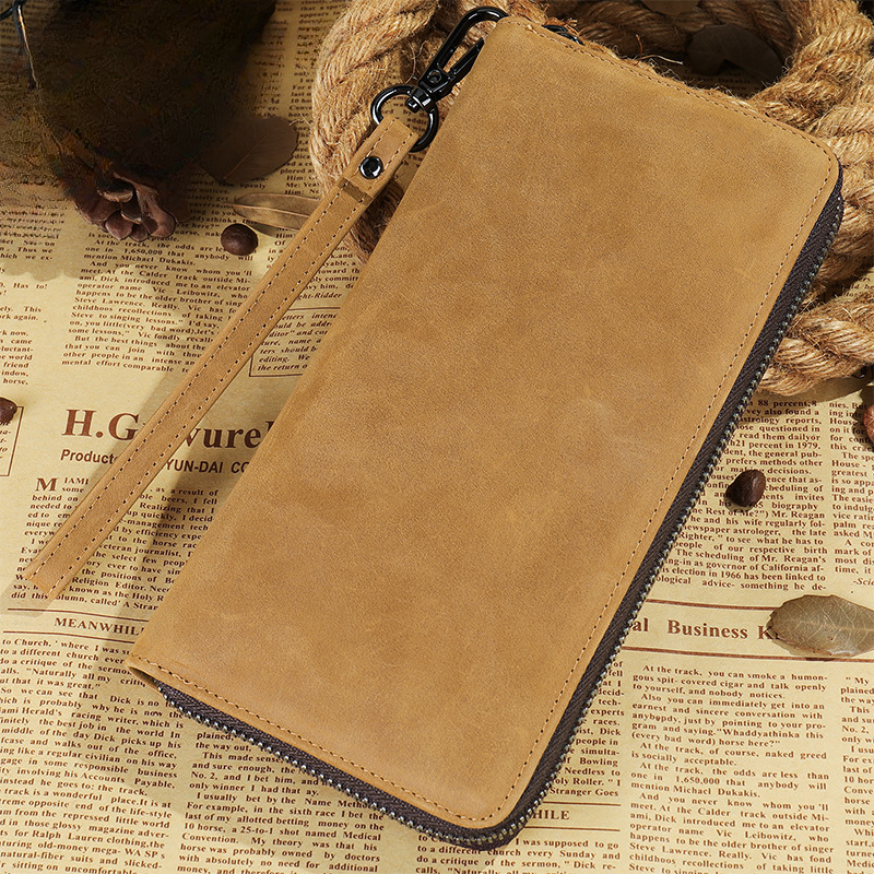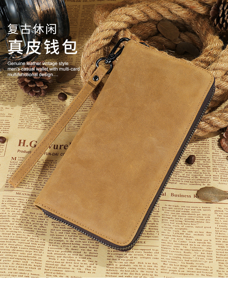 メンズ長財布 手首バッグ 牛皮本革製 高品質 クラッチバッグ 男性用ウォレット