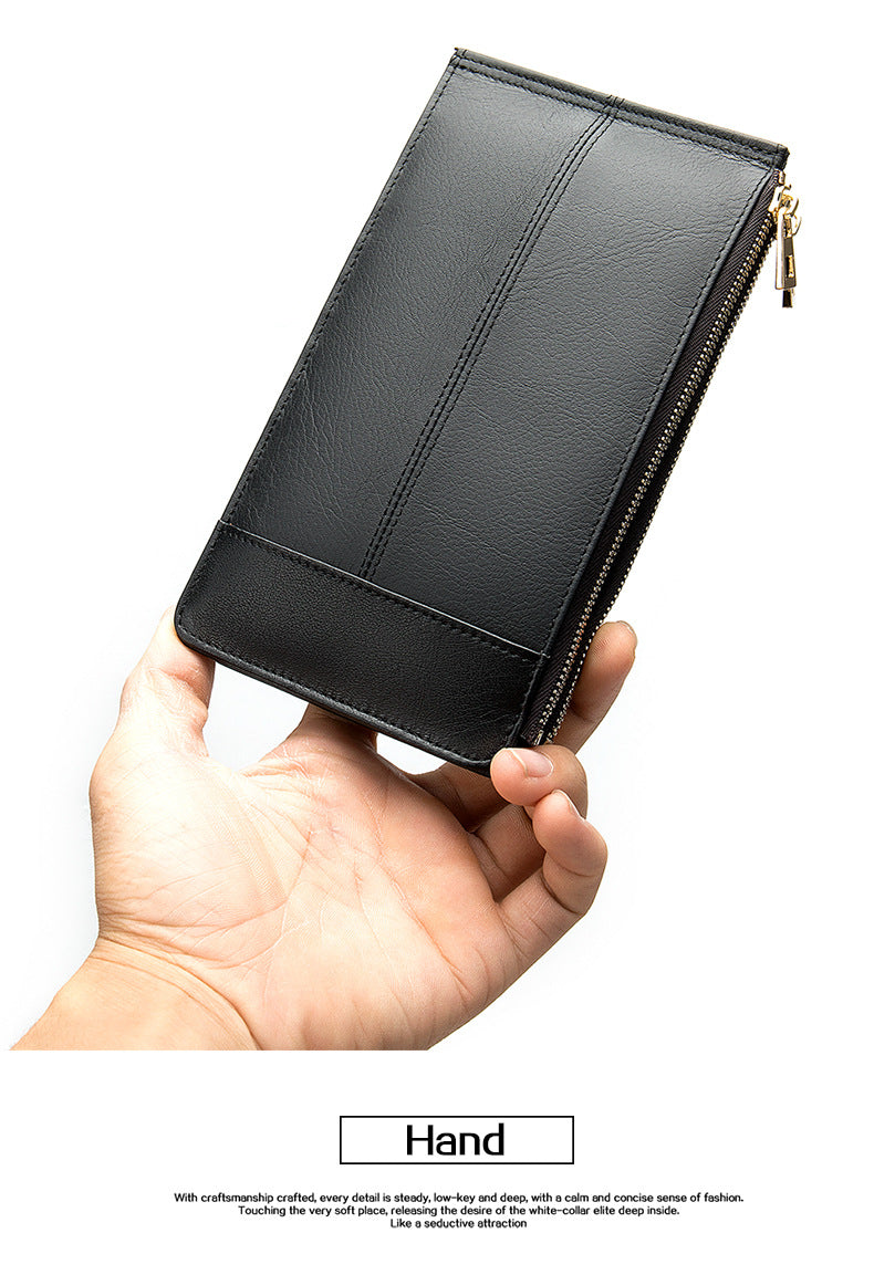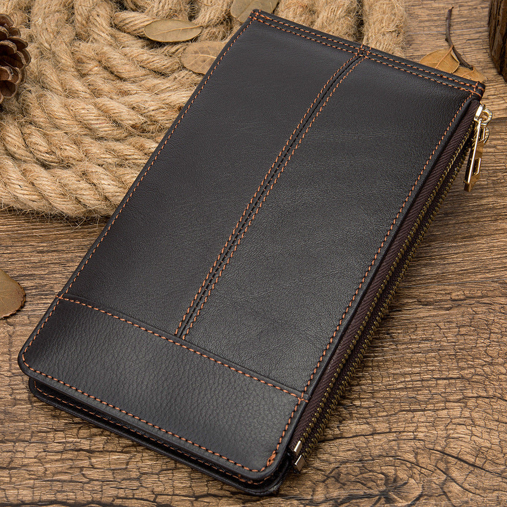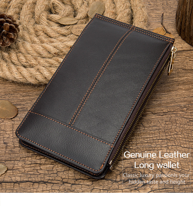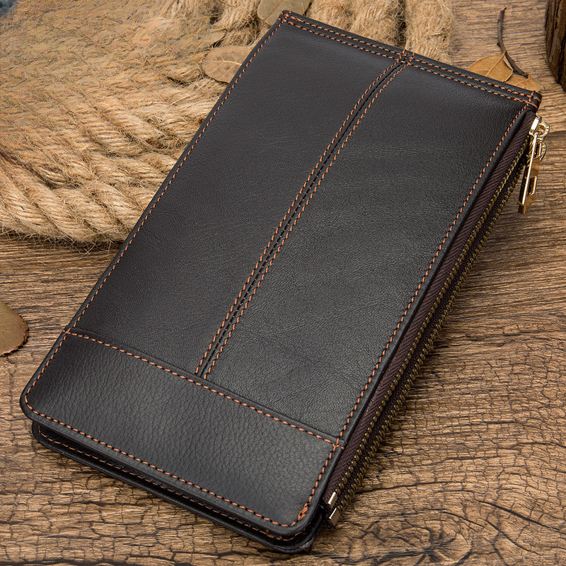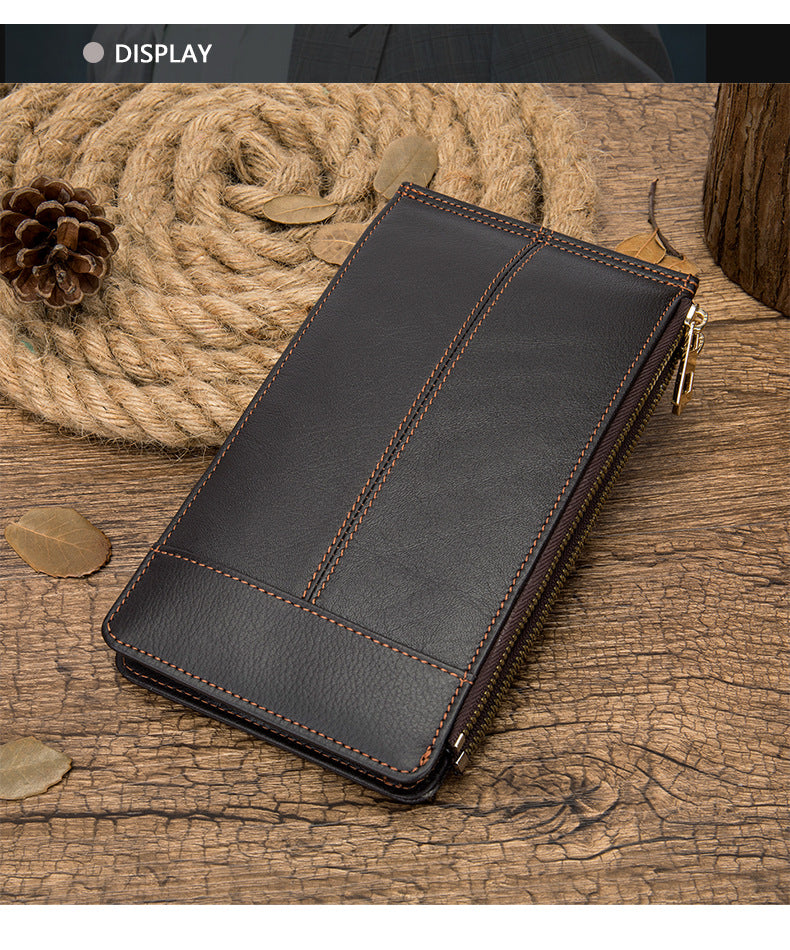 メンズ長財布 牛皮本革製 大容量クラッチバッグ韩国ファッション個性ファスナー男性ウォレット