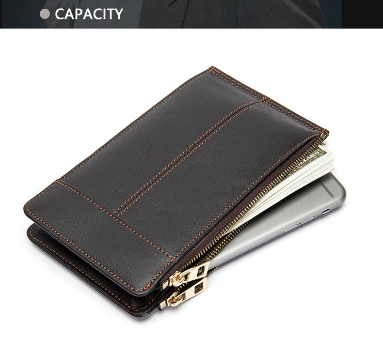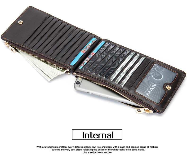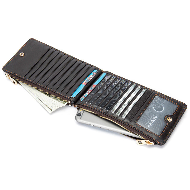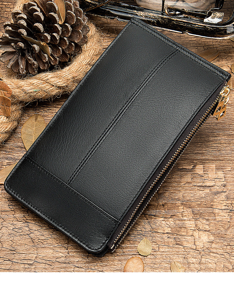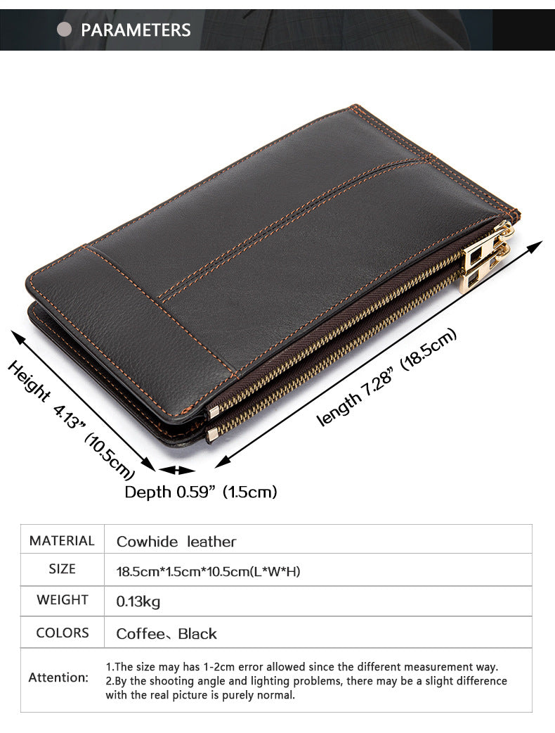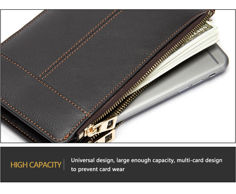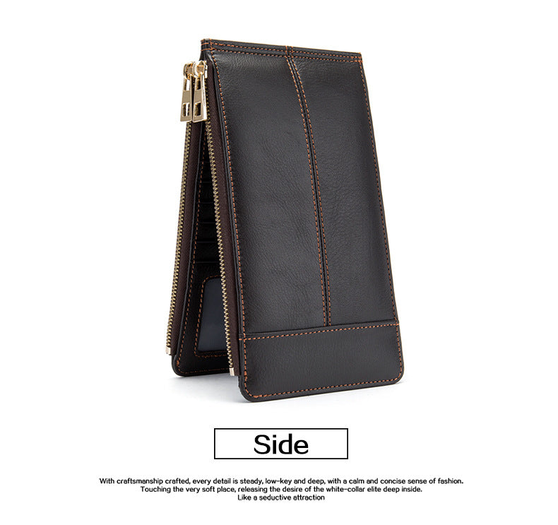メンズ長財布 牛皮本革製 大容量クラッチバッグ韩国ファッション個性ファスナー男性ウォレット