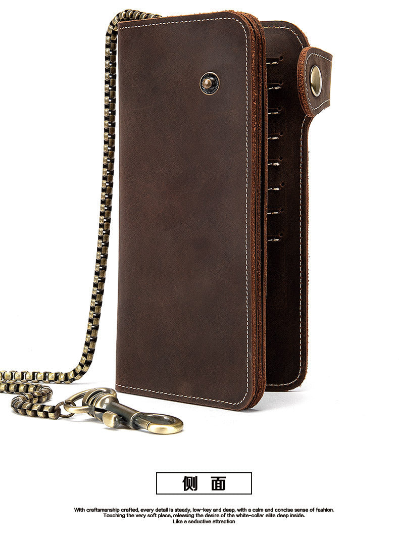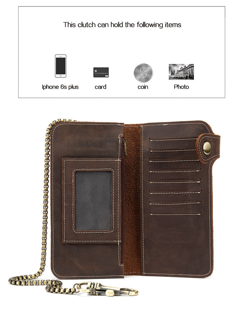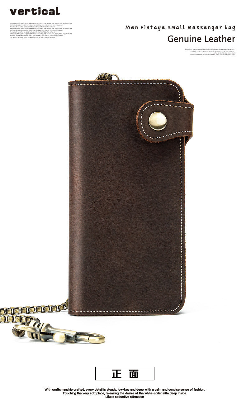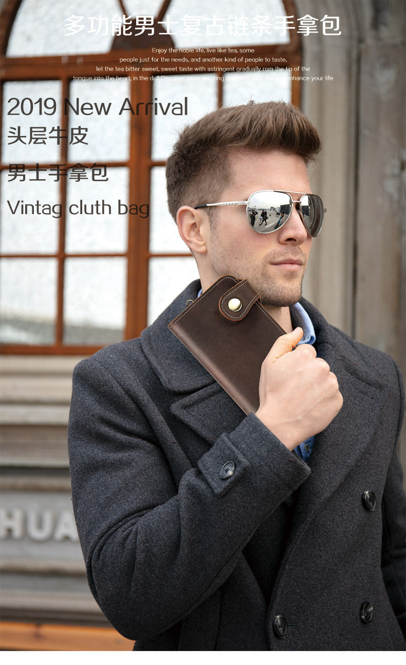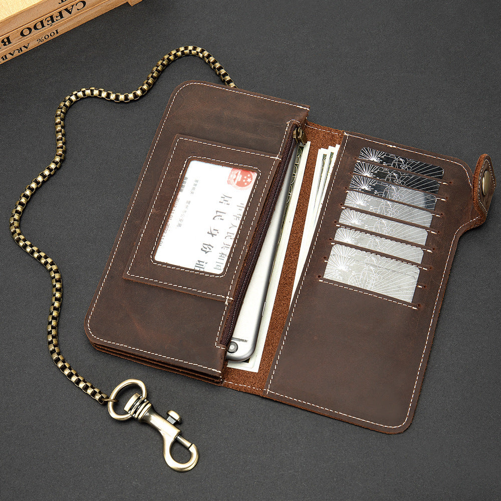 メンズ長財布 牛皮 本革製 チェーン盗難防止 クラッチバッグ 男性用ウォレット