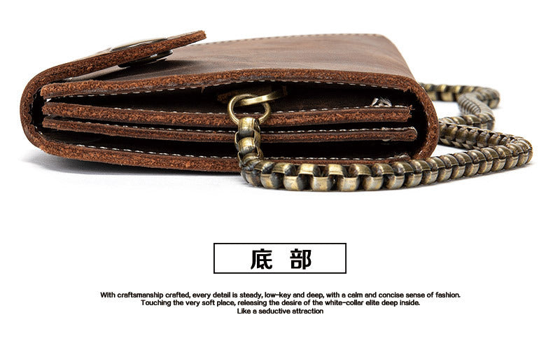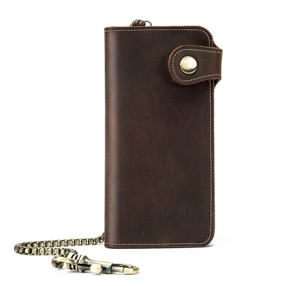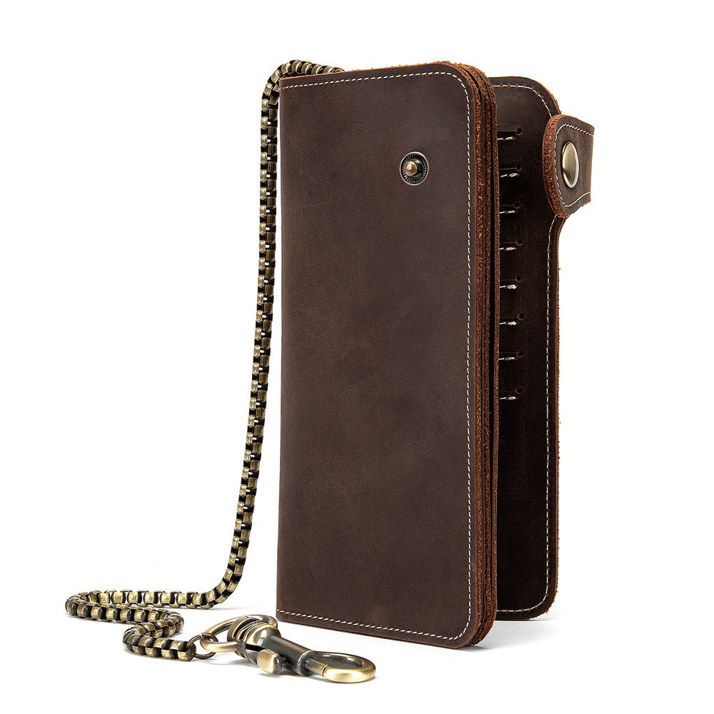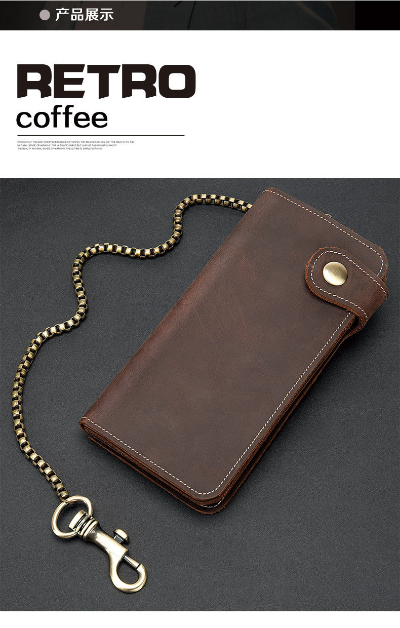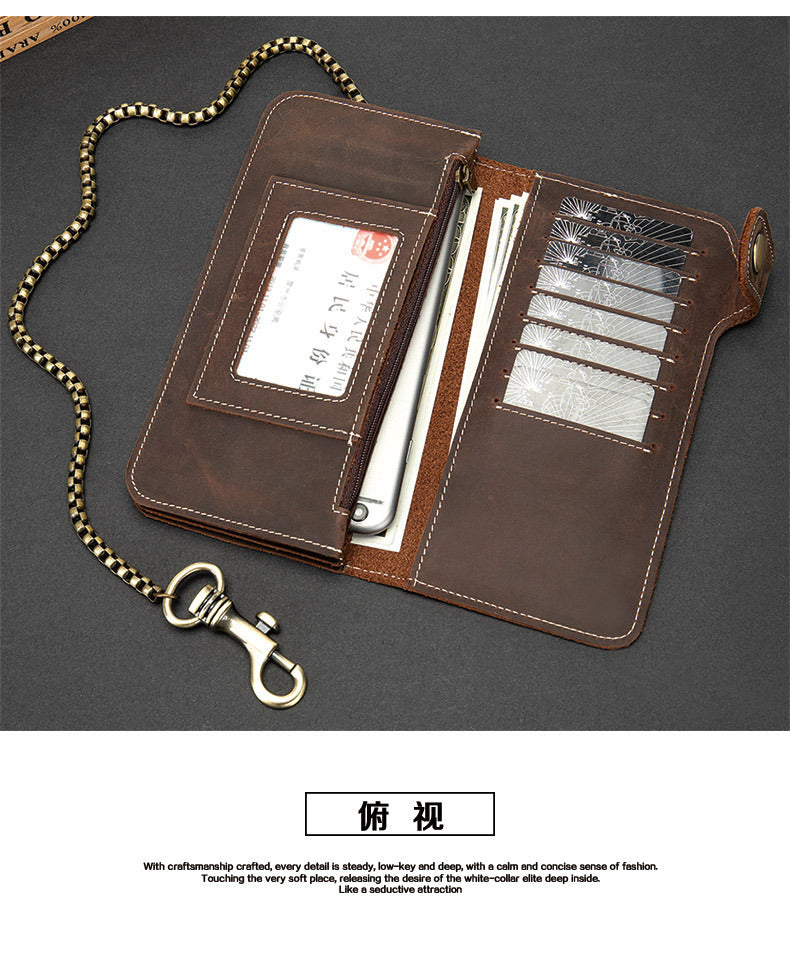 メンズ長財布 牛皮 本革製 チェーン盗難防止 クラッチバッグ 男性用ウォレット