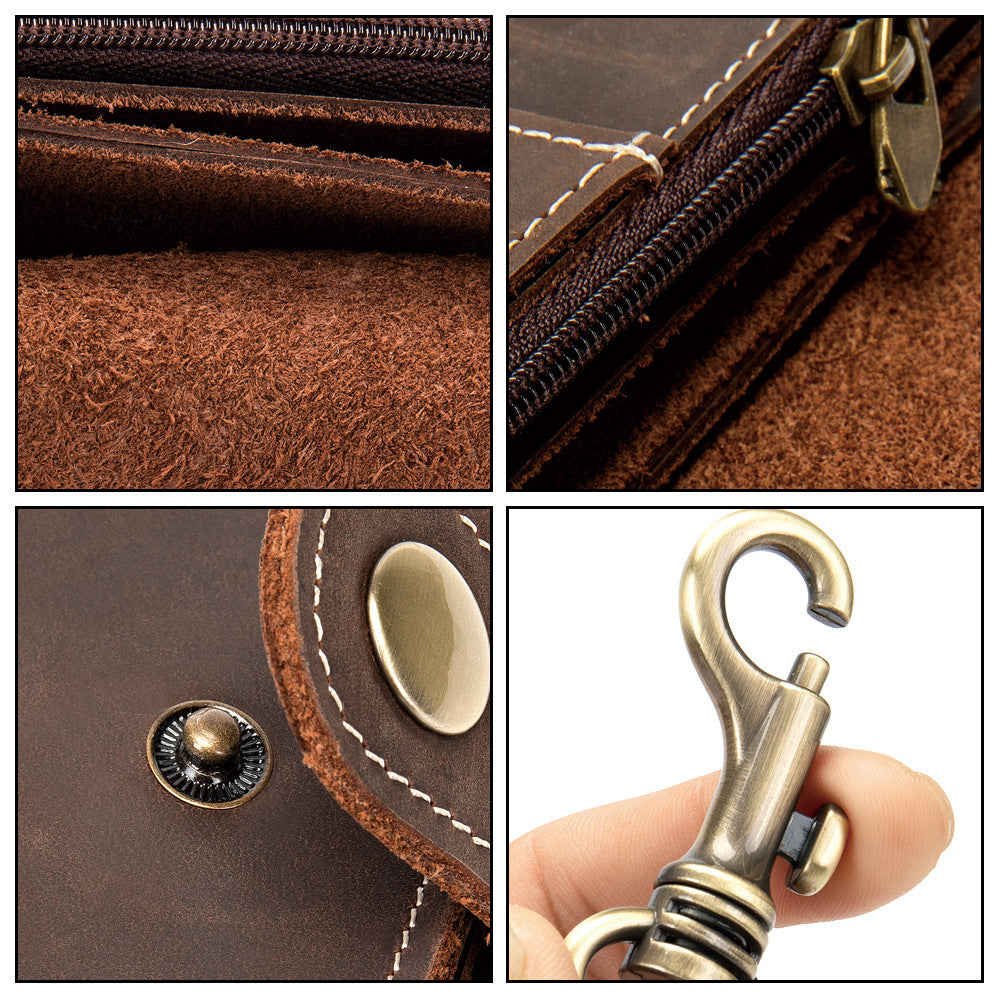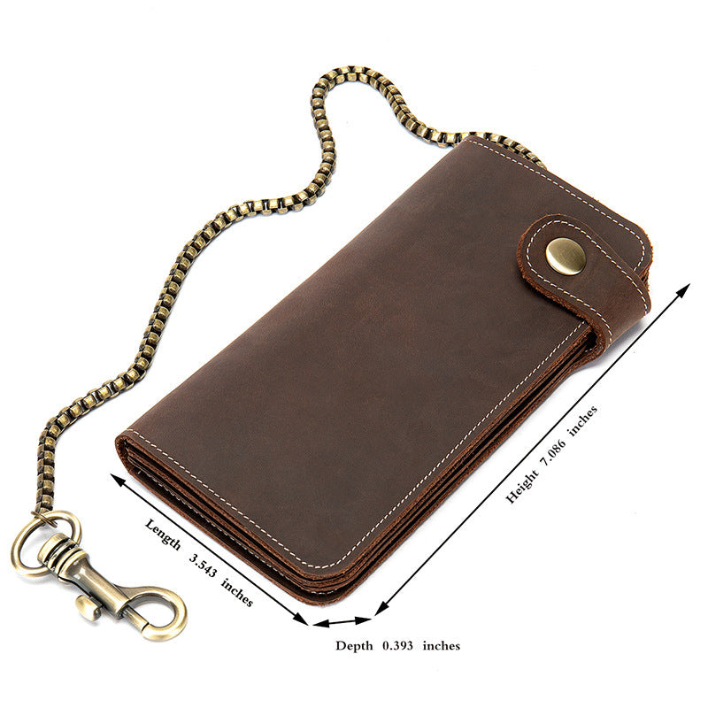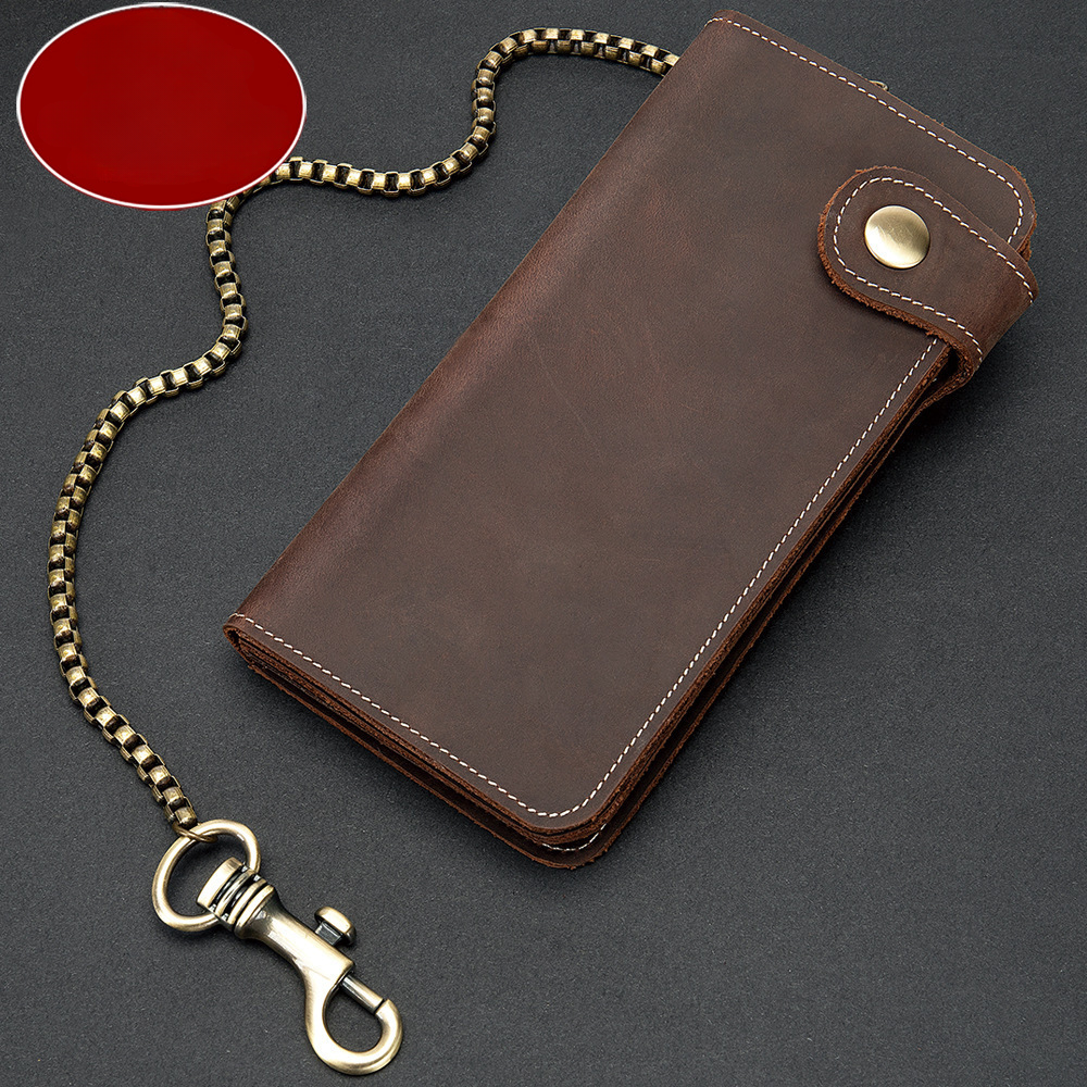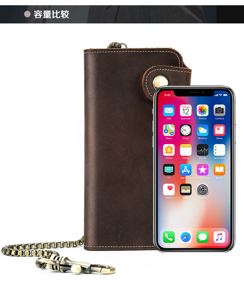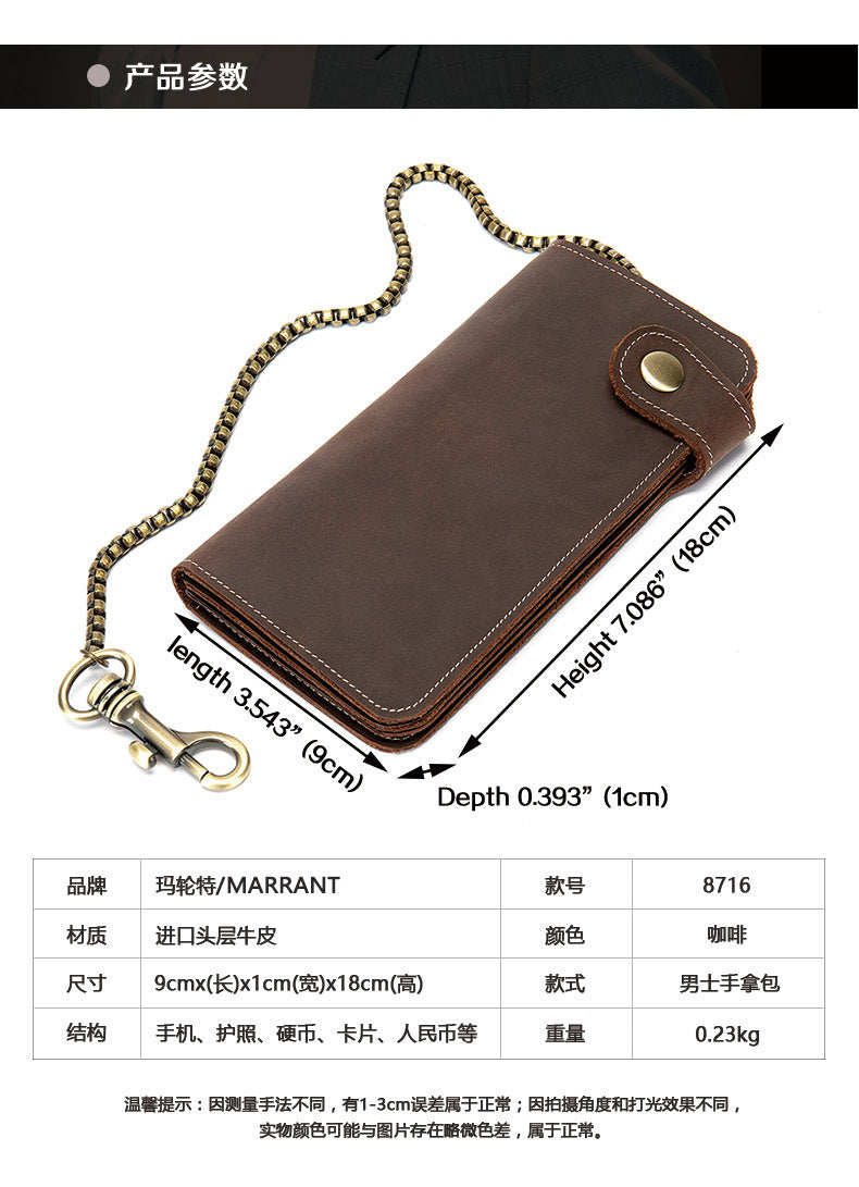 メンズ長財布 牛皮 本革製 チェーン盗難防止 クラッチバッグ 男性用ウォレット