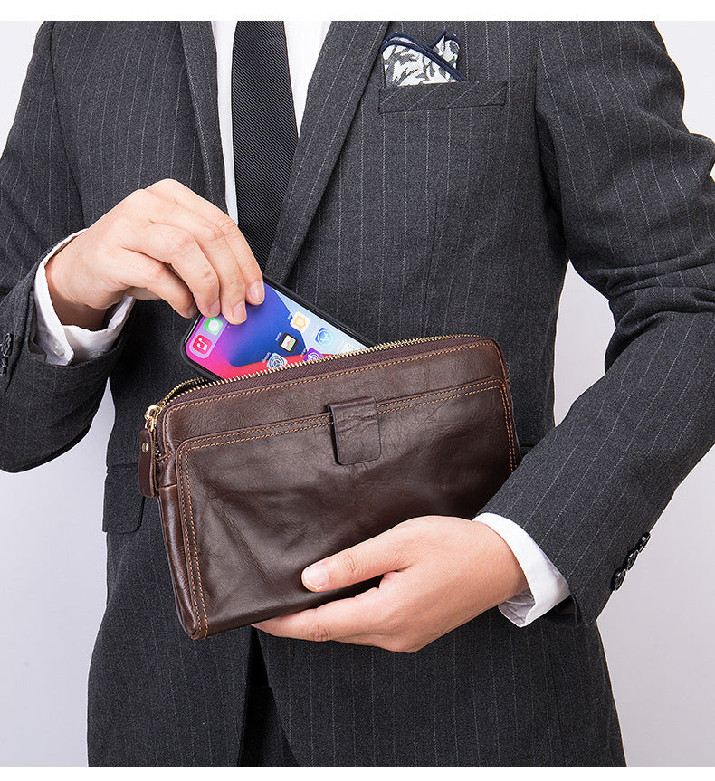 メンズ长財布 大容量 韩国ファッション 牛皮本革製 カード入れ RFID盗難防止 クラッチバッグ男性用ハンドバッグ