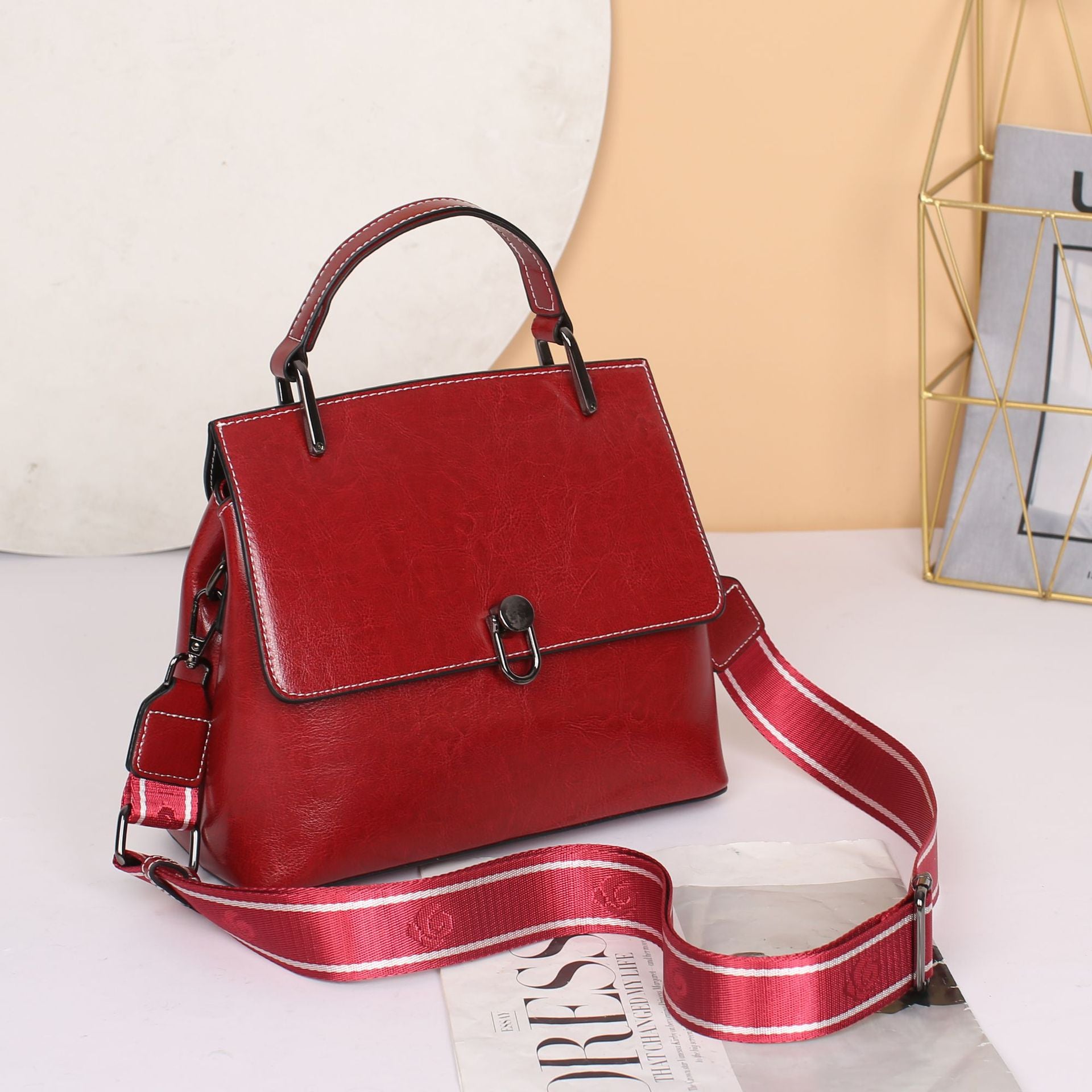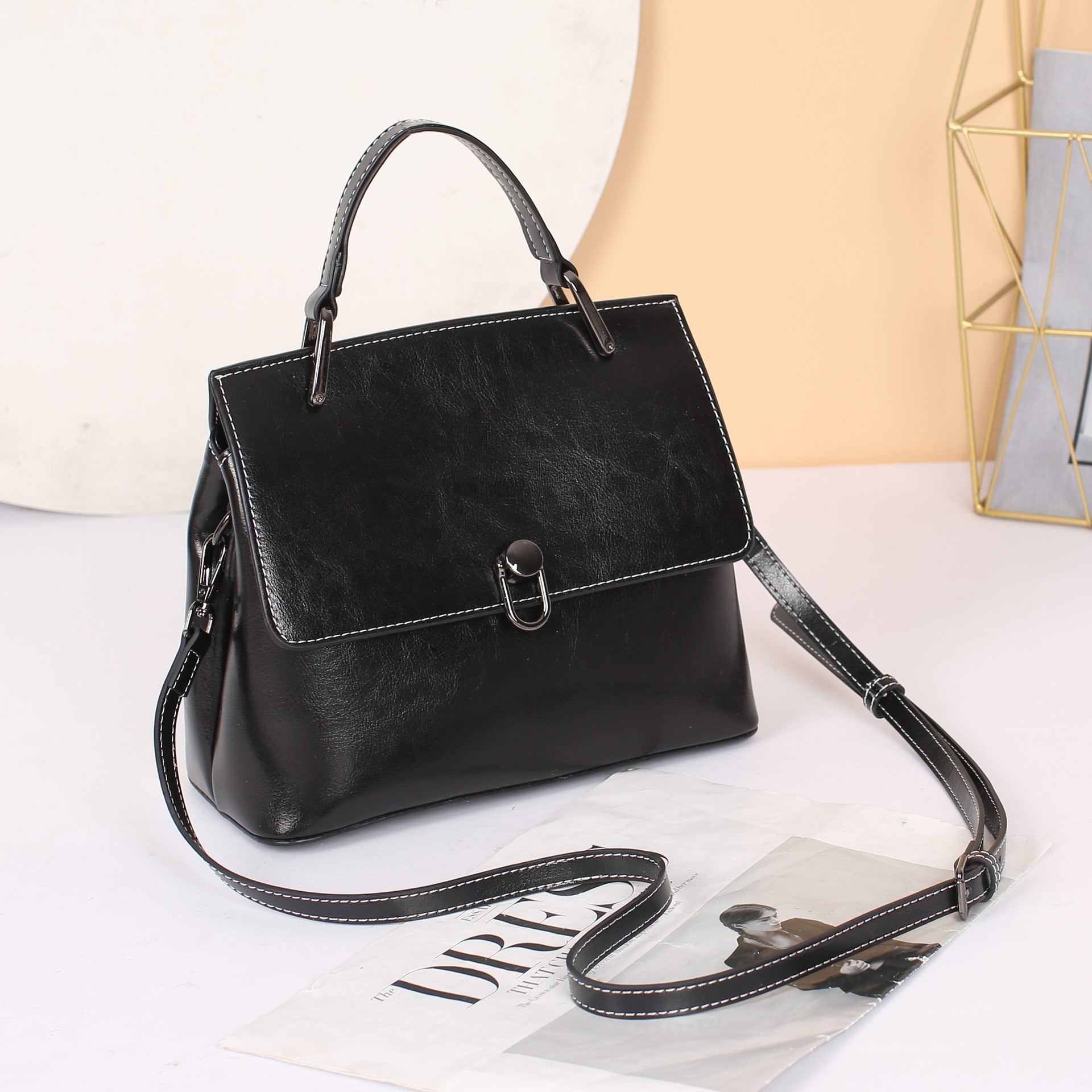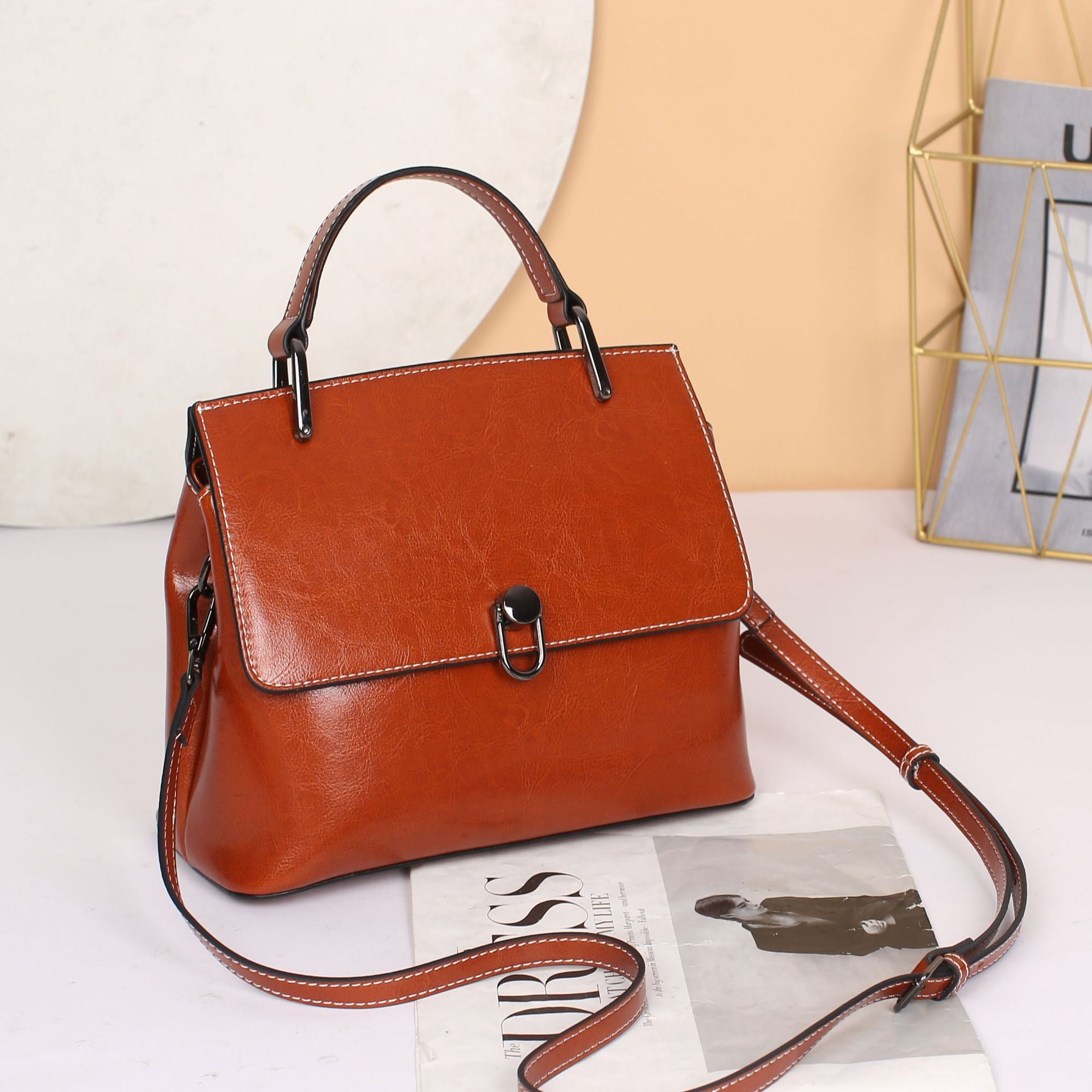 レディースシンプル牛革ショルダーバッグおしゃれハンドバッグレトロ本革何とでも合う