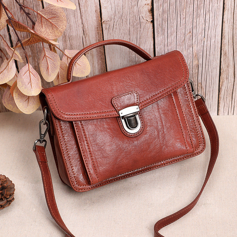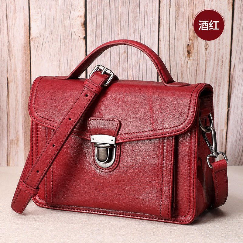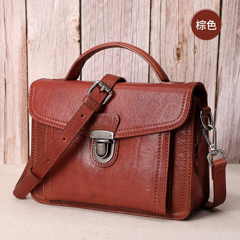 レディースバッグハンドメイド本革ハンドバッグトップ牛革スクエアバッグレトロショルダーバッグ.ポシェット