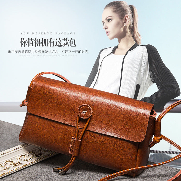レディースバッグレトロ本革スクエアバッグ斜め掛けバッグオイルワックス牛革ショルダーバッグ.ポシェット