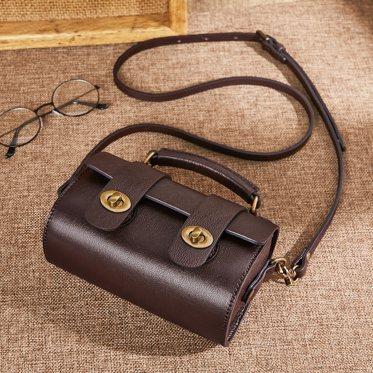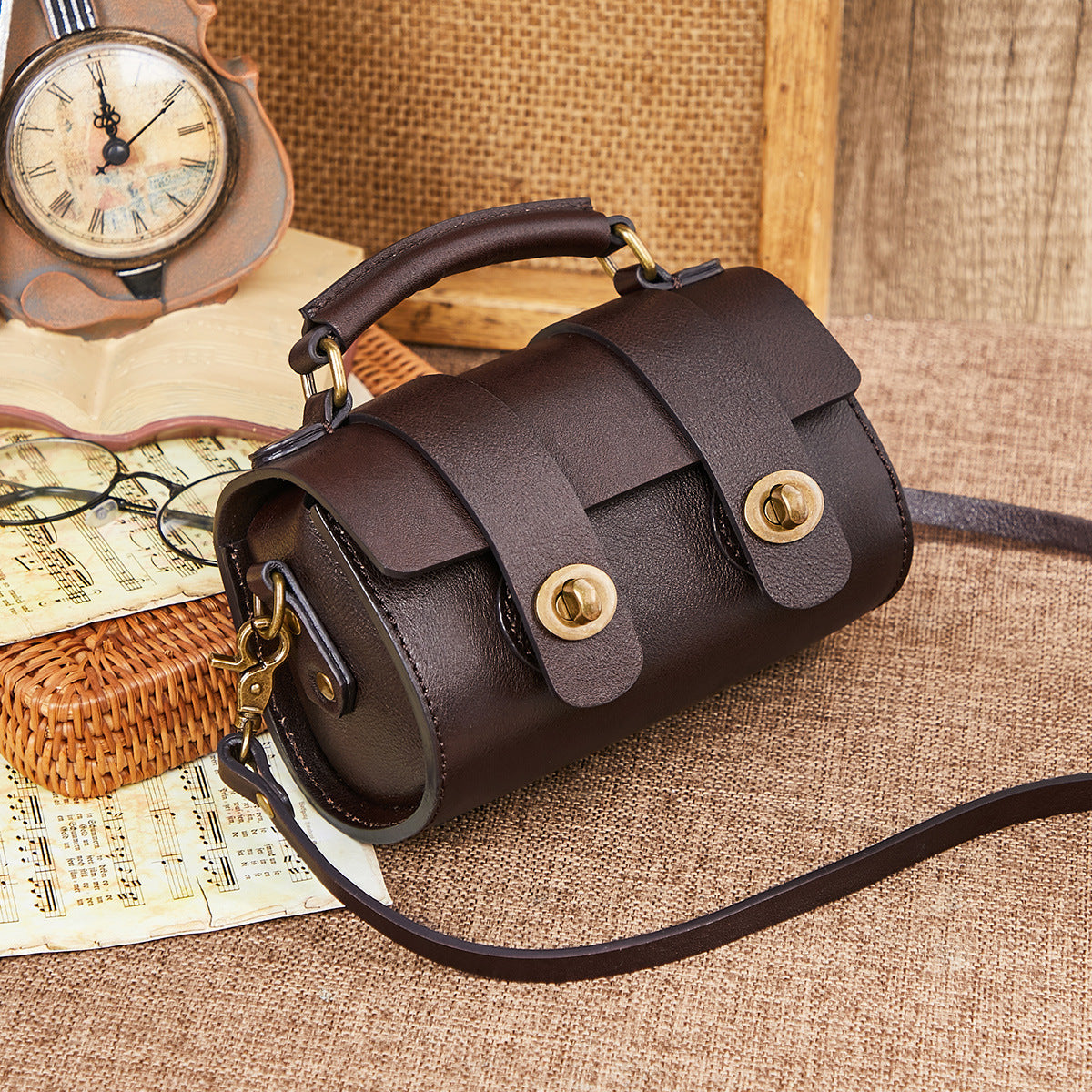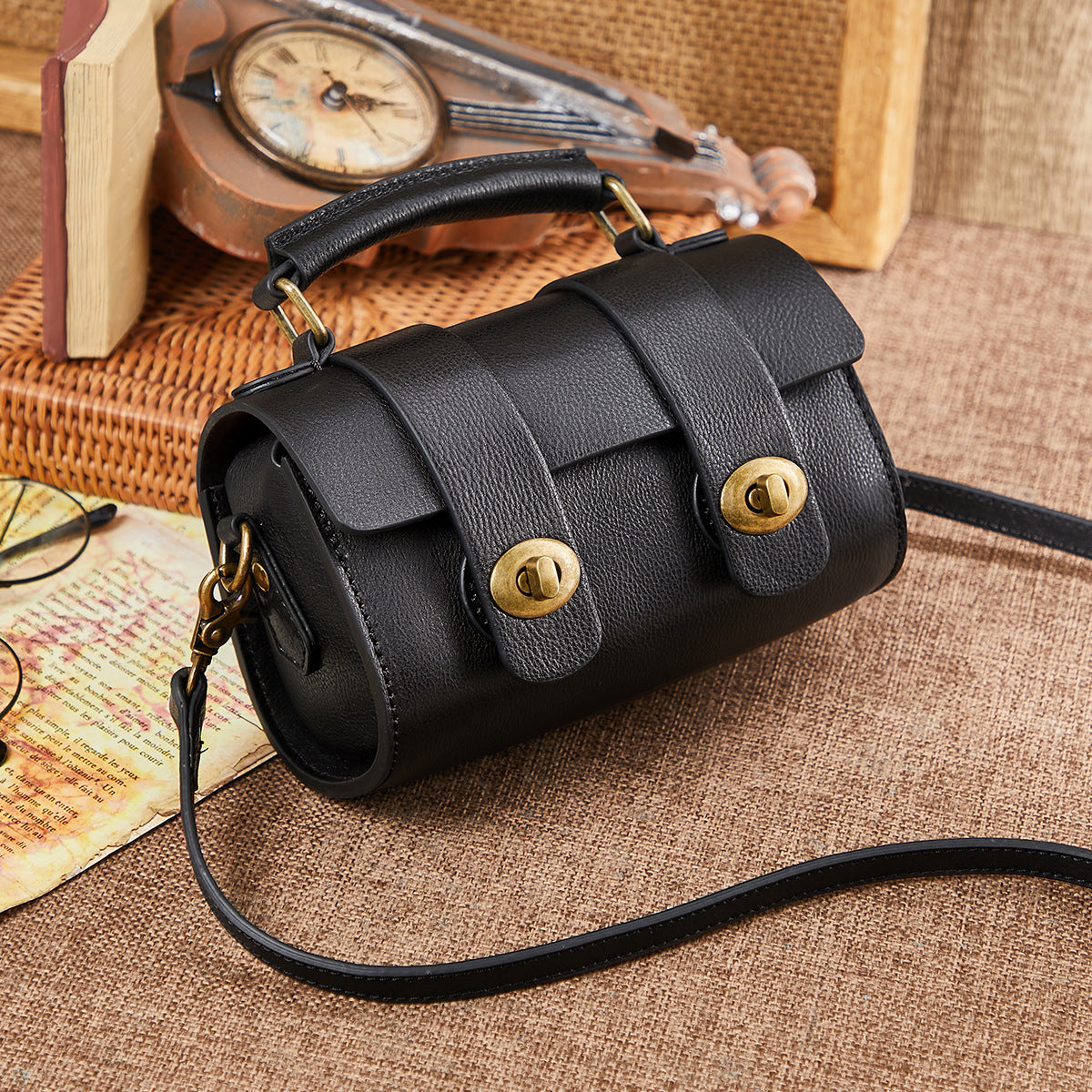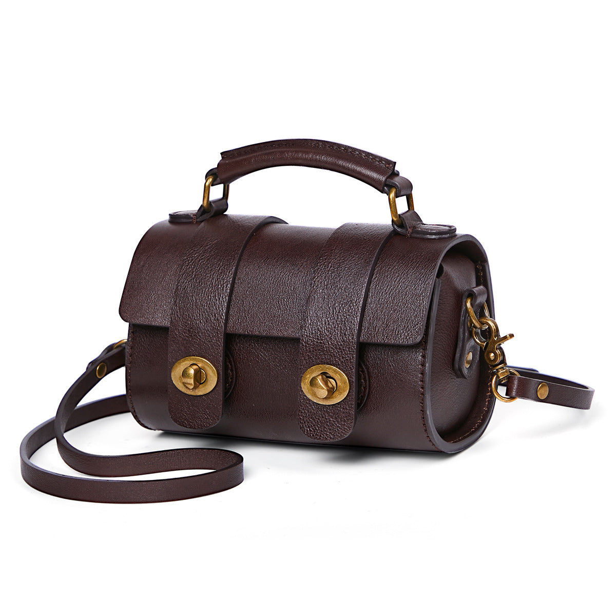 レディースバッグレトロ本革ハンドバッグ円筒バッグ牛革シンプルメッセンジャーバッグ流行ショルダーバッグ.ポシェット