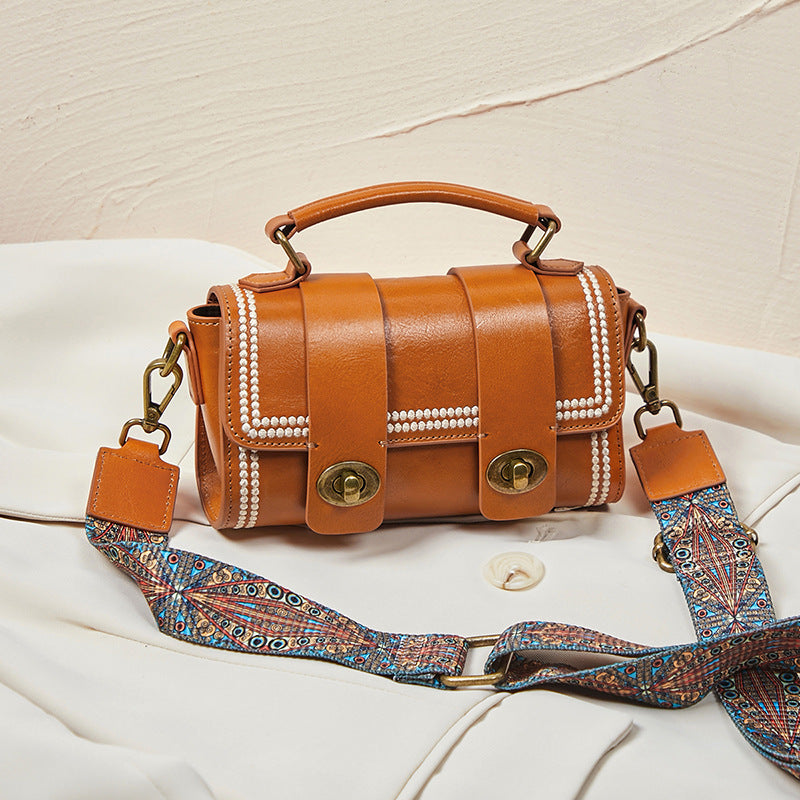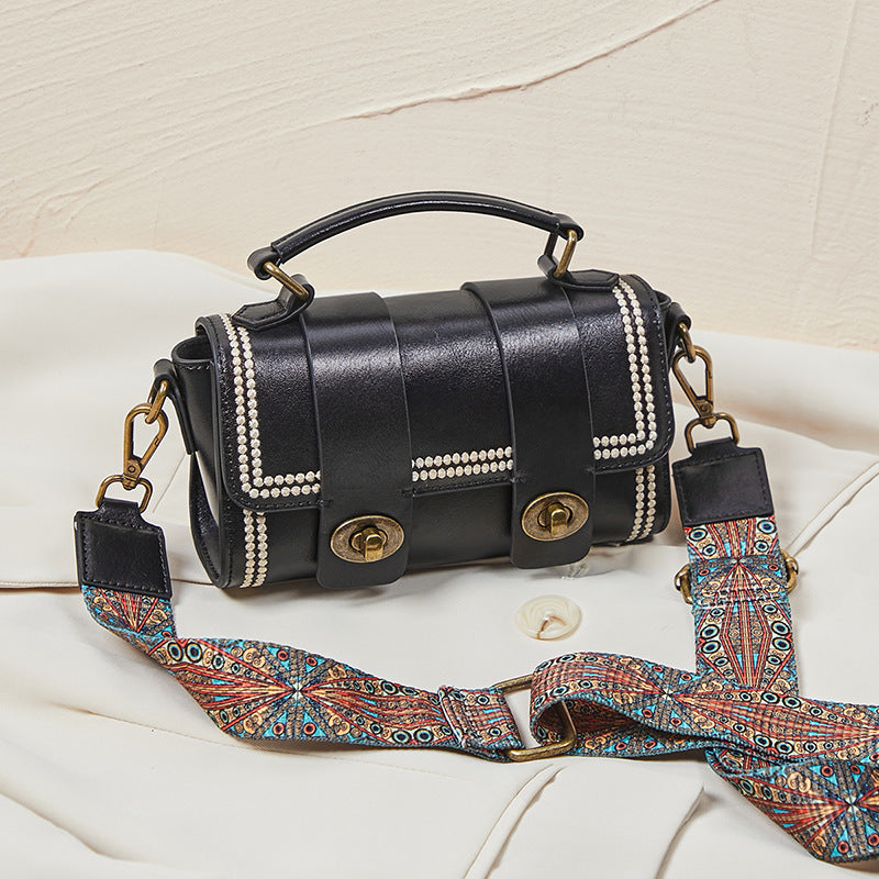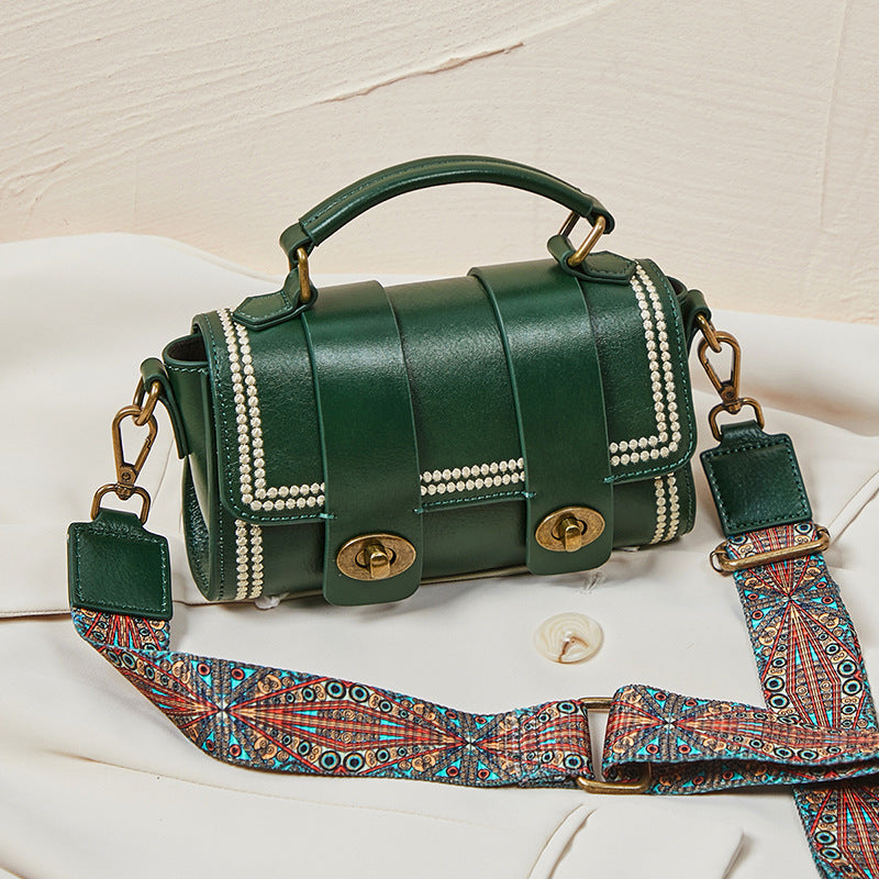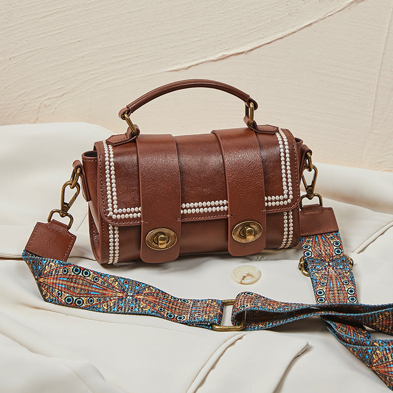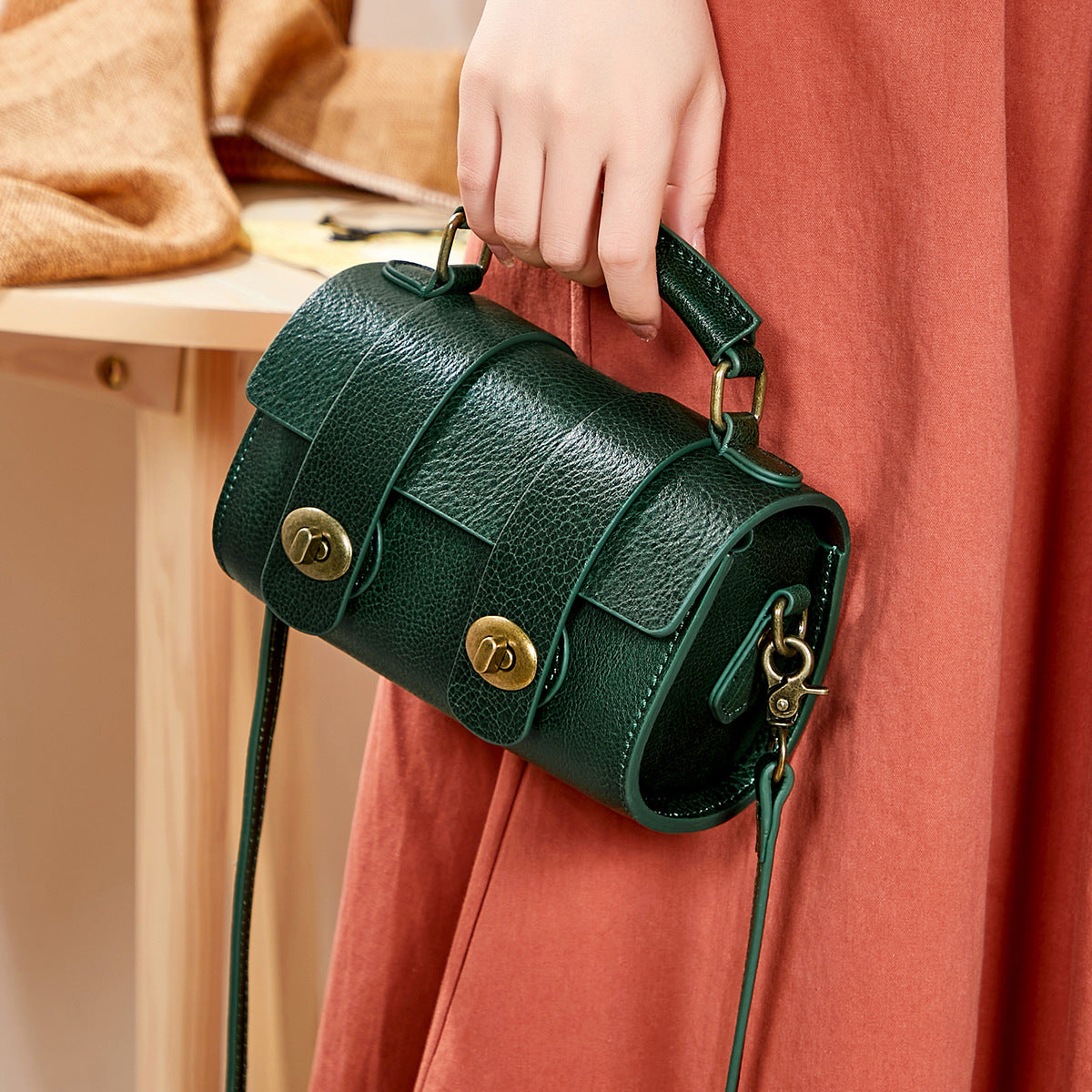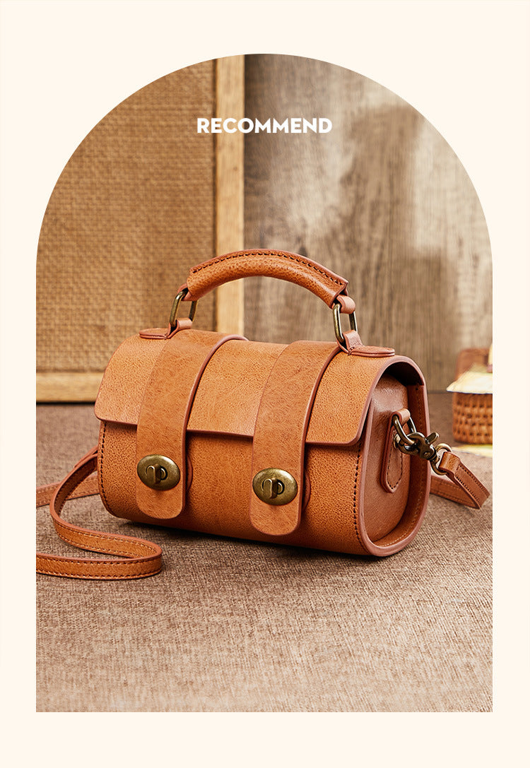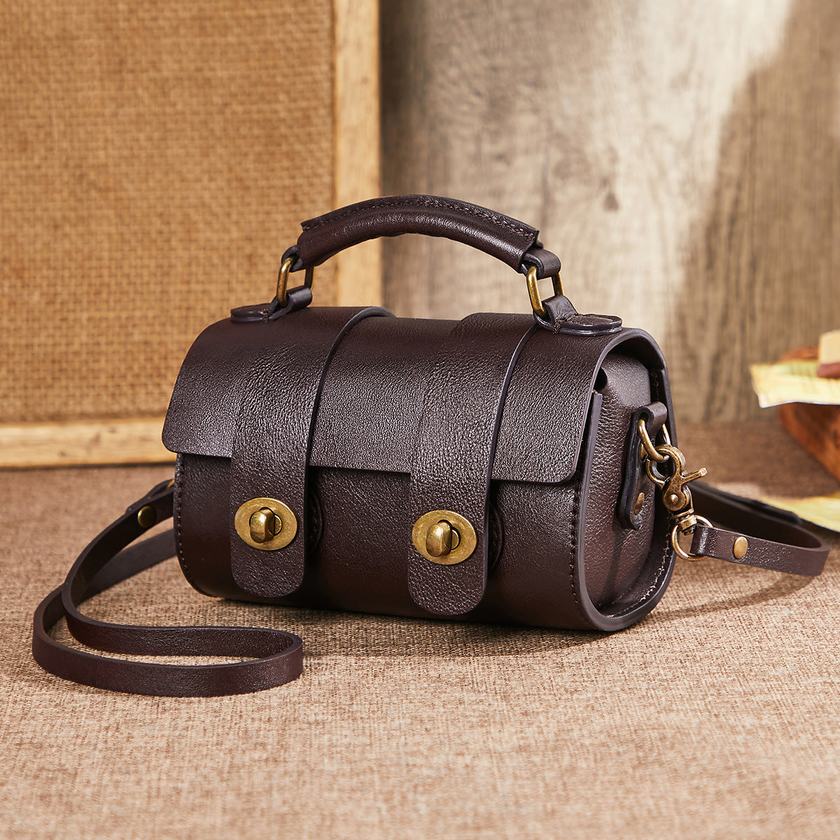 レディースバッグレトロ本革ハンドバッグ円筒バッグ牛革シンプルメッセンジャーバッグ流行ショルダーバッグ.ポシェット