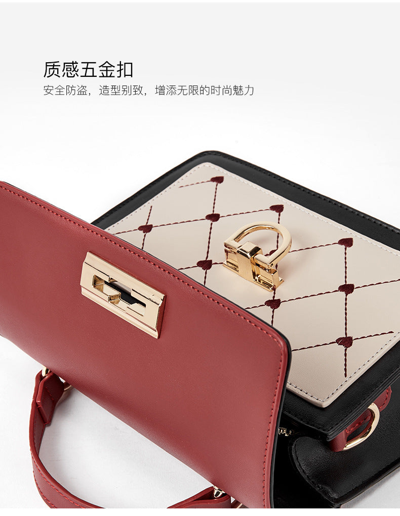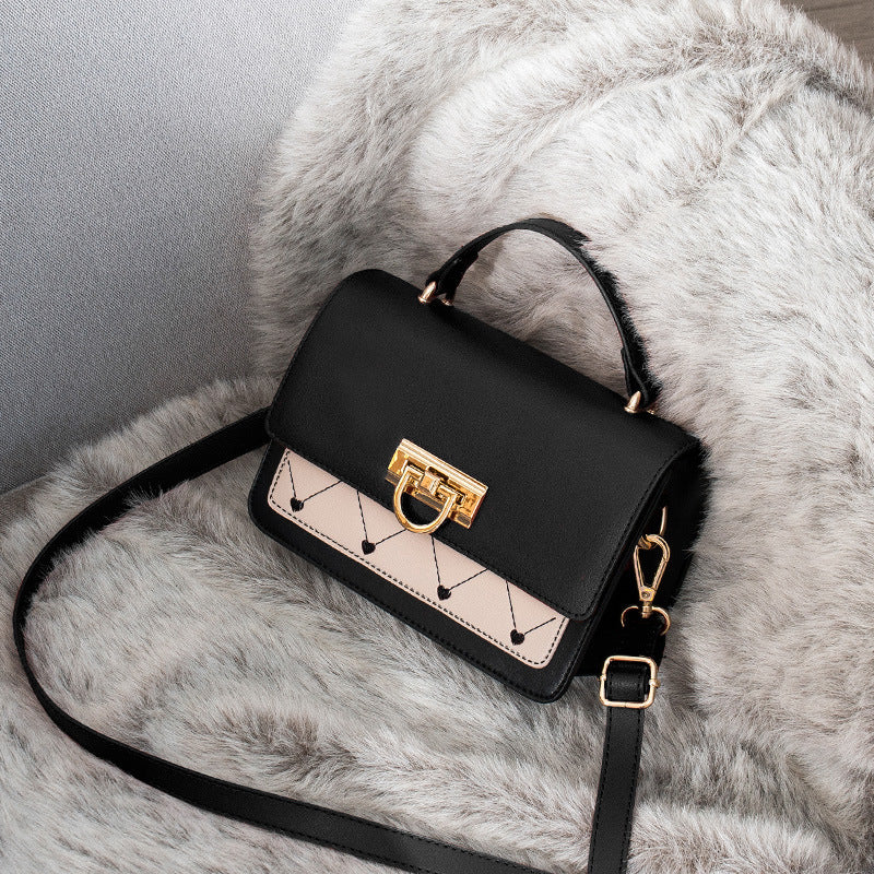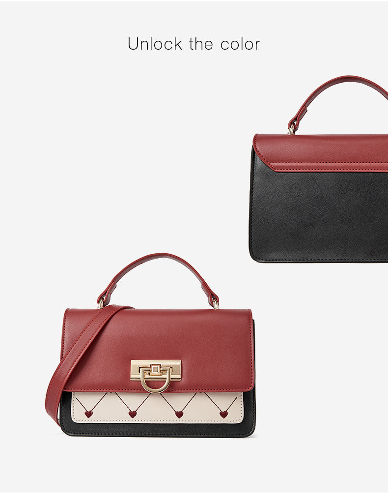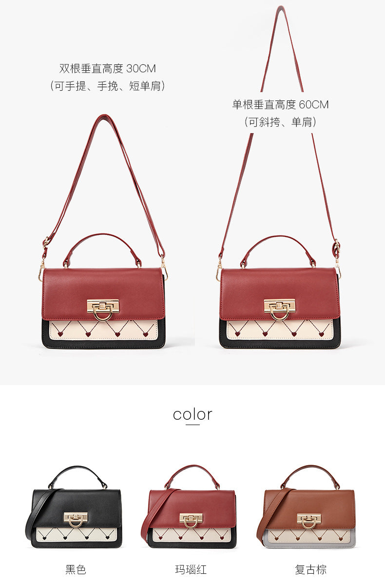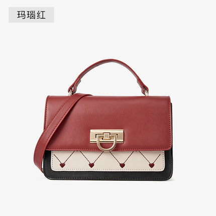 レディースバッグ斜め掛けバッグおしゃれ本革ハンドバッグスクエアバッグカラーマッチングエレガントショルダーバッグ.ポシェット